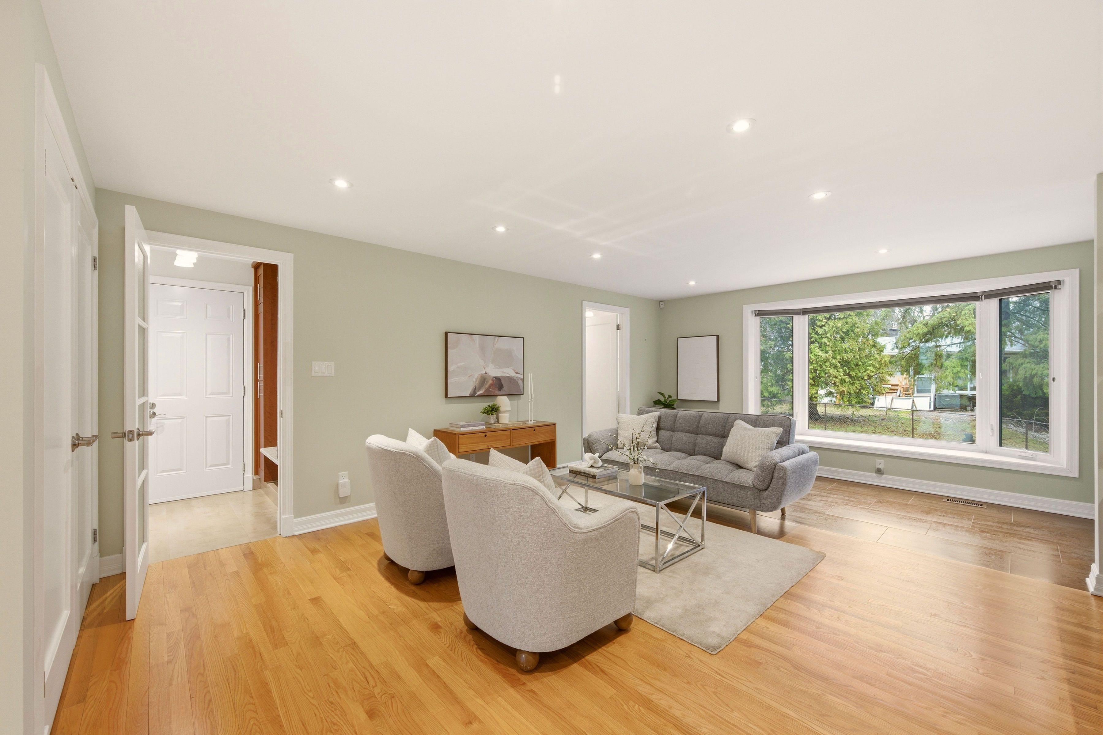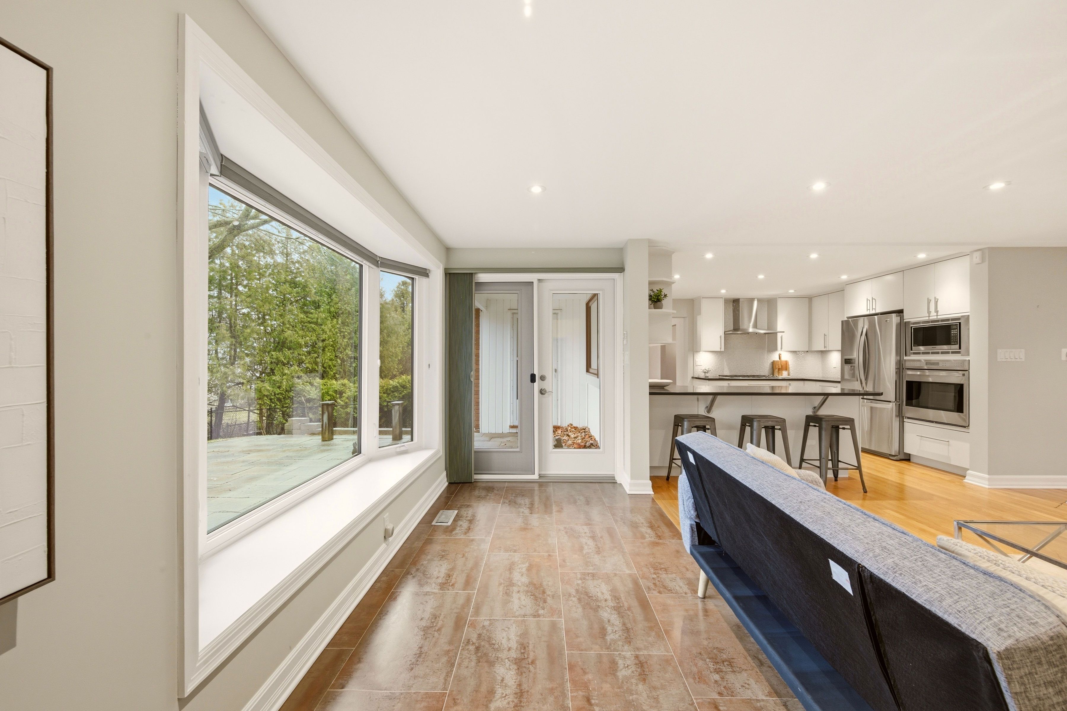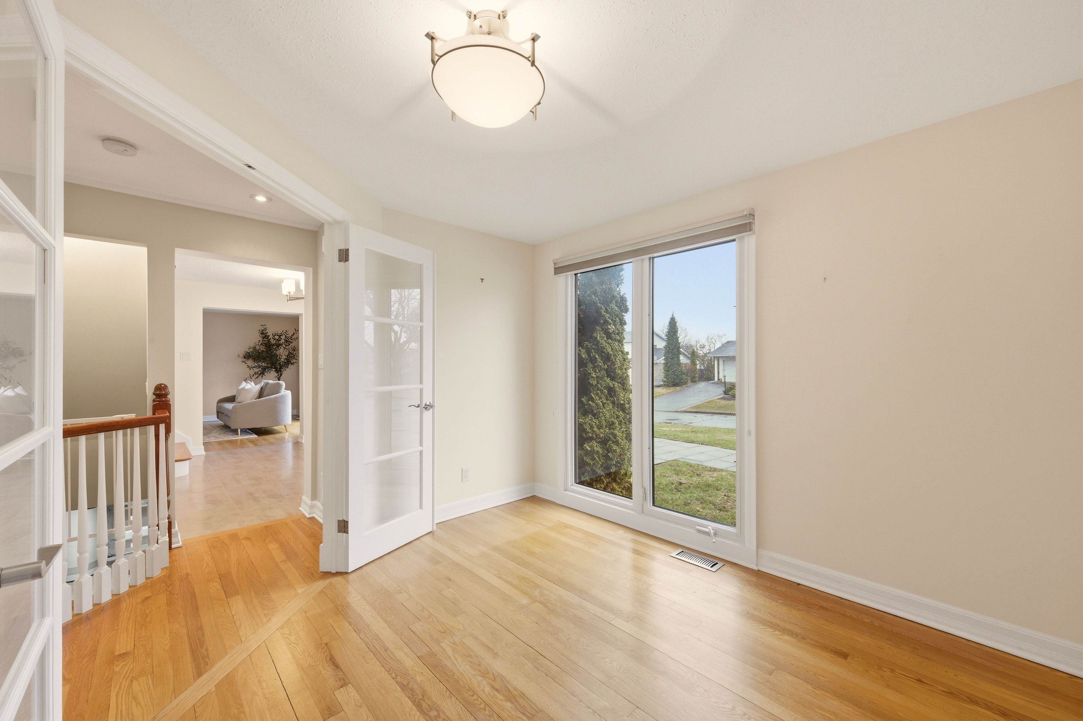 Welcome to this beautifully maintained 4-bedroom, 3-bathroom home in the highly sought-after skyline/parkwood hills neighbourhood, where thoughtful upgrades and exceptional care are evident throughout. A spacious, light filled foyer sets the tone, complemented by a front of house office with floor to ceiling windows, tucked away from the main living areas. The main level offers two inviting living spaces. The front living room features a cozy gas fireplace (2025) and large windows, creating a warm and welcoming setting. At the rear, a second living area overlooks the private, tree-lined backyard-ideal for both everyday living and entertaining. At the heart of the home is a beautifully designed, high-end kitchen featuring premium wolf and miele appliances, including a built-in oven and microwave for a seamless, custom look. Sleek cabinetry, elegant countertops, and a large window over the sink bring in an abundance of natural light, while the layout flows effortlessly into the dining area. A functional mudroom with access to the double-car garage, a pantry, and a main-floor full bathroom add convenience to everyday living. Upstairs, the thoughtfully designed primary suite offers a 3-piece ensuite with heated floors and the added luxury of upper-level laundry. The additional bedrooms are generously sized and share well-appointed bathrooms. The unfinished basement provides excellent storage and future potential, with one finished room perfect for a gym, playroom, or media space. Outside, enjoy a large, fully fenced (2013), private backyard with mature trees, an interlocked patio off the rear living area, and a full sprinkler system. Hardwood floors remain in pristine condition throughout, complemented by pot lights and heated flooring at both the front entrance and back door. Meticulously upgraded and impeccably maintained, this home offers the perfect balance of elegance, functionality, and family-friendly living in one of ottawa's most desirable neighbourhoods.