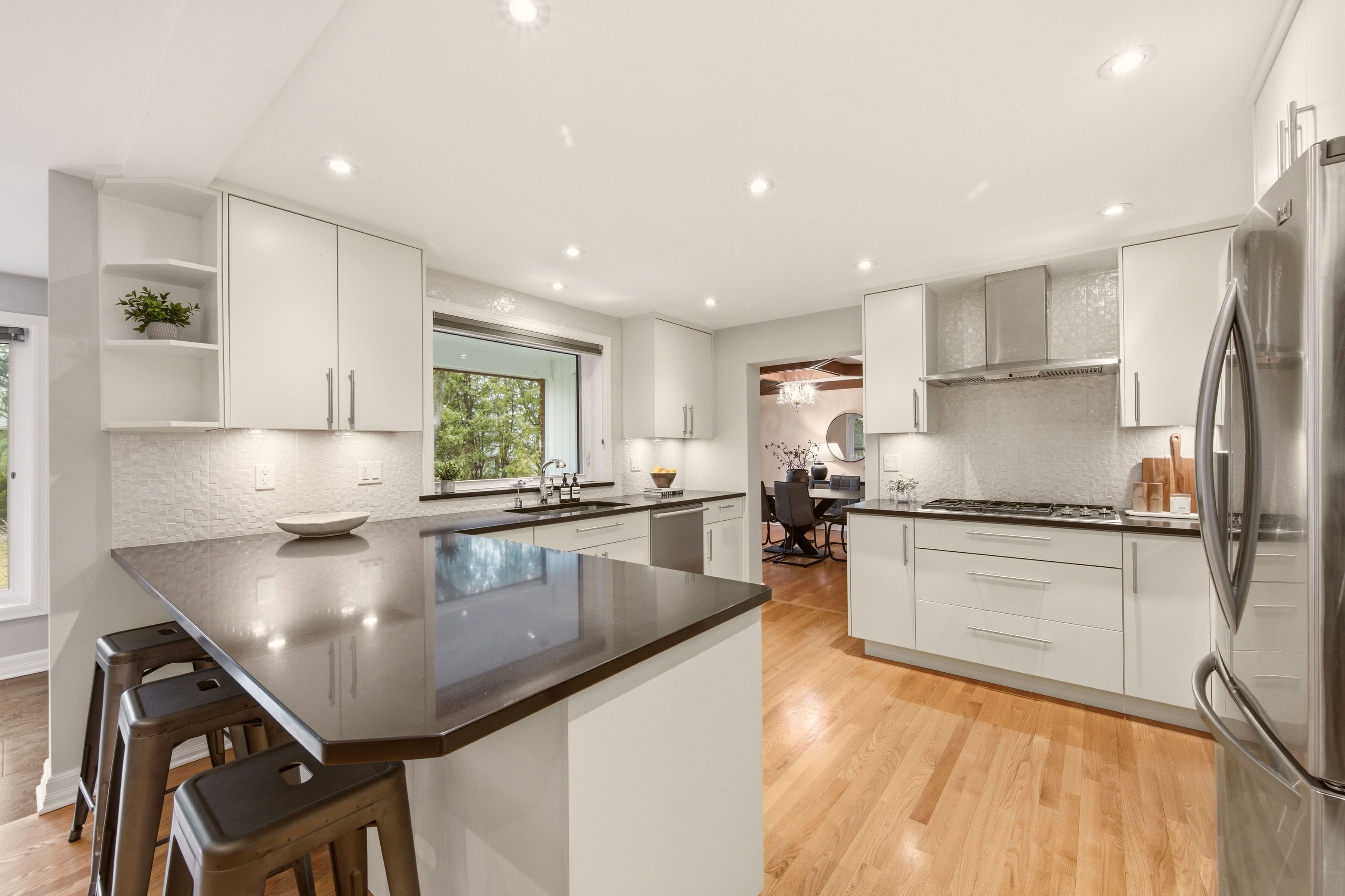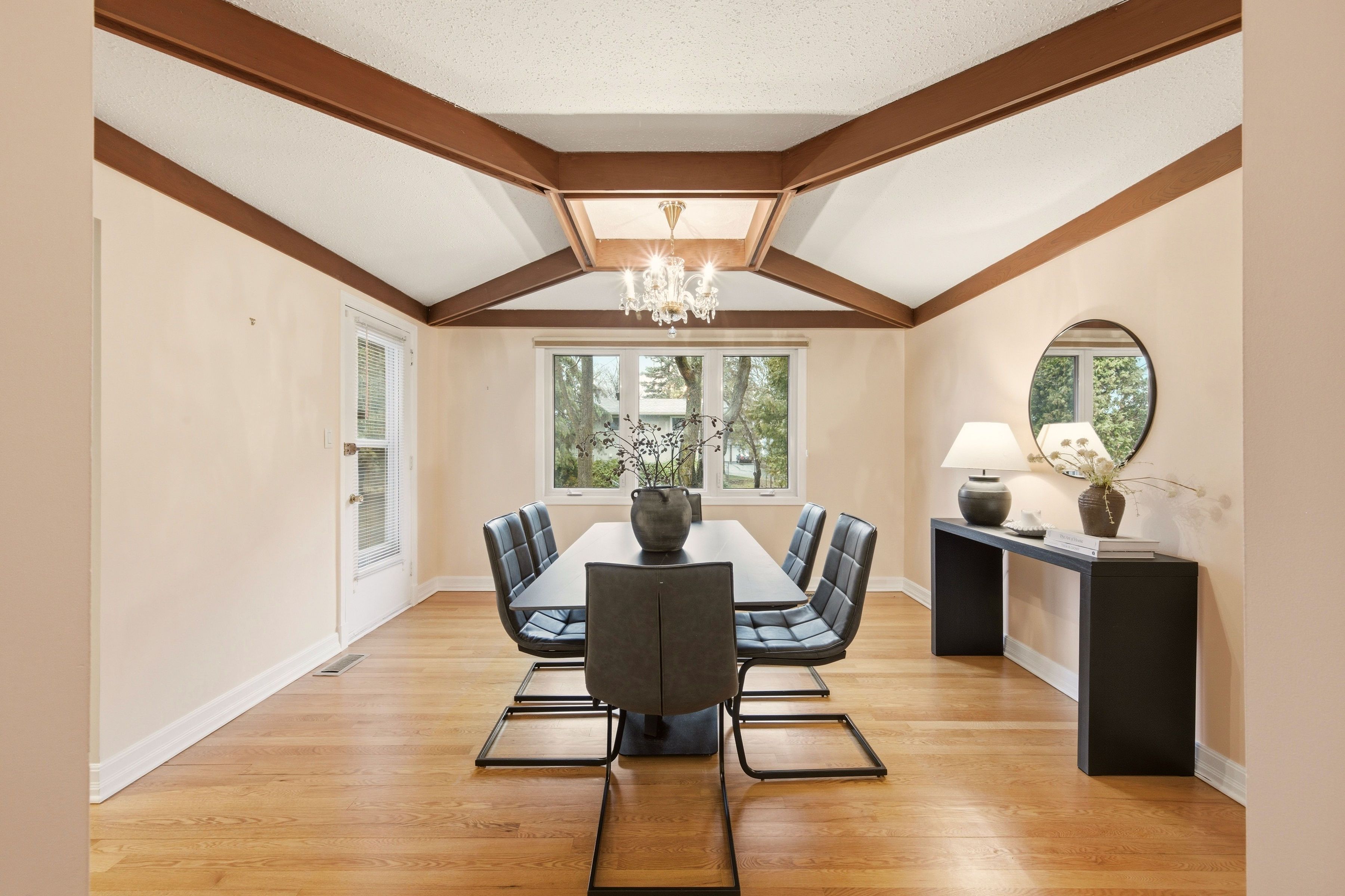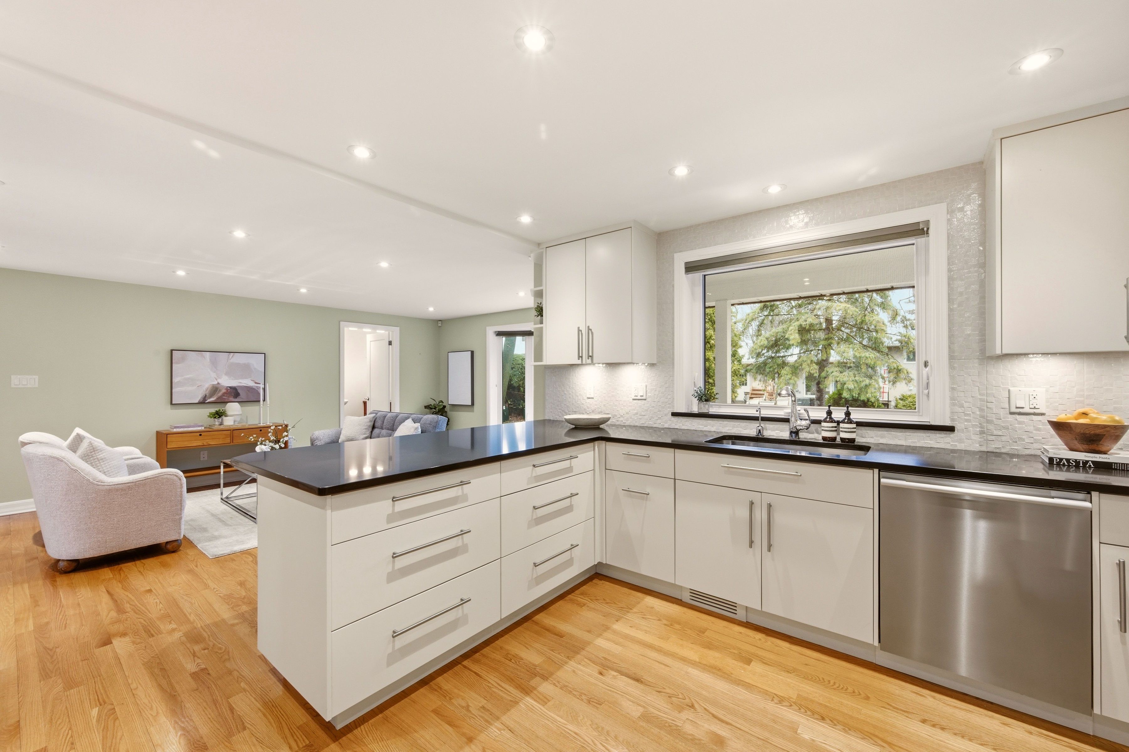 Welcome to this beautifully maintained 4-bedroom, 3-bathroom home in the highly sought-after skyline/parkwood hills neighbourhood, where thoughtful upgrades and exceptional care are evident throughout. A spacious, light filled foyer sets the tone, complemented by a front of house office with floor to ceiling windows, tucked away from the main living areas. The main level offers two inviting living spaces. The front living room features a cozy gas fireplace (2025) and large windows, creating a warm and welcoming setting. At the rear, a second living area overlooks the private, tree-lined backyard-ideal for both everyday living and entertaining. At the heart of the home is a beautifully designed, high-end kitchen featuring premium wolf and miele appliances, including a built-in oven and microwave for a seamless, custom look. Sleek cabinetry, elegant countertops, and a large window over the sink bring in an abundance of natural light, while the layout flows effortlessly into the dining area. A functional mudroom with access to the double-car garage, a pantry, and a main-floor full bathroom add convenience to everyday living. Upstairs, the thoughtfully designed primary suite offers a 3-piece ensuite with heated floors and the added luxury of upper-level laundry. The additional bedrooms are generously sized and share well-appointed bathrooms. The unfinished basement provides excellent storage and future potential, with one finished room perfect for a gym, playroom, or media space. Outside, enjoy a large, fully fenced (2013), private backyard with mature trees, an interlocked patio off the rear living area, and a full sprinkler system. Hardwood floors remain in pristine condition throughout, complemented by pot lights and heated flooring at both the front entrance and back door. Meticulously upgraded and impeccably maintained, this home offers the perfect balance of elegance, functionality, and family-friendly living in one of ottawa's most desirable neighbourhoods.