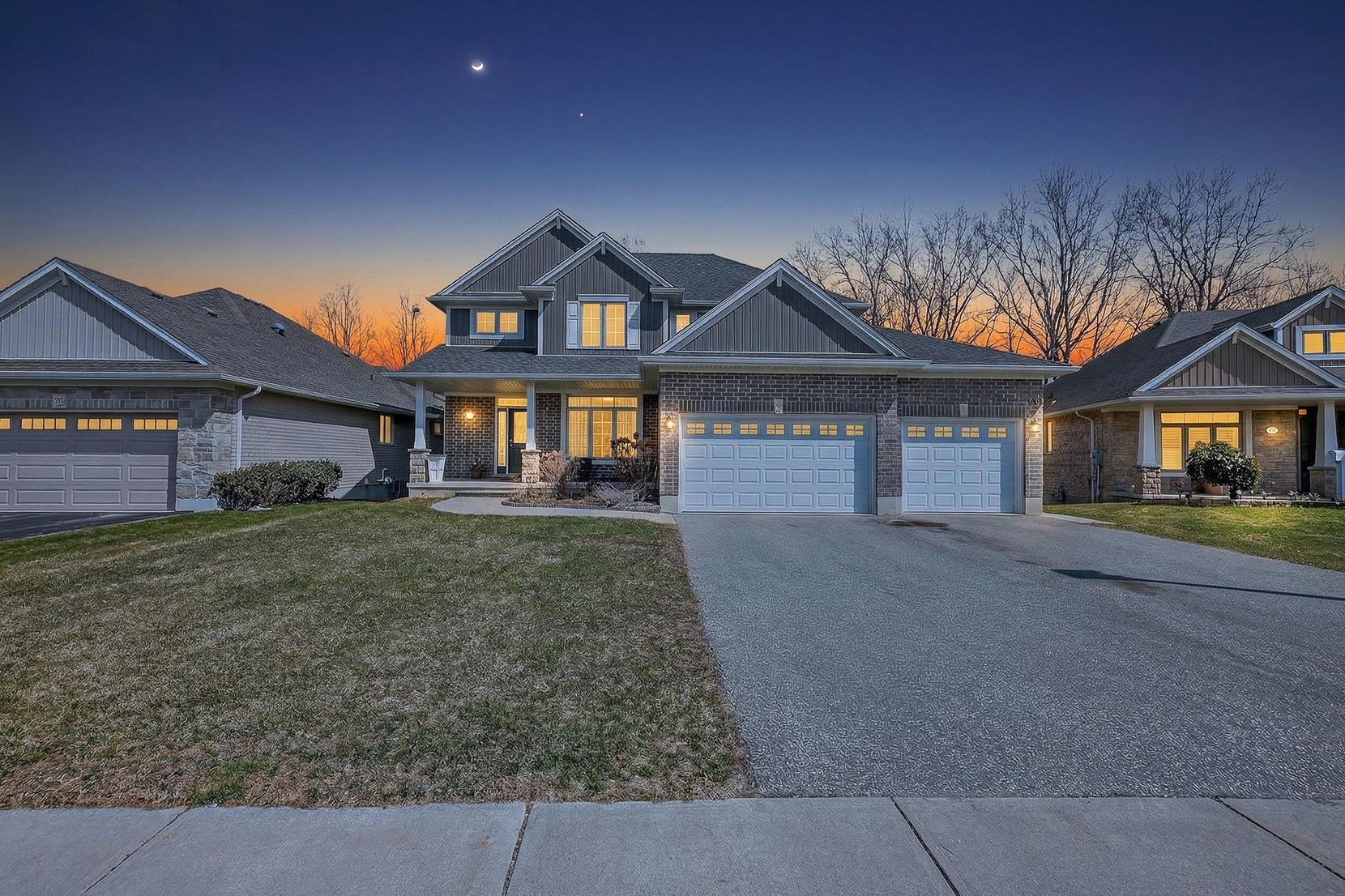 • Heated 3-car garage and expansive driveway for multiple vehicles.