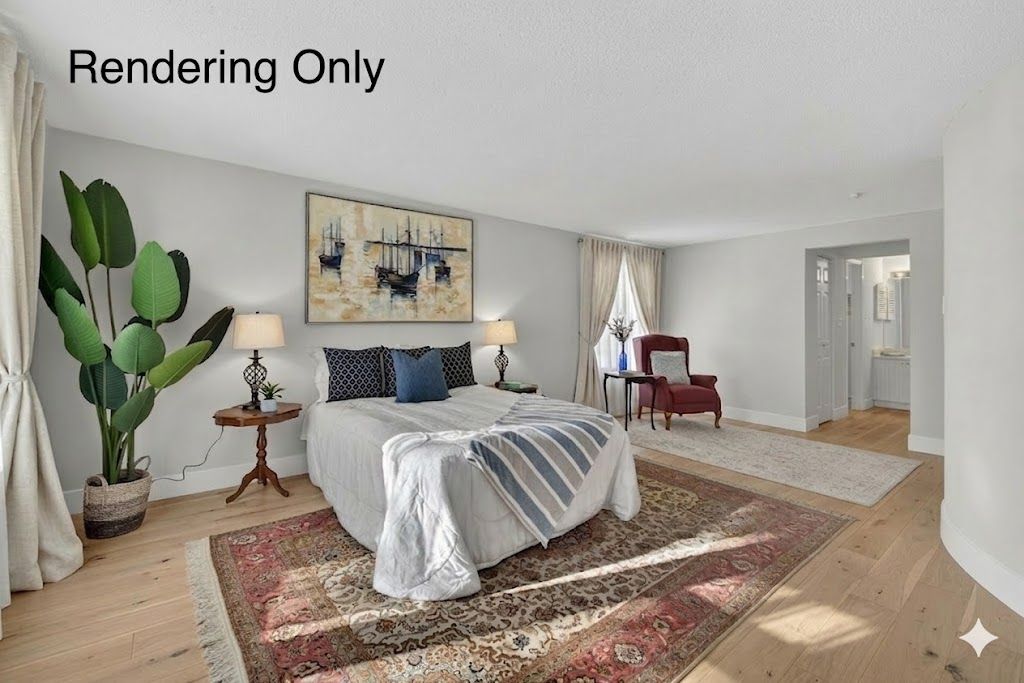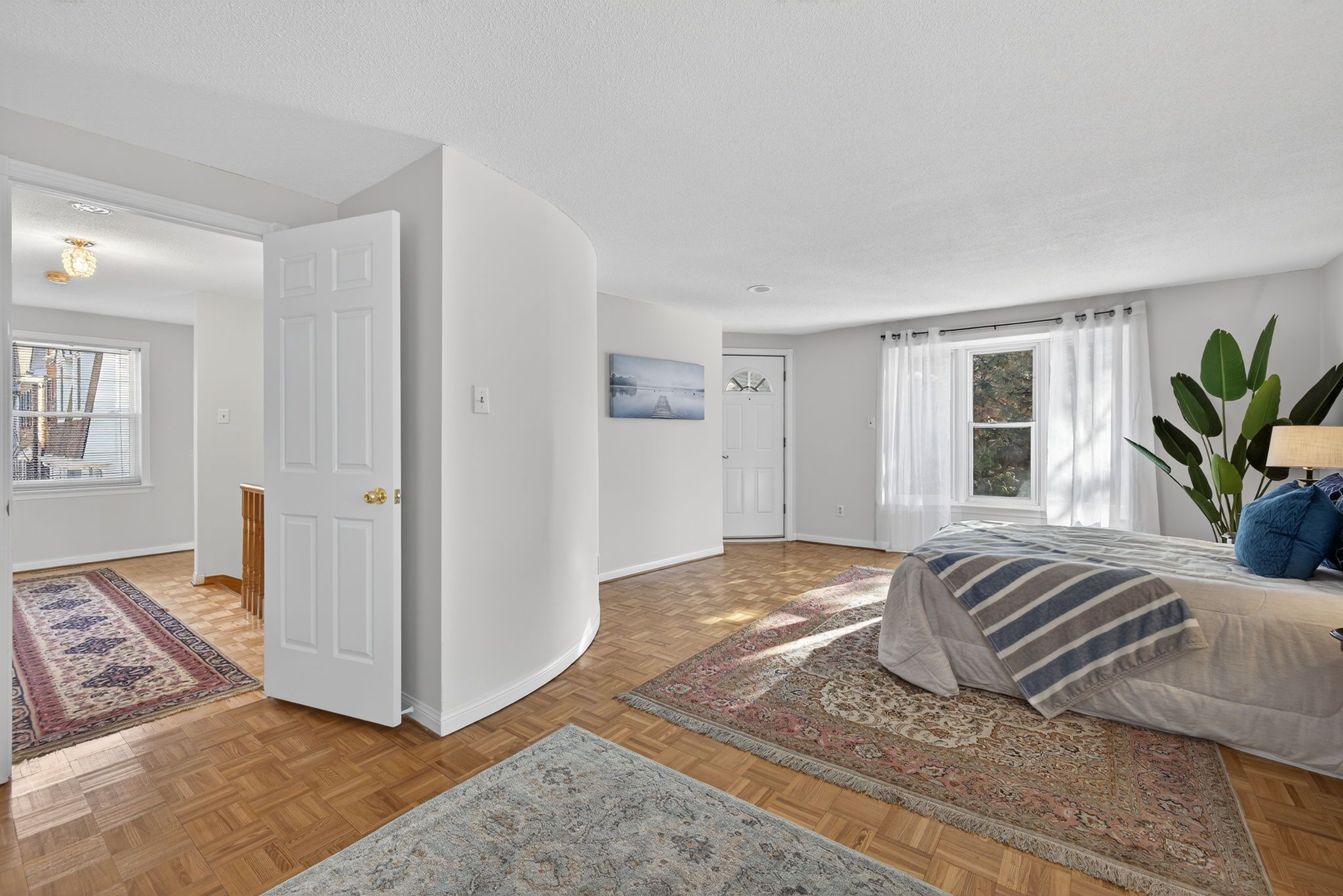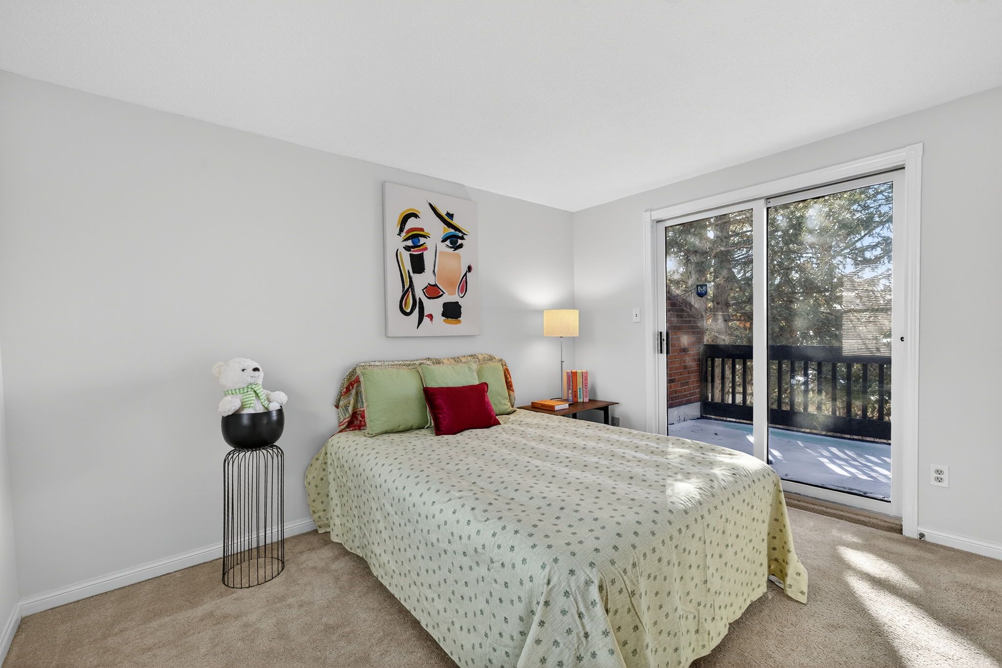 • Massive primary bedroom with balcony and ample walk-in closet.