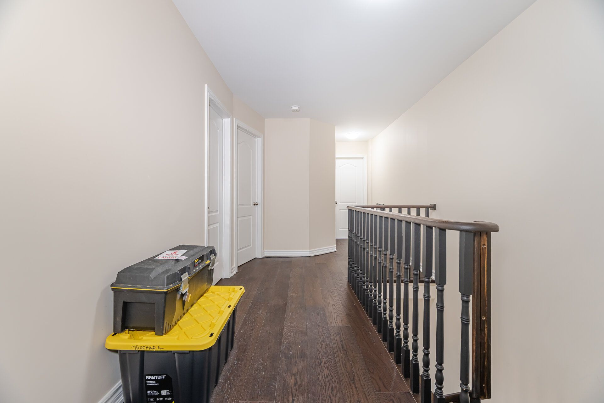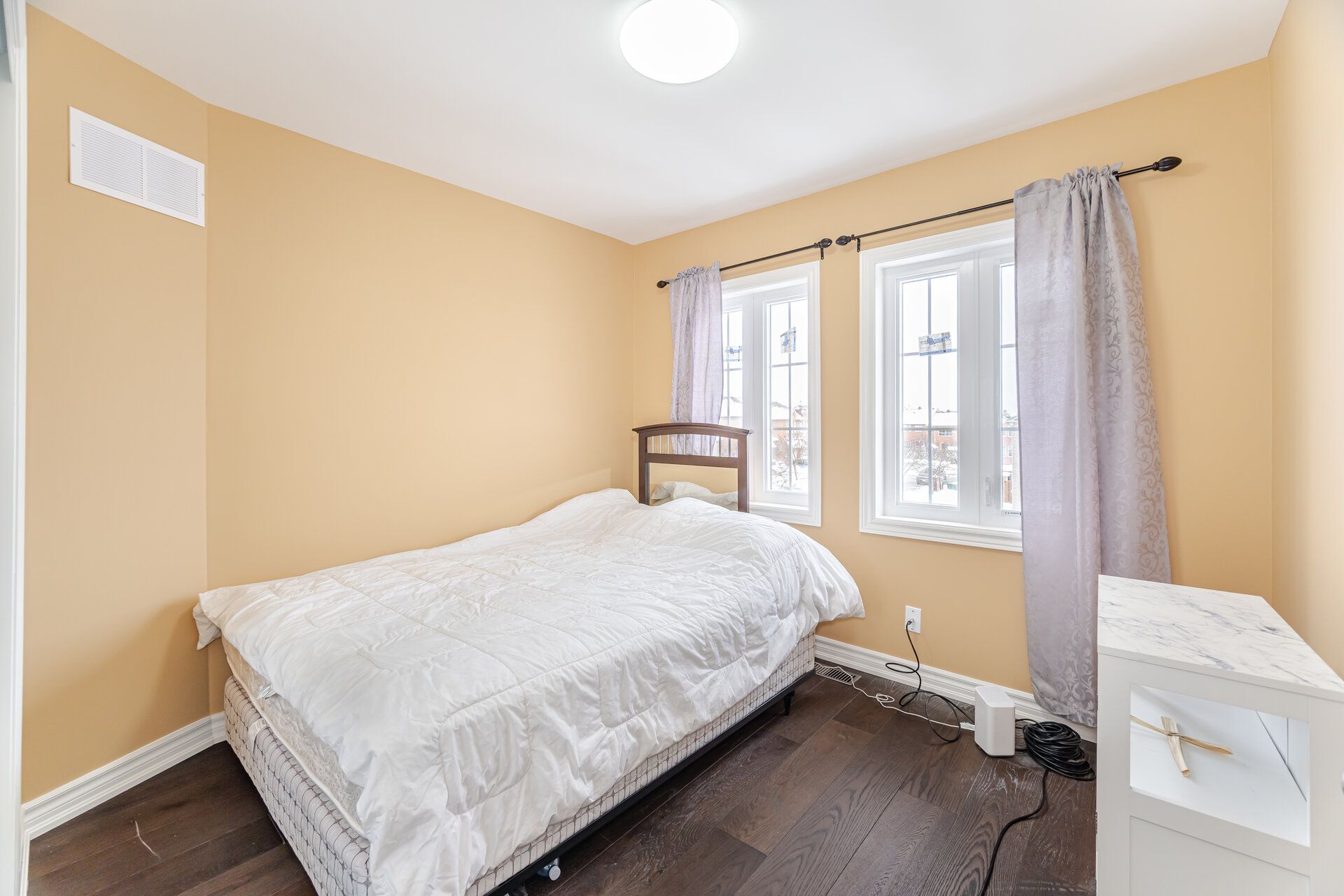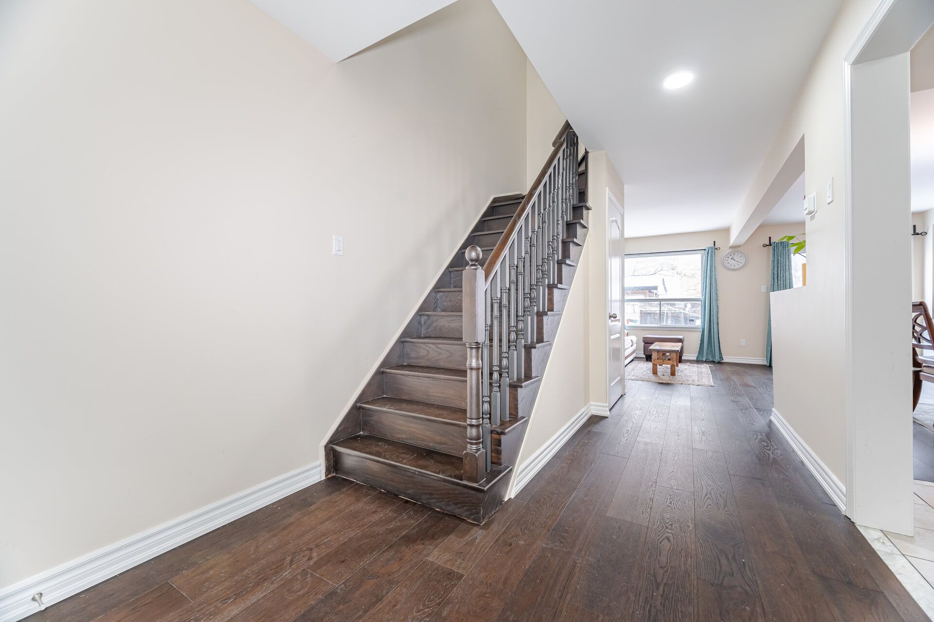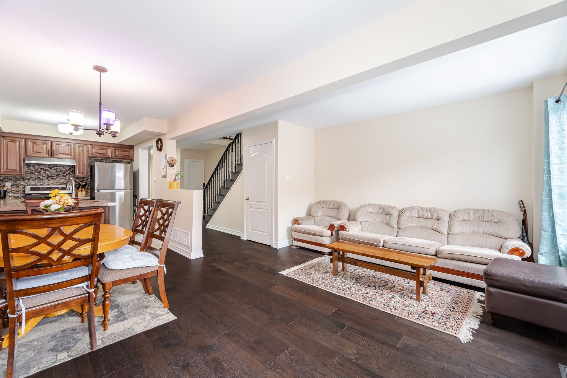 This charming 3-bedroom freehold town home in the desirable "maple" neighborhood features a bright, open-concept layout with a spacious living and dining area leading to a patio. The modern kitchen offers a ceramic backsplash and a breakfast bar. The master suite boasts a 4-piece ensuite and his & her's double mirror closets. Enjoy hardwood floors in the living and dining rooms, and an elegant oak staircase. The home has been freshly painted and includes a front porch enclosure. Located on a quiet family street, it is steps away from parks, schools, and shopping. Recent upgrades include a new a/c, furnace, roof, all new windows on the second floor, and a new garage door and opener. "legally finished basement with a kitchen". House has been rebuilt by the insurance company after a fire. This house offers comfort and style in family friendly environment.