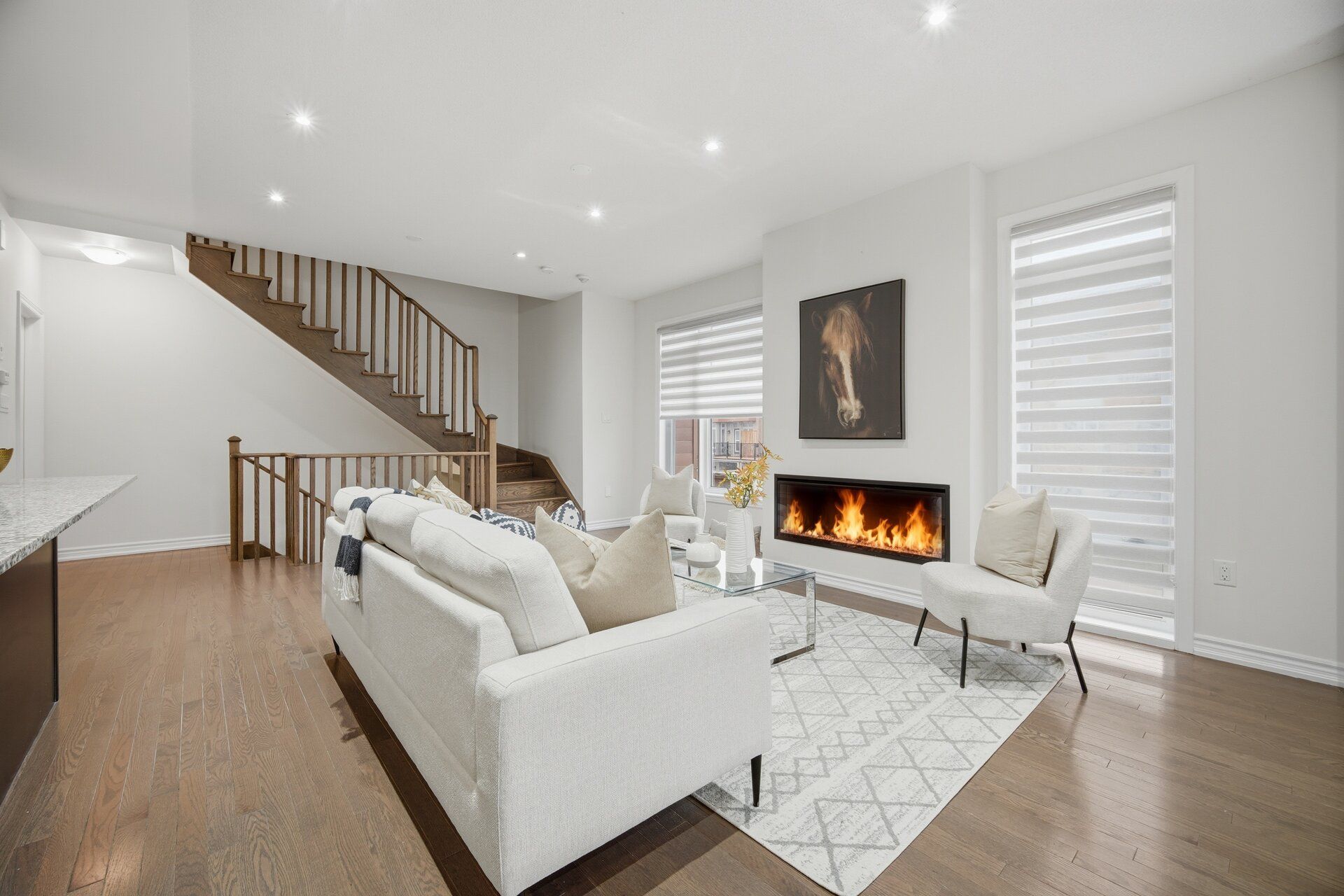 Absolutely stunning !!! Freehold corner townhouse . 4 bedrooms 3 washroom . Modern look with lots of big windows for natural light . Living room on ground floor can be used as home office . Open concept upgraded eat in kitchen . Great room with dining area & gorgeous electric built in fireplace ### pot lights ### access to balcony . Primary bedroom has 3pc ensuite & closet . Very good size other bedrooms with big windows . Laundry is on ground floor with easy access to garage from house . Cold room and unfinished basement for extra space . Freshly painted & ready to move in ###no side walk ### total 3 car parking (2 on driveway+1 garage) & there is space for driveway extension . Great location brand new plaza on the same street just 2 minutes walk from the house.