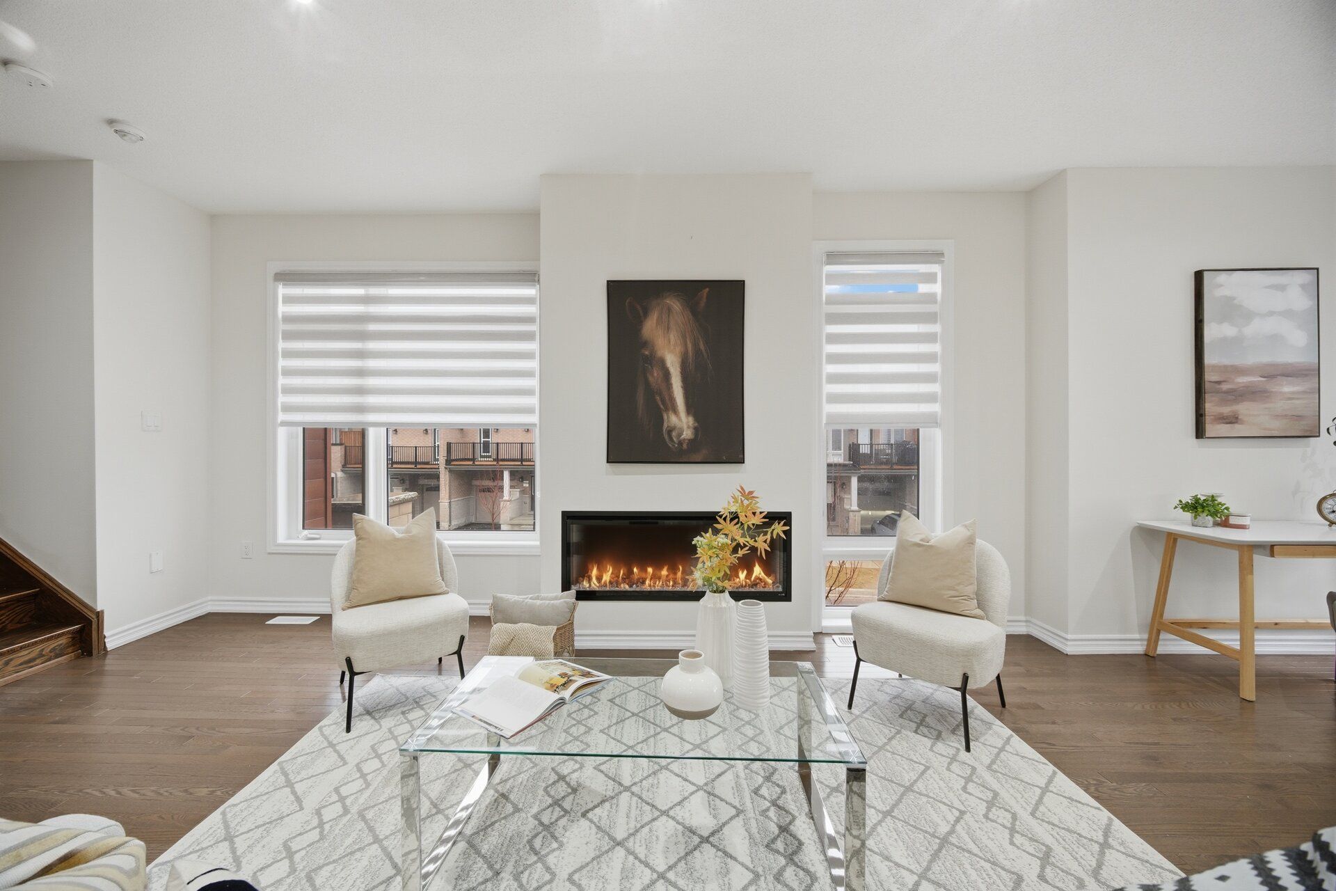 Absolutely stunning !!! Freehold corner townhouse . 4 bedrooms 3 washroom . Modern look with lots of big windows for natural light . Living room on ground floor can be used as home office . Open concept upgraded eat in kitchen . Great room with dining area & gorgeous electric built in fireplace ### pot lights ### access to balcony . Primary bedroom has 3pc ensuite & closet . Very good size other bedrooms with big windows . Laundry is on ground floor with easy access to garage from house . Cold room and unfinished basement for extra space . Freshly painted & ready to move in ###no side walk ### total 3 car parking (2 on driveway+1 garage) & there is space for driveway extension . Great location brand new plaza on the same street just 2 minutes walk from the house.