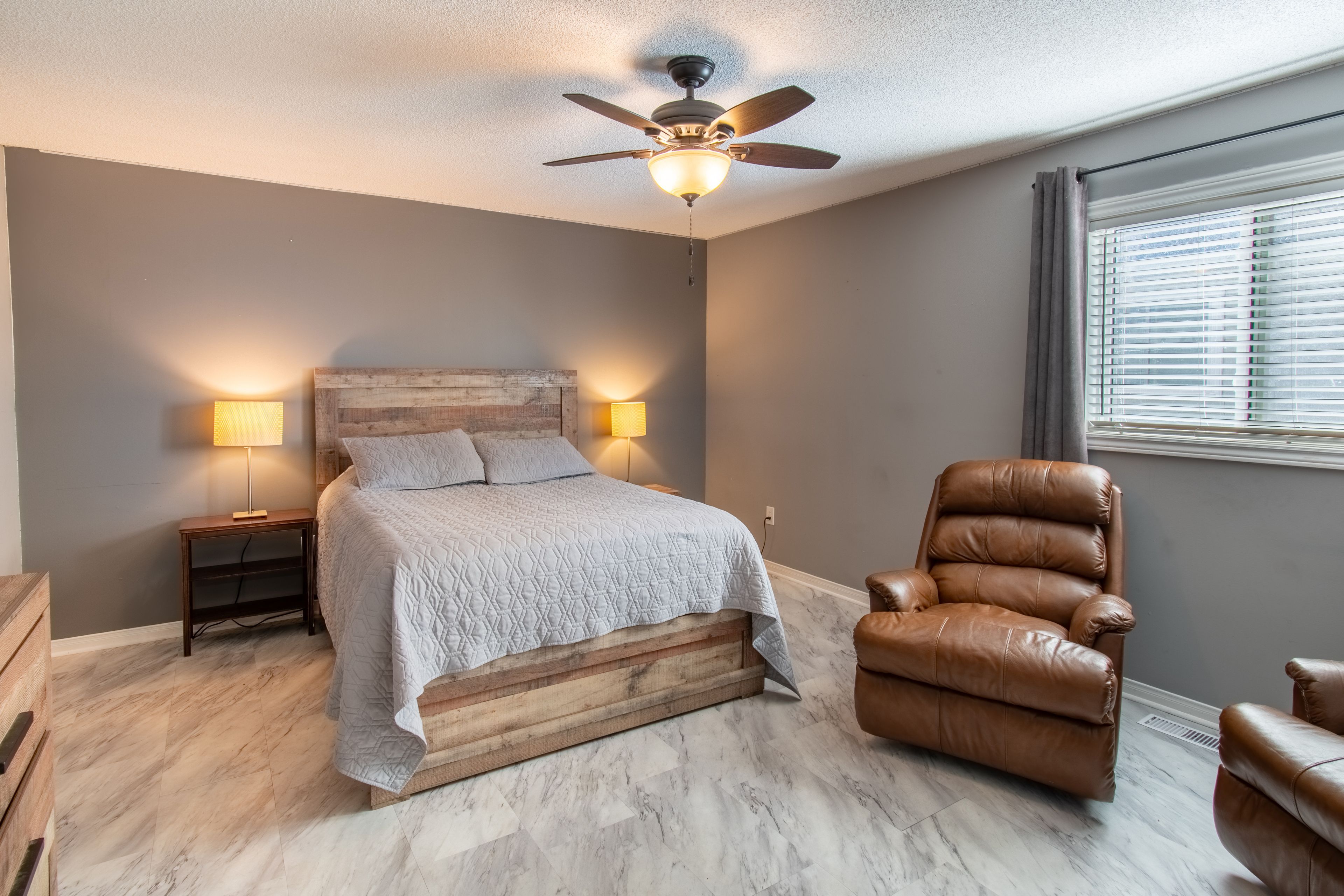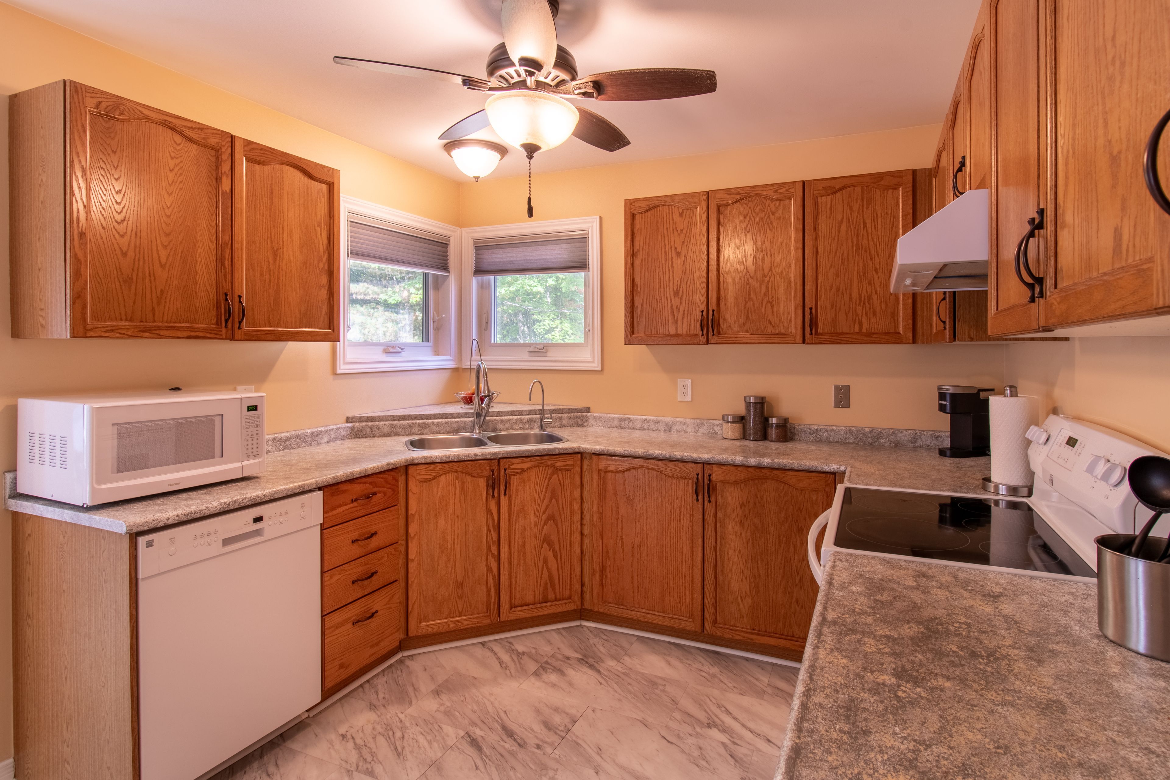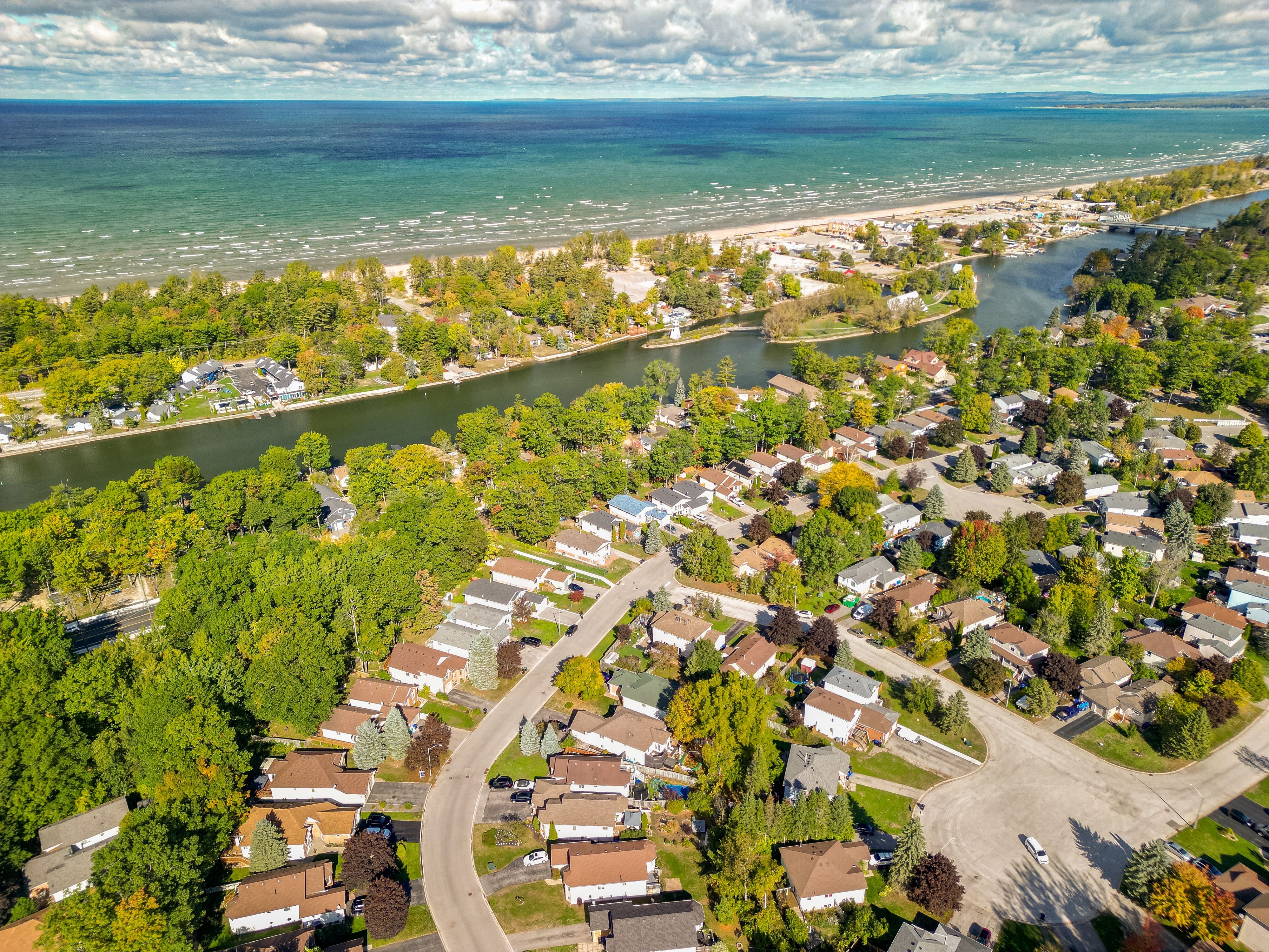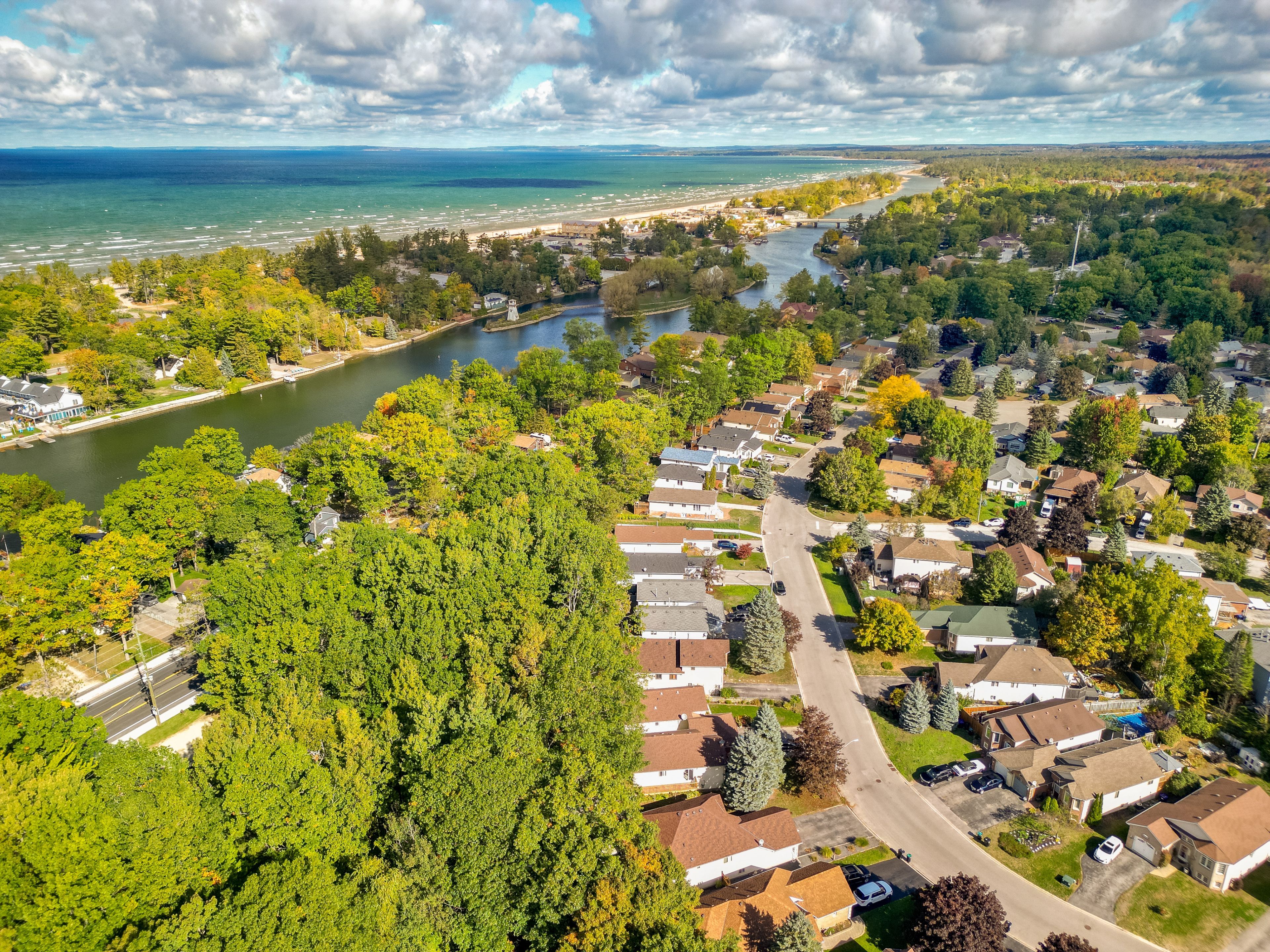 Welcome to this spacious raised bungalow offering around 2300 sq ft of living space, just minutes from canada's largest freshwater beach. This home combines an ideal location with a functional and inviting layout. The main floor features an open concept design highlighted by cathedral ceilings and large windows that fill the home with natural light. The living and dining areas flow seamlessly into the kitchen, with a convenient walkout to the deck, perfect for entertaining or enjoying quiet mornings outdoors. Two comfortable bedrooms and a full bathroom complete the upper level. The bright lower level offers exceptional additional living space with oversized windows, two more bedrooms, a full bathroom and a spacious living room with a cozy natural gas fireplace. Whether you need guest accommodations, a home office or a retreat for family gatherings, this level provides flexibility for every lifestyle. Set in a desirable area close to schools, shopping and recreational activities, this home is a perfect blend of comfort and location, this home is a must see.