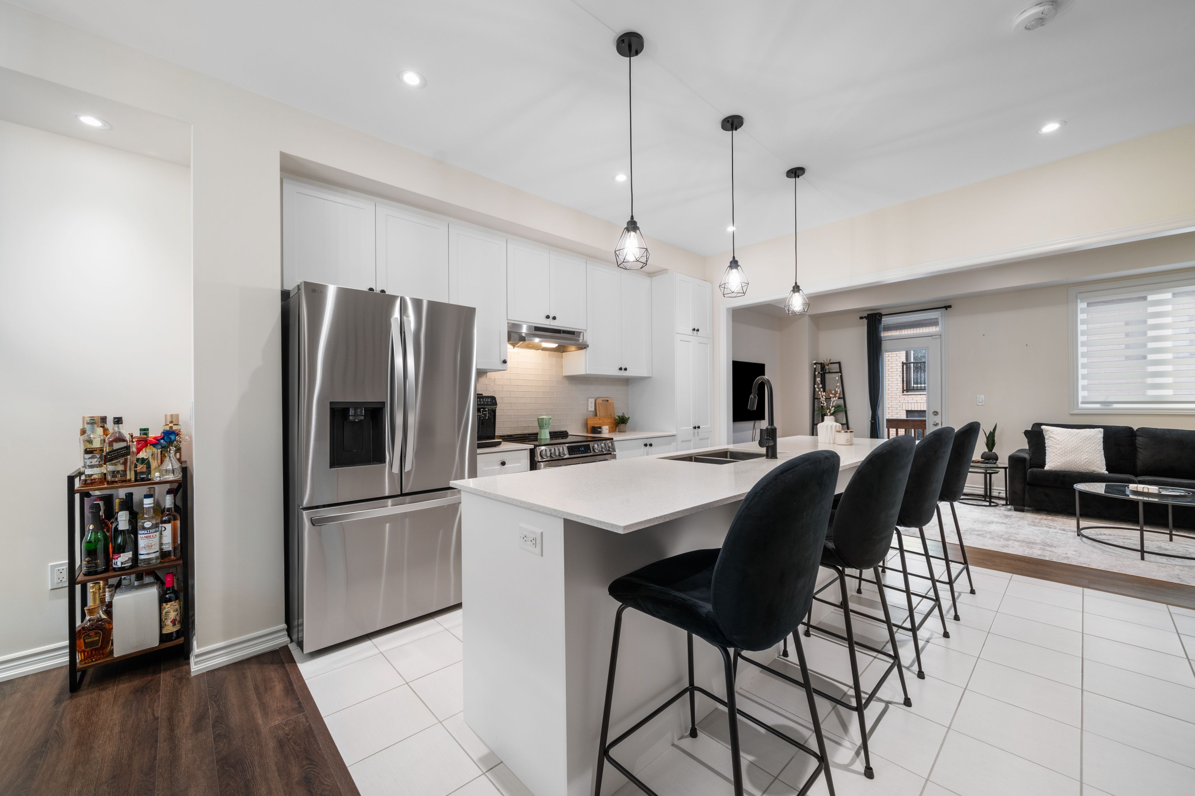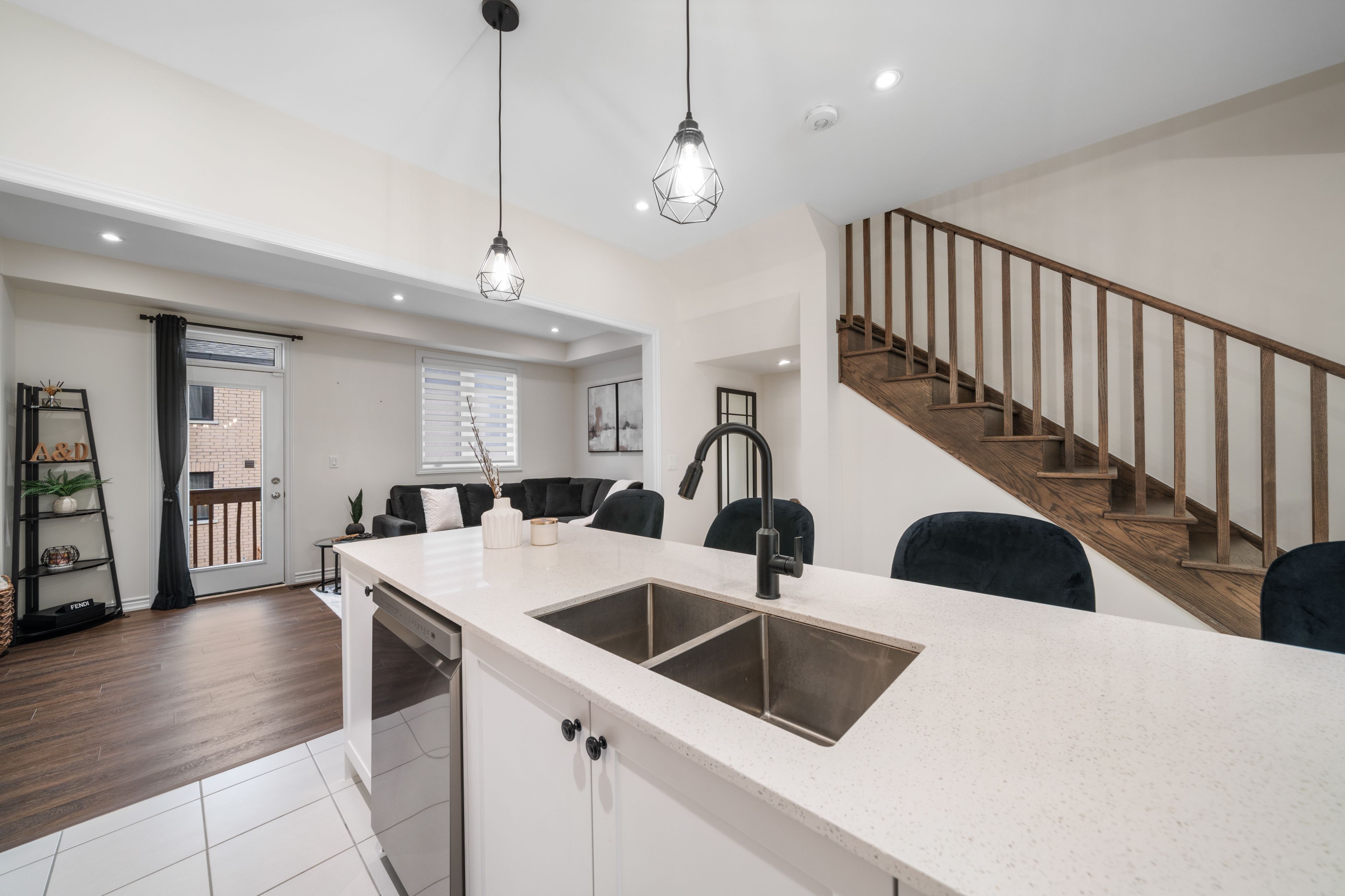 • Open-concept second floor with chef-inspired kitchen and balcony.