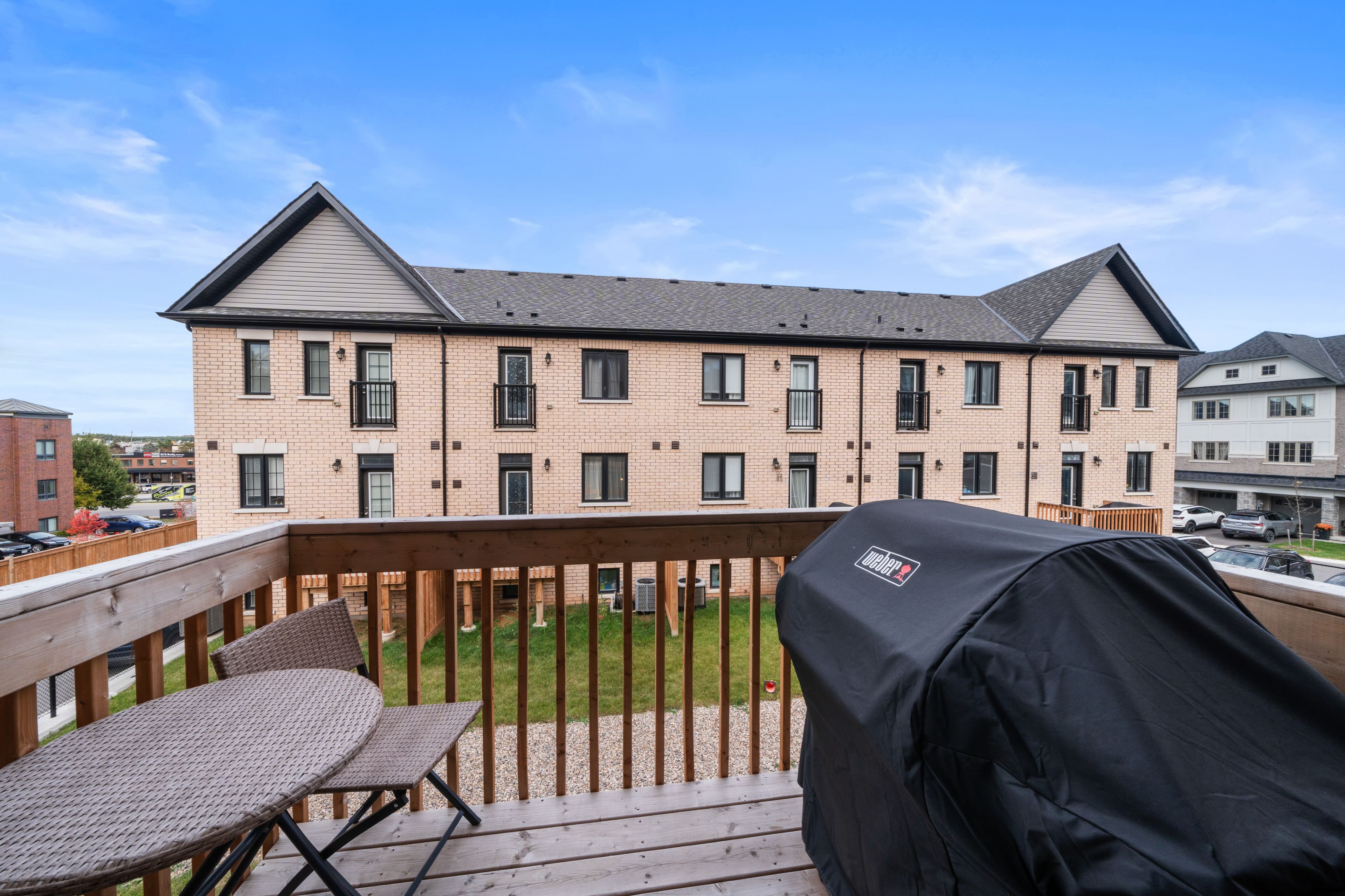 Sophisticated townhome living in the heart of orangeville. This modern 3 bedroom, 3 bathroom home blends contemporary design, high-end finishes and a highly walkable location in one of orangeville's most sought-after communities. Step inside to an inviting main-level featuring a den with a walk-out to the yard, perfect for a home office or cozy retreat. The open-concept second floor showcases a chef-inspired kitchen featuring quartz countertops, centre island and pantry, flowing seamlessly into a bright great room with pot lights and balcony walkout. Upstairs, the primary suite impresses with a 3-piece ensuite and balcony access, while two additional bedrooms offer generous space and natural light. Upgraded features include smooth ceilings on main and second floor, premium vinyl flooring, stained oak stairs, upgraded kitchen cabinets, backsplash and hardware. Steps from schools, shops, dining, parks and transit, it's the perfect balance of urban accessibility and small-town charm.