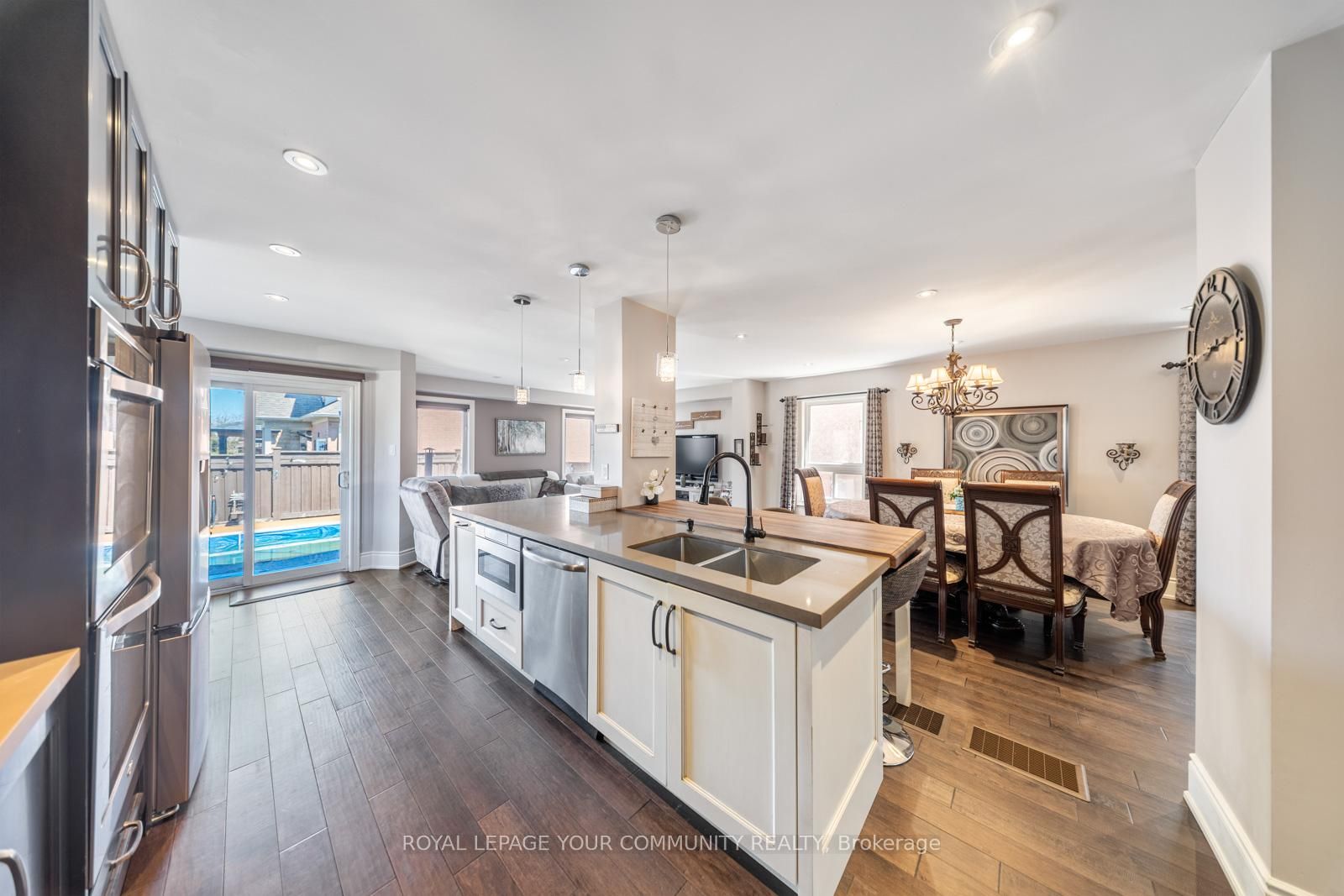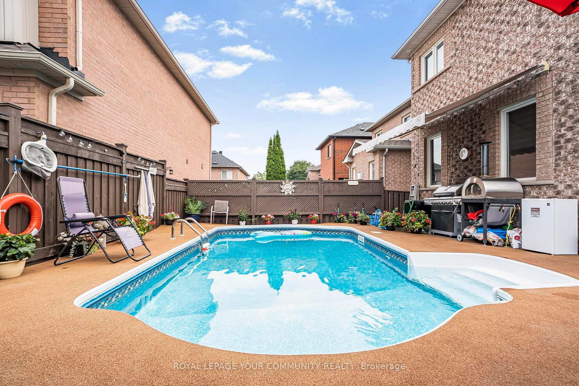 Ideal detached home located in highly desirable family friendly community. Impressive curb appeal with oversized front door, patterned concrete driveway & brand new garage door. Open concept main floor with wall to wall windows and hardwood flooring throughout. Modern chefs kitchen boasting custom cabinetry, granite counters and backsplash, double wall oven, pot filler, drawer microwave, under-cabinet lighting, and a large island with hard block countertops. Brand new blinds & upgraded led lighting + renovated powder room on main floor. 4 spacious bedrooms with ample closet space. Primary bedroom with spa like ensuite with jacuzzi tub & granite finishes. Finished basement with additional storage space. Backyard ready to host friends and family this summer with salt water pool, with rubber surfacing, stucco cabana, interlock pathways + underground sprinklers. A/c, furnace, humidifier, and roof were all replaced in 2022. Prime location minutes to top schools, parks, trails, and shopping. A must see!