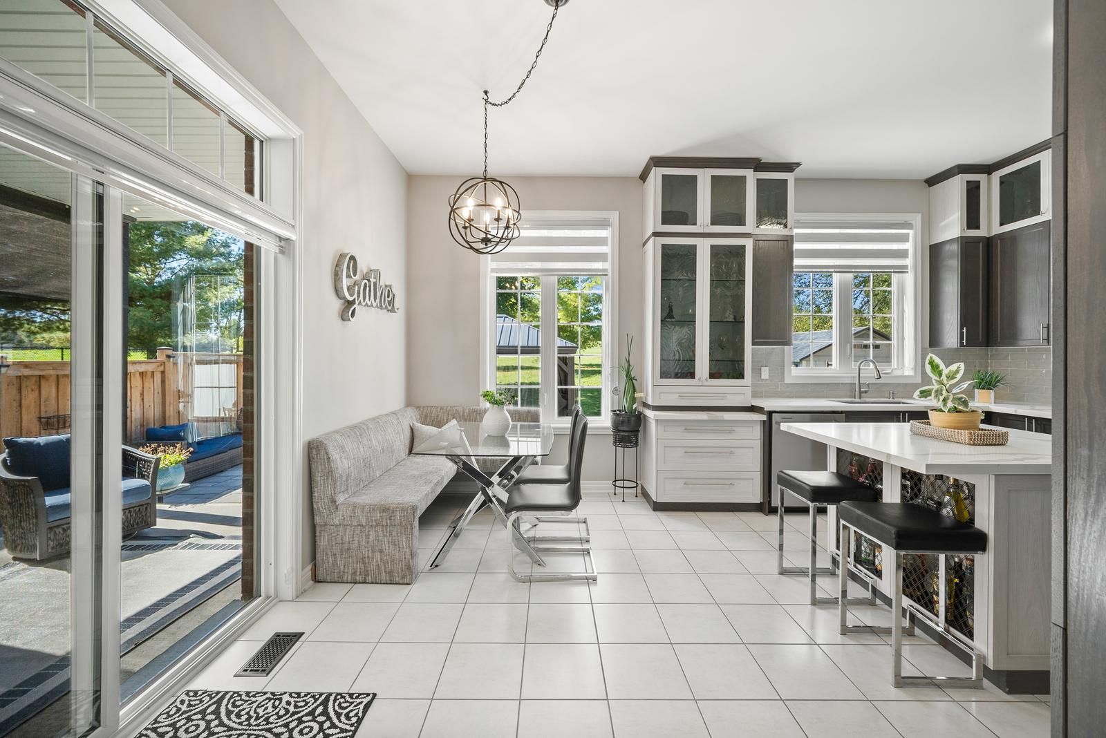 Nestled in one of bradford's most prestigious enclaves, 68 inverness way offers elegance & tranquility. Just shy of 3,000 sq ft, this 7-year-old home sits on a premium oversized lot, overlooking the serene uniloc landscaped patio, backyard oasis & greenspace. Complete w/ a shed, gas line, and gazebo. The 16-foot wrought iron fence has an opening to drive through. Premium soffit lighting, double doors, r/i bath in basement, cold cellar & a separate entrance to the basement. The insulated garage includes an electric heater. Featuring 10 foot ceilings on the main floor, upgraded oversized windows, high-end light fixtures, zebra blinds, oak stairs w/ iron pickets, oak floors throughout, & a gas fireplace. The fully upgraded kitchen will make cooking and entertaining a dream. The oversized centre island & elongated counters are quartzite, which is one of the most durable and heat-resistant natural stones. Extended two-tone oak cabinets withwaterfall glass niches. Premium kitchen aid appliances and a custom fan unit, custom glass backsplash & 13x13 porcelain tiles; this kitchen has been upgraded from top to bottom. Walk-out to the covered porch (built by builder) from the kitchen and easily entertain in rain or snow. Featuring four spacious bedrooms, four bathrooms, and custom built-ins throughout. The grand primary bedroom features a large walk-in closet, electric fireplace & a 5 piece ensuite with an oversized tub. The must-see upper-level laundry room has been upgraded w/ caesarstone counters & custom cabinets. This home comes with a 3 stage water softener system w/ h20 by uv. Includes 4 nest cameras and a doorbell camera. Every inch of this home has been upgraded & taken care of meticulously. This move-in ready home is close to so many amenities, hwy 400, public transit, state of the art community centre, public library, schools, parks and future bradford bypass.