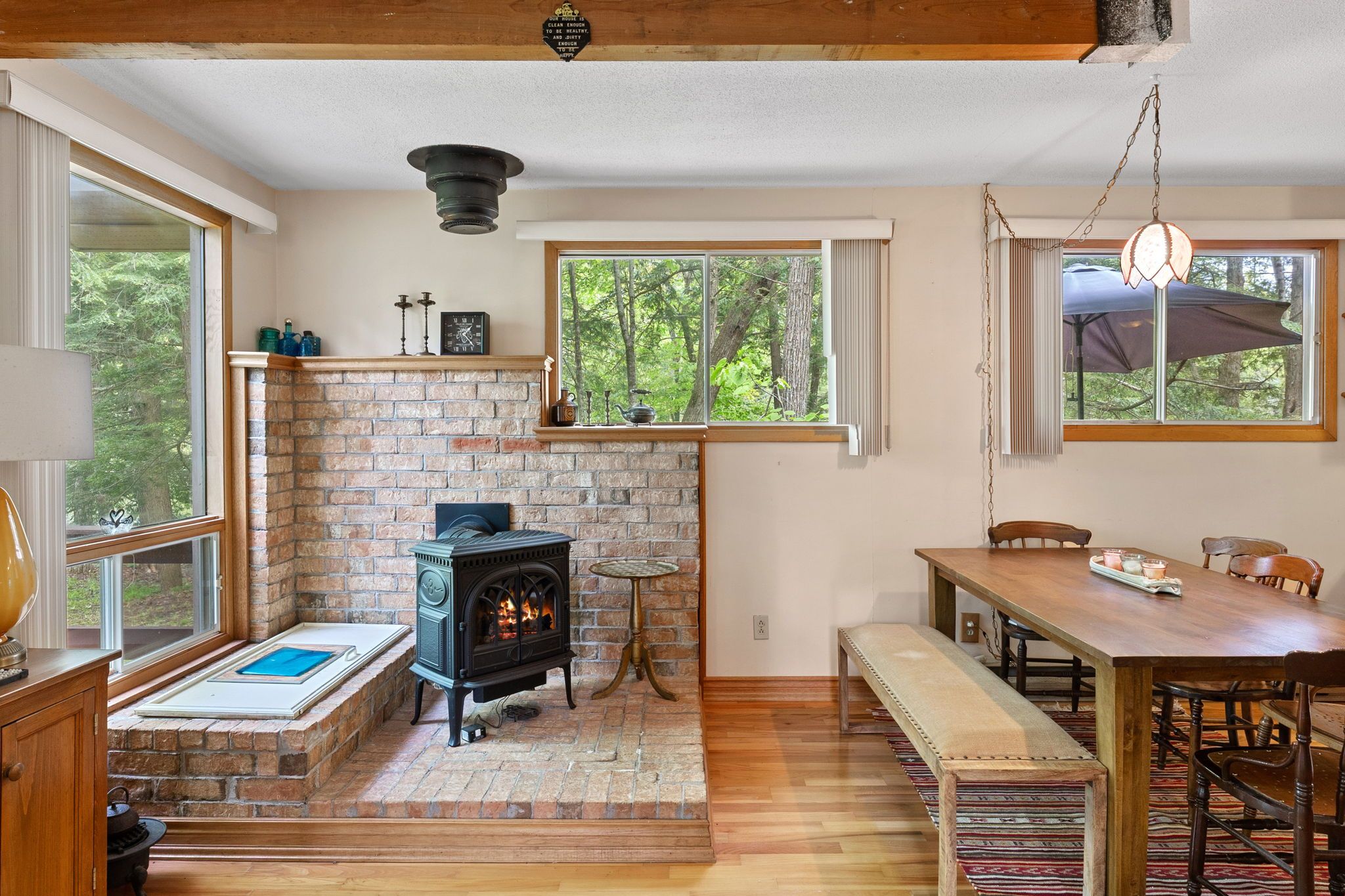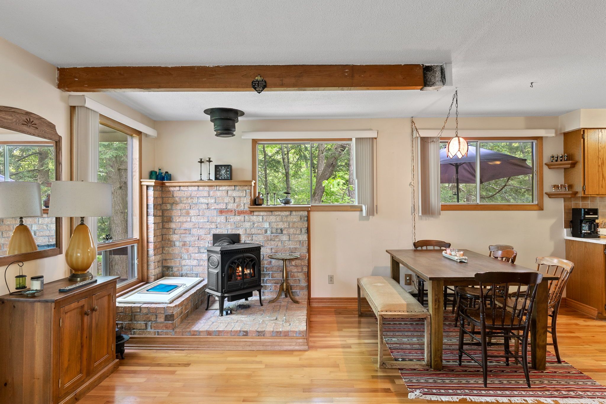 • Open-concept layout with cozy fireplace, perfect for year-round living.