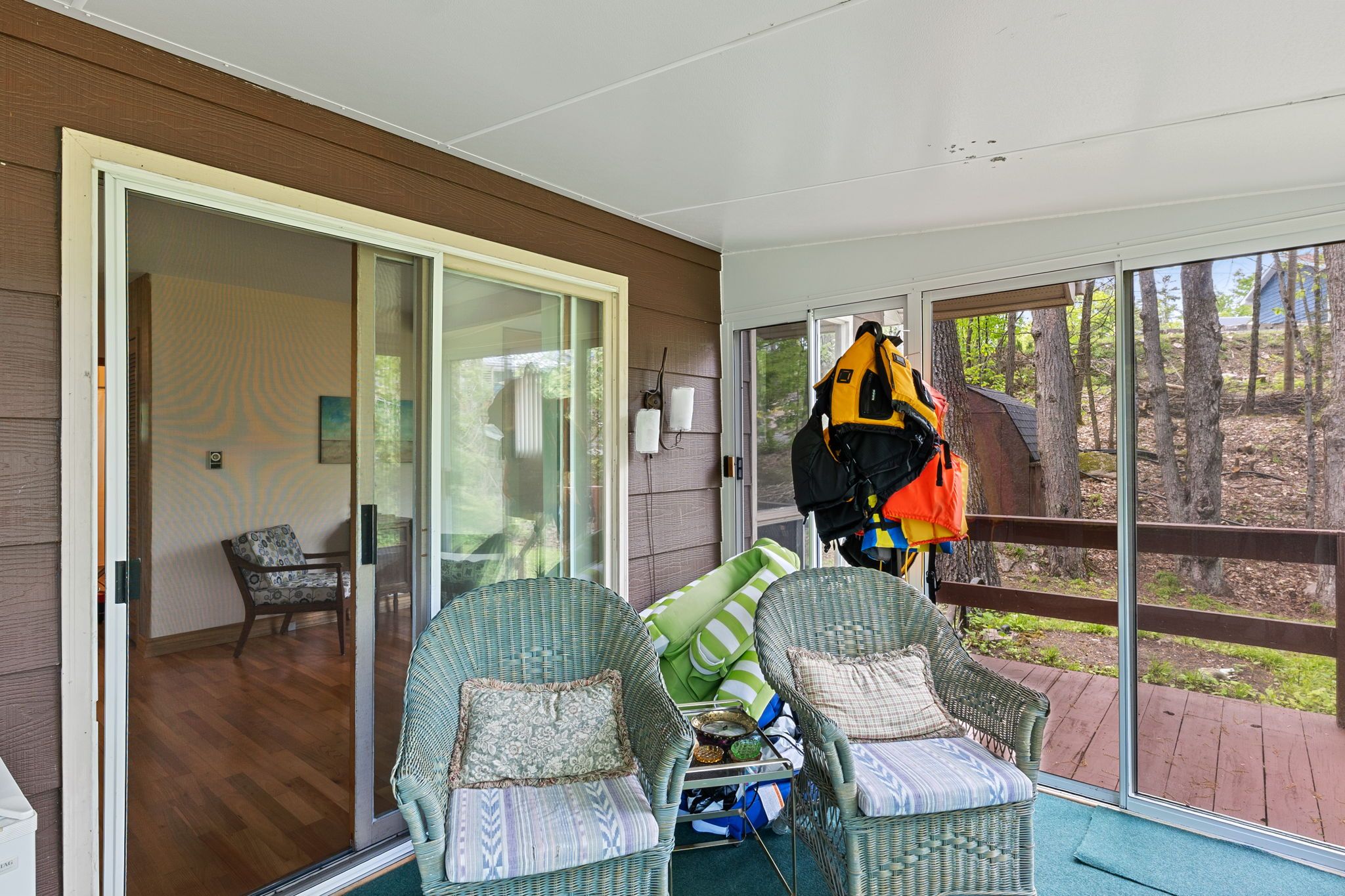 • Bright sunroom offers beautiful lake views for relaxation.