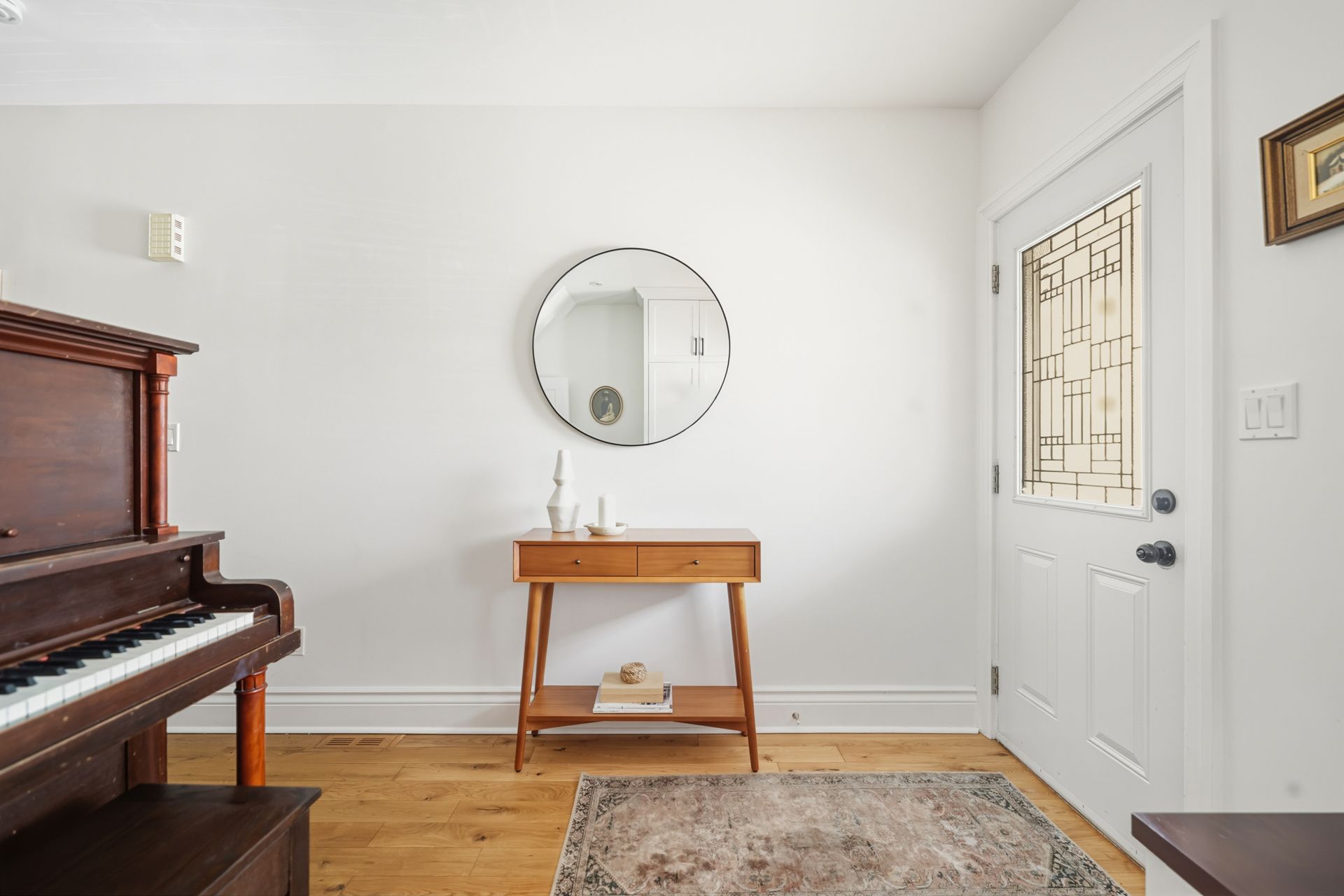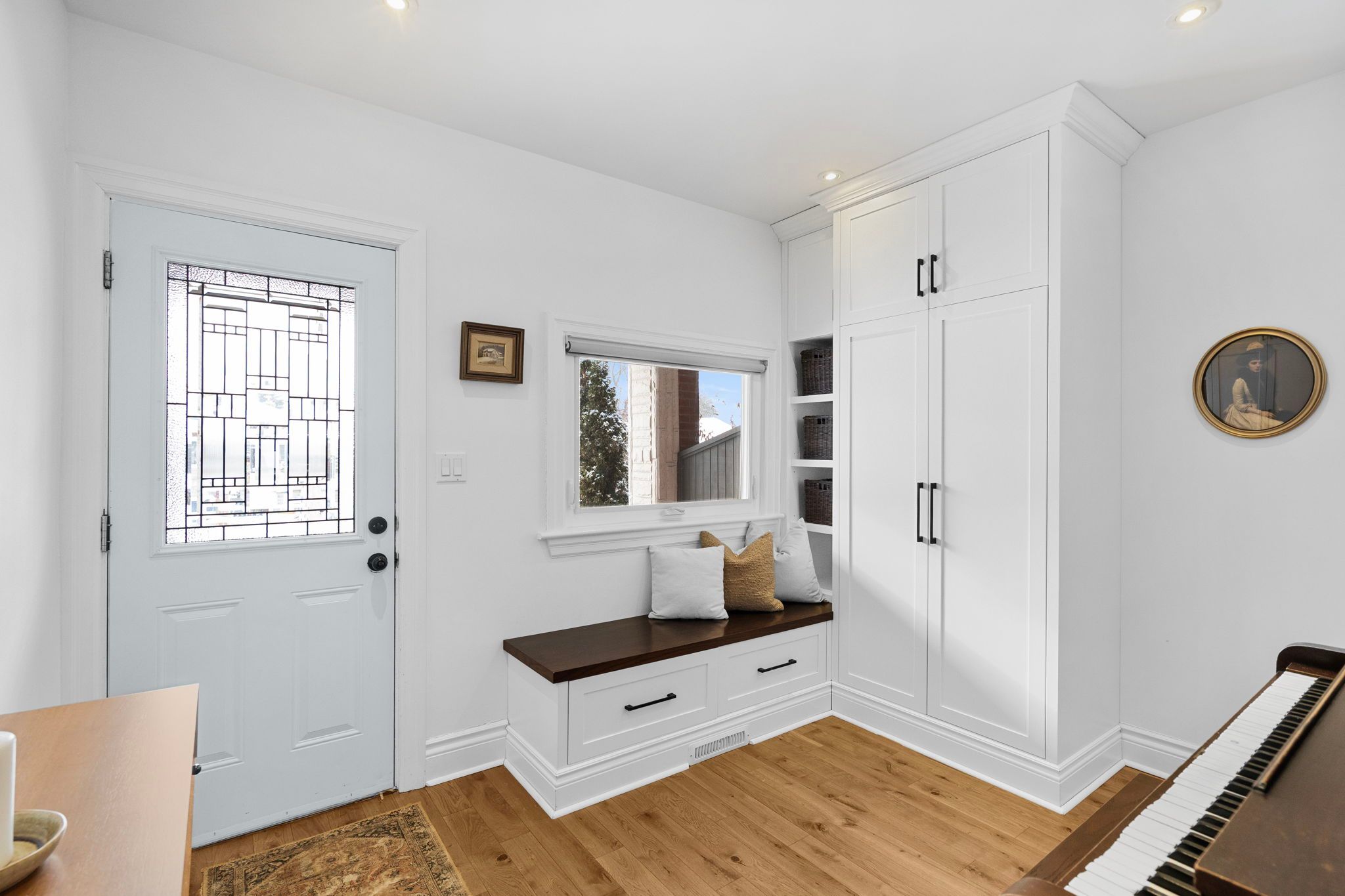 • Inviting covered porch and bright interior with a piano.
