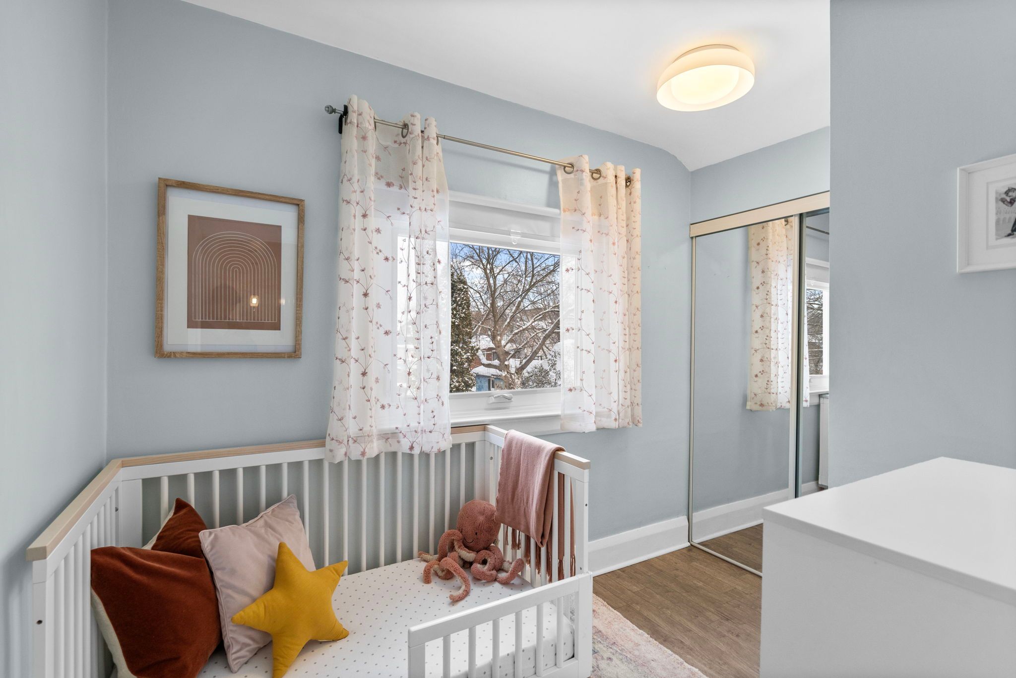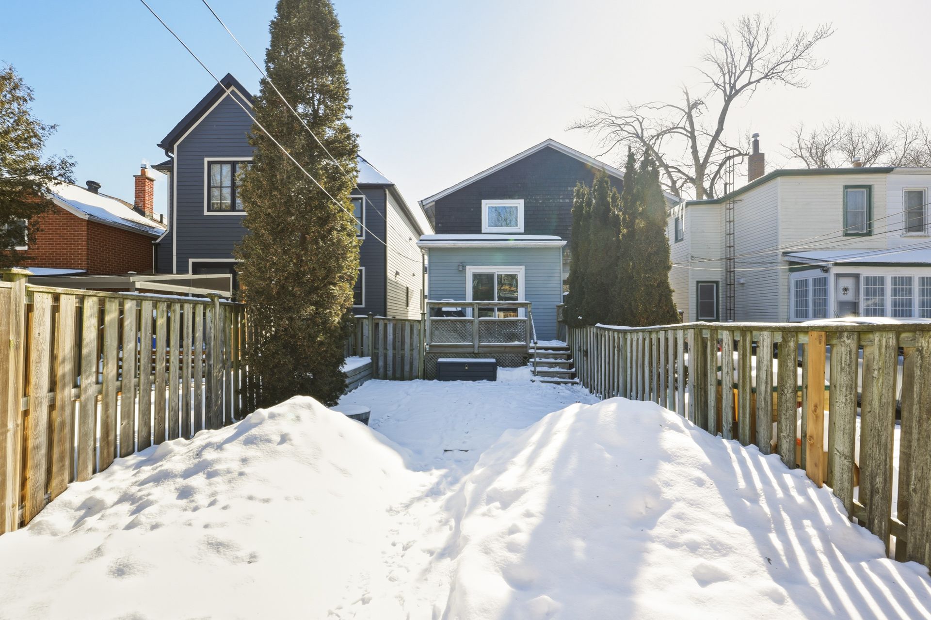 Cedar-clad and graceful, this one rests on lake crescent. A covered porch welcomes you, and through the front window, a wooden piano catches the warm light glowing from within. The scene beckons to all of us. Old piano notes drift as you step into the mudroom with built-in seating and generous front hall cabinetry. Is this an east end gem, or simply a rare find here in the west? The side-to-side staircase layout brings ample character and creates the entire flow. The main level feels so warm. Wooden floors complement the kitchen beautifully. This is a full-sized kitchen with every function you've been seeking, including a sizable dining area that spills out to a backyard wrapped in privacy and stillness. Upstairs, you can feel glow of bedside reading lights and hear robert munsch tales all for the sake of a good tuck-in before closing your eyes. Each bedroom suits different family members well, offering storage and charm. The family bath is elongated and feels larger than most, bright, respectable, ready to get the kids to school every morning. The finished lower level provides a second full and updated bath, an extra bedroom, and the perfect blend of family room and workout space. Good things come to those who live here and love here. Close to everything mimico - ttc, mimico go, and the lakeshore.