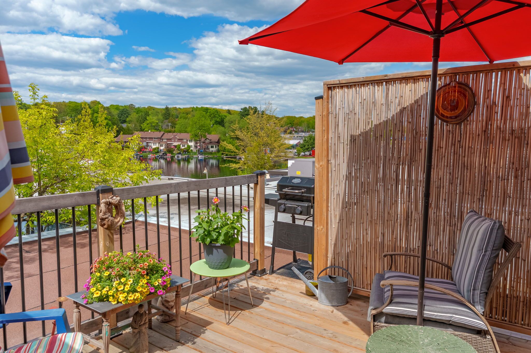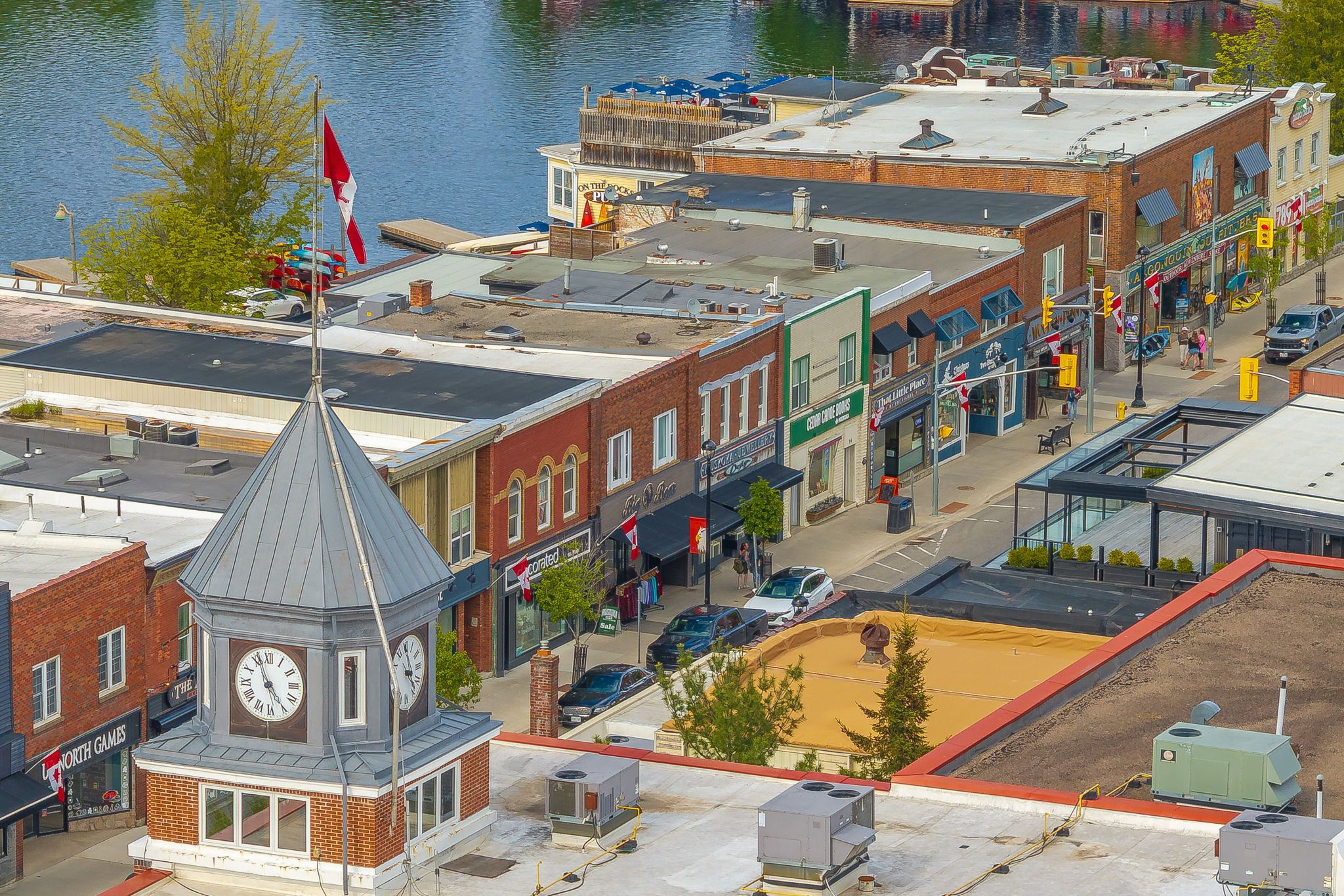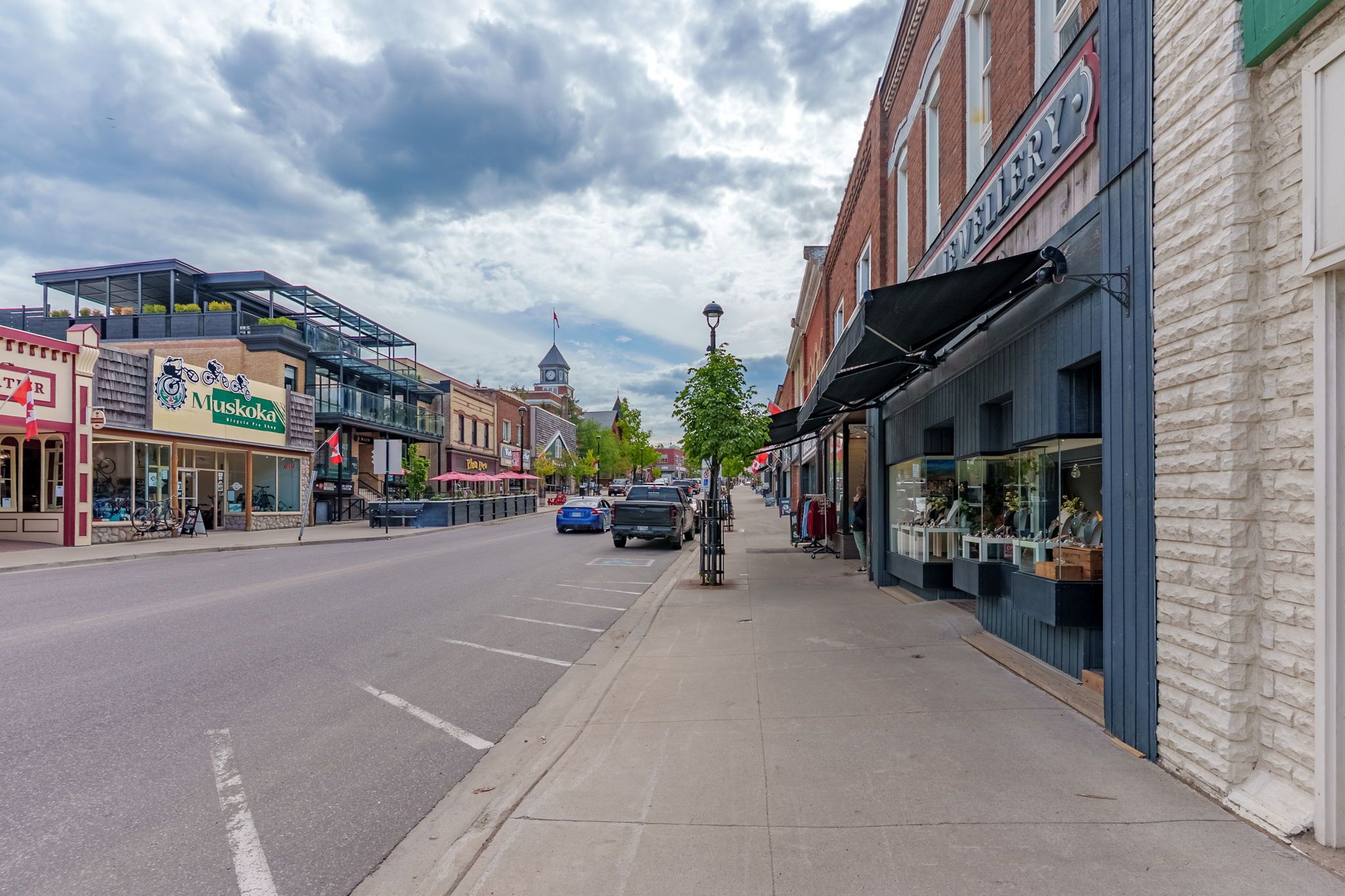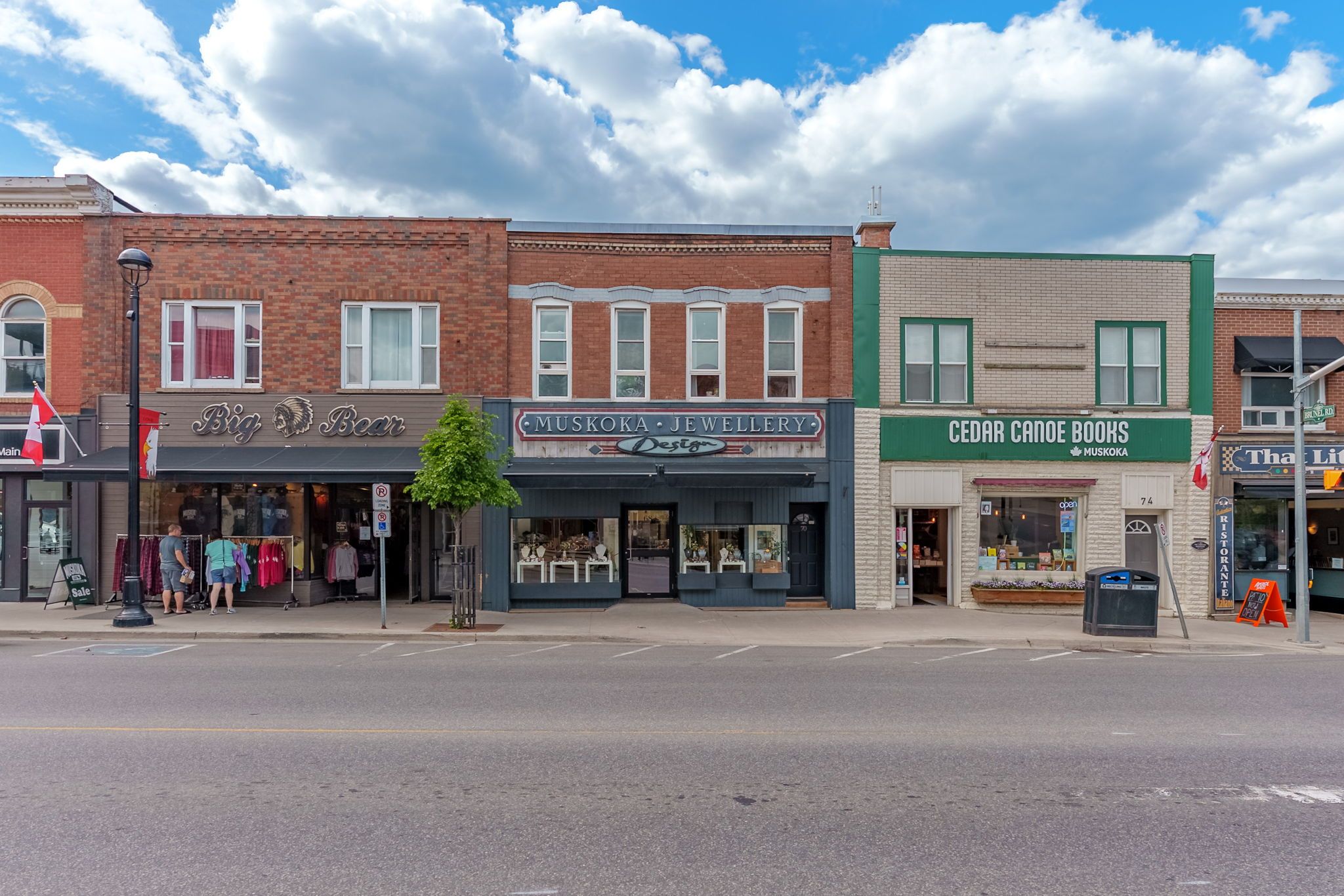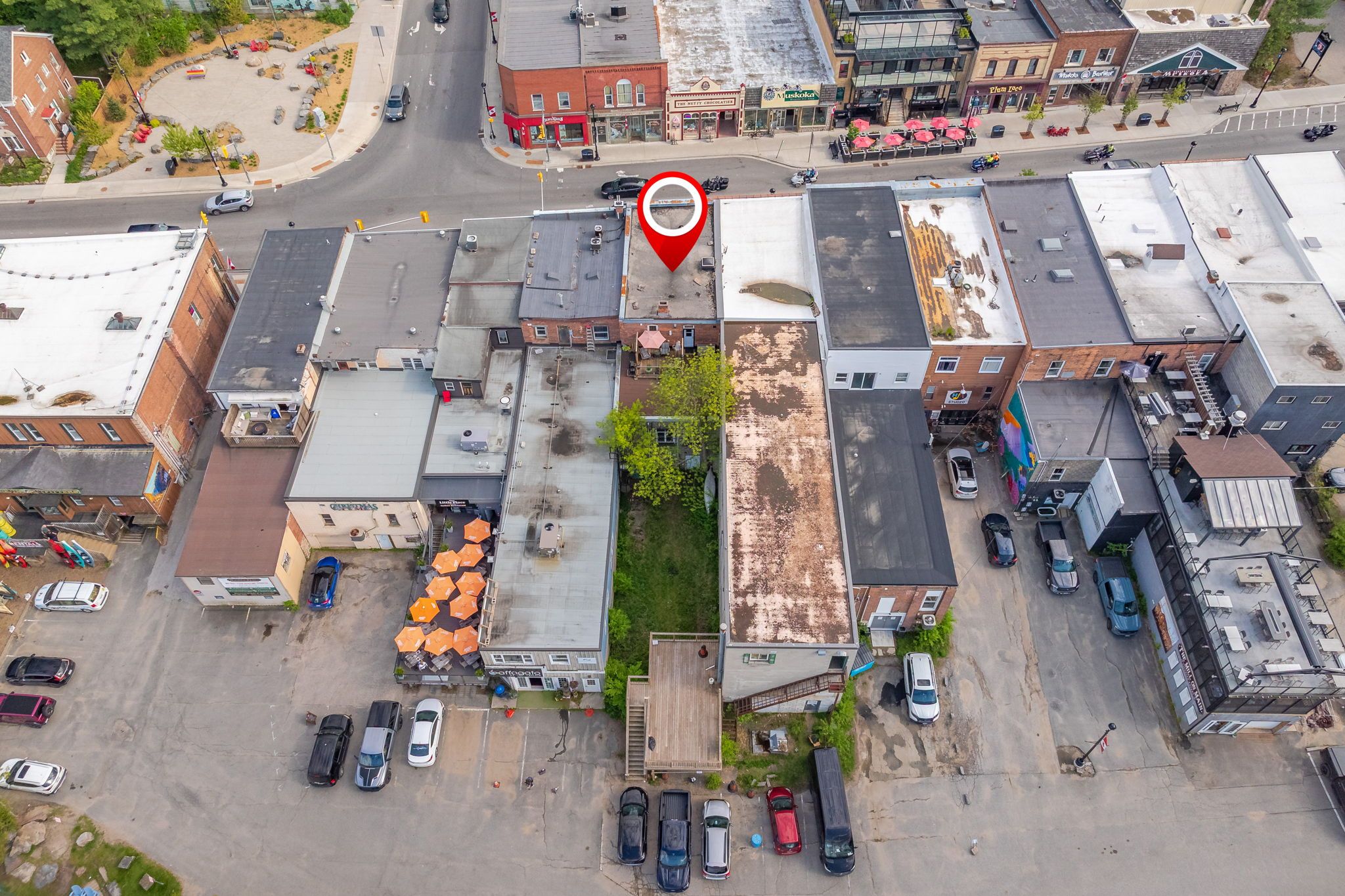 Prime downtown commercial building with a beautiful 2-bedroom upstairs apartment with separate entrance, and just a few steps from the muskoka river! Own a piece of prime real estate in the heart of downtown huntsville adjacent to the stunning muskoka river and town docks. This beautifully maintained, two-story commercial/residential building offers the perfect combination of business potential and stylish living space. Whether you're an investor, entrepreneur, or someone seeking a live/work lifestyle, this property is a rare find. The main floor commercial space offers a high-visibility storefront with large display windows, 1400 square feet of flexible retail/office space, a modern, open layout, and access to the full, unfinished, walk-out basement which opens onto a large undeveloped rear yard offering further expansion potential. The upper floor boasts a stunning 2-bedroom, 1-bath apartment accessed by a private entrance, with loads of natural light, a modern kitchen with stainless steel appliances, large living room, and a fabulous rooftop patio off the kitchen with views over the muskoka river; perfect for morning coffee or sunset evenings. This incredible package offers high foot traffic, a visually striking storefront close to a controlled intersection so people can window shop from their vehicles, a strong local business community, walking distance to parks, restaurants, shops, entertainment and more. Come explore the seemingly endless potential for both residential and commercial income, or the convenience of owner-occupied business location. Don't miss this rare opportunity to own a character-filled downtown building in the heart of huntsville with built-in income potential and incredible lifestyle appeal. **building and land for sale only. Total square footage includes basement (3965 sq. Ft)