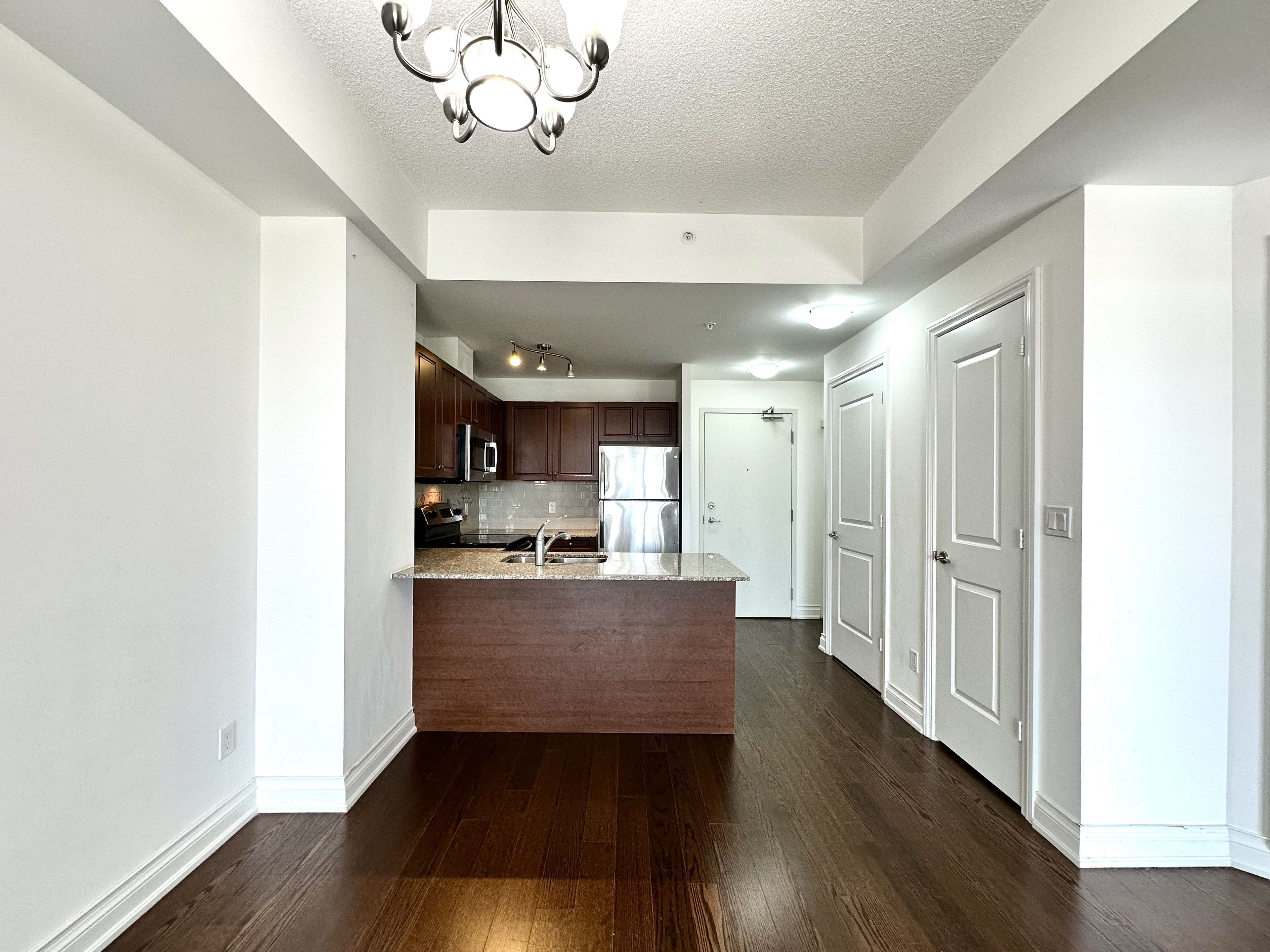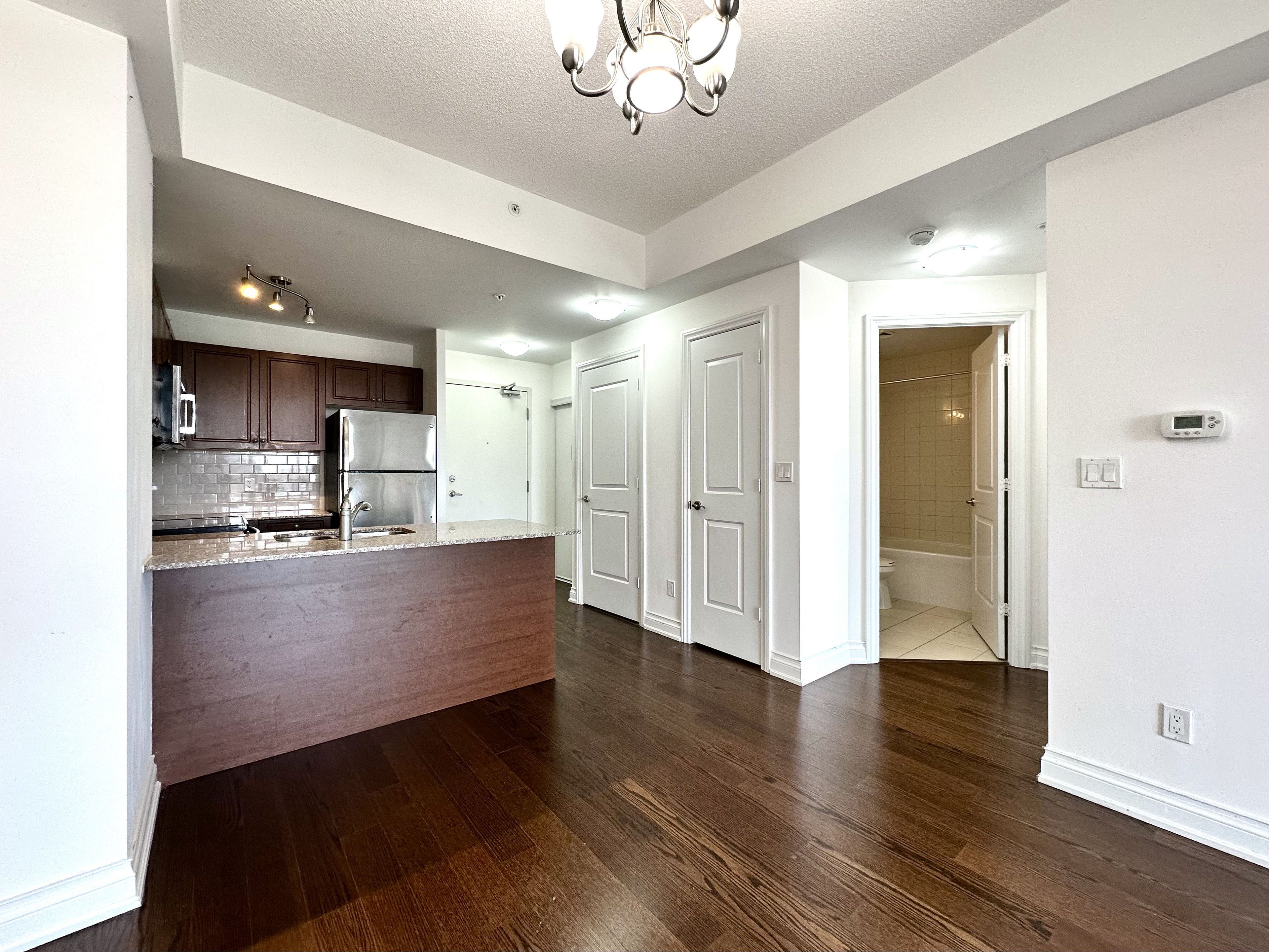 Gorgeous1 bedroom condo unit in heart of old markham village! 1 parking + 1 locker. Engineer hardwood & 9' ceilings throughout. Spacious kitchen with granite counters and s/steel appliances. Concierge, gym & rooftop terrace are just a few of the many amenities this building has to offer. Walk out balcony with west exposure. Close to go, 407, hwy 7, public transit, library, shopping and restaurants.