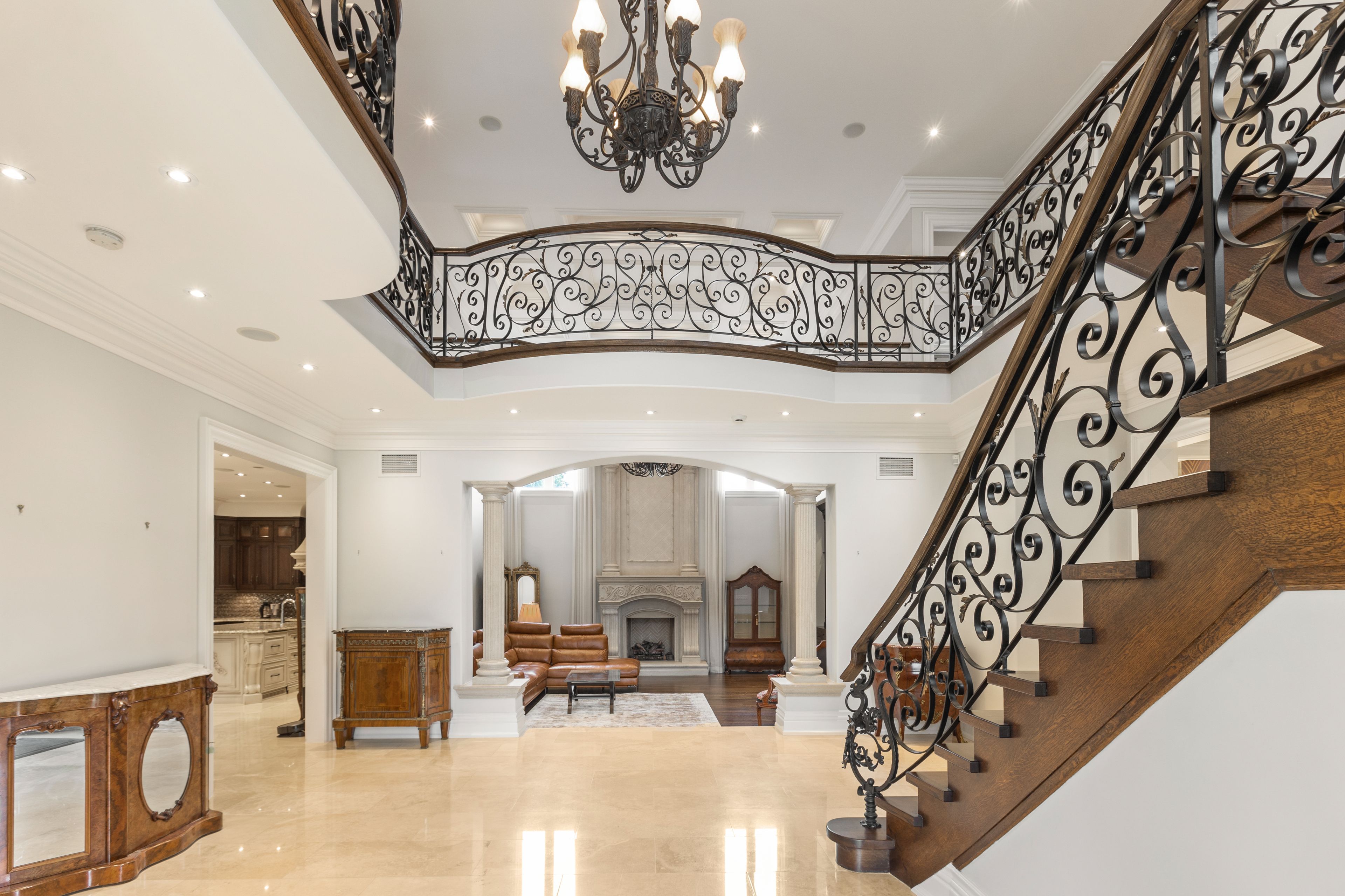 • Grand foyer with soaring ceilings and exceptional craftsmanship.