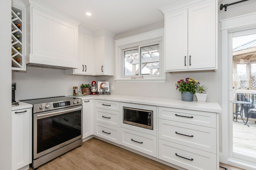 • Newly renovated open-concept kitchen with modern appliances and ample storage.