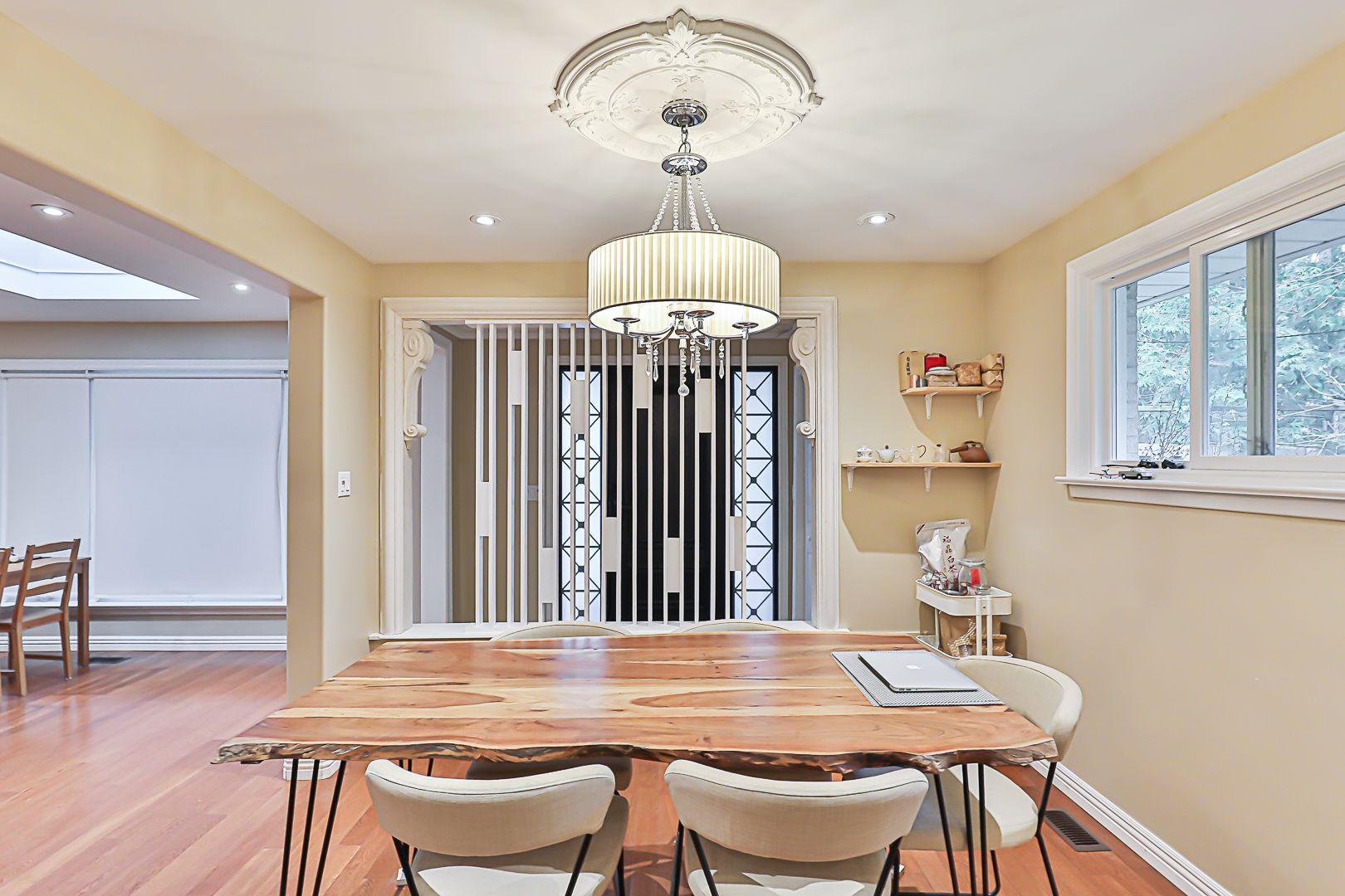 • Hardwood floors throughout enhance the home's elegant appeal.
