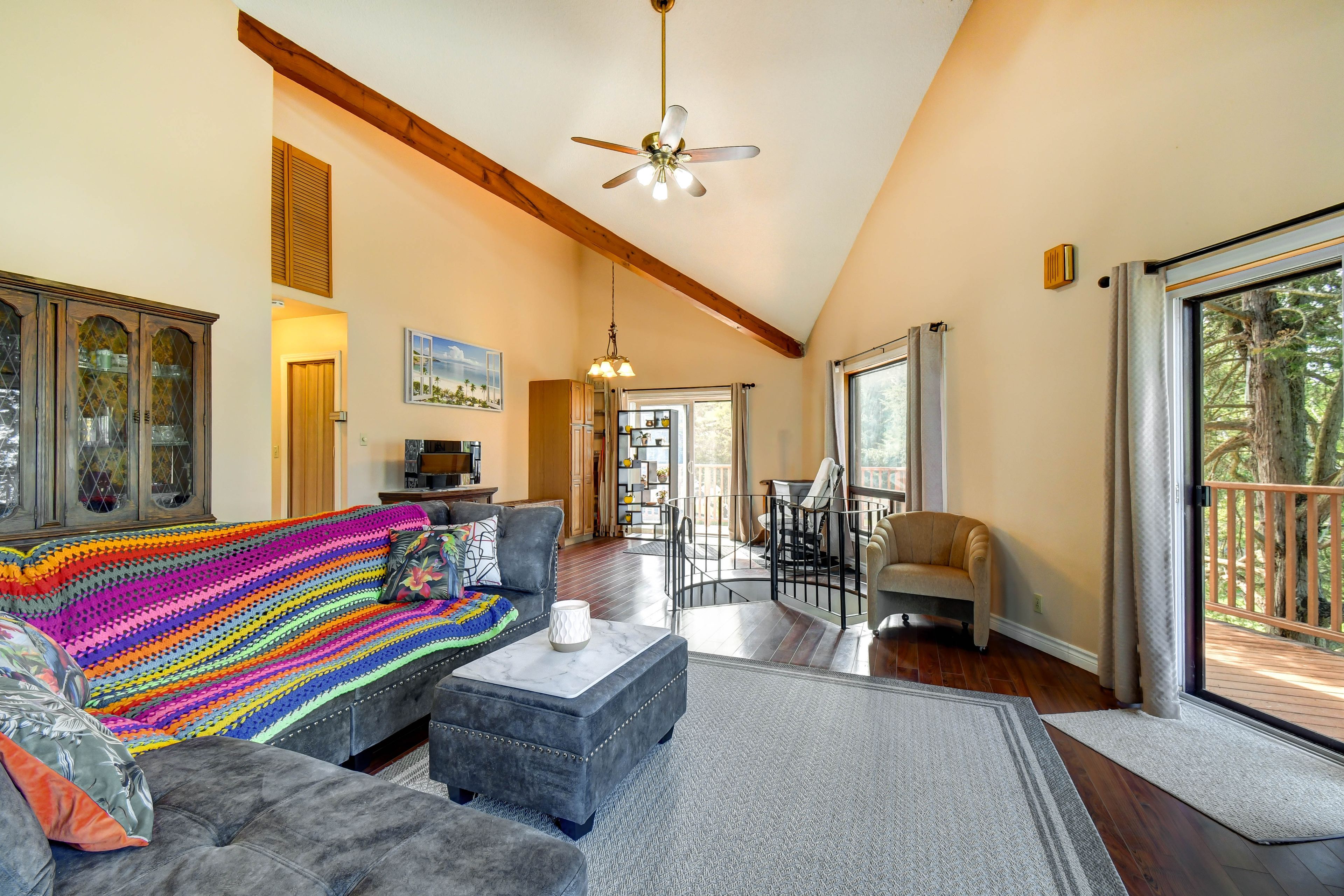 • Versatile two-story detached home with a spacious deck overlooking the water.