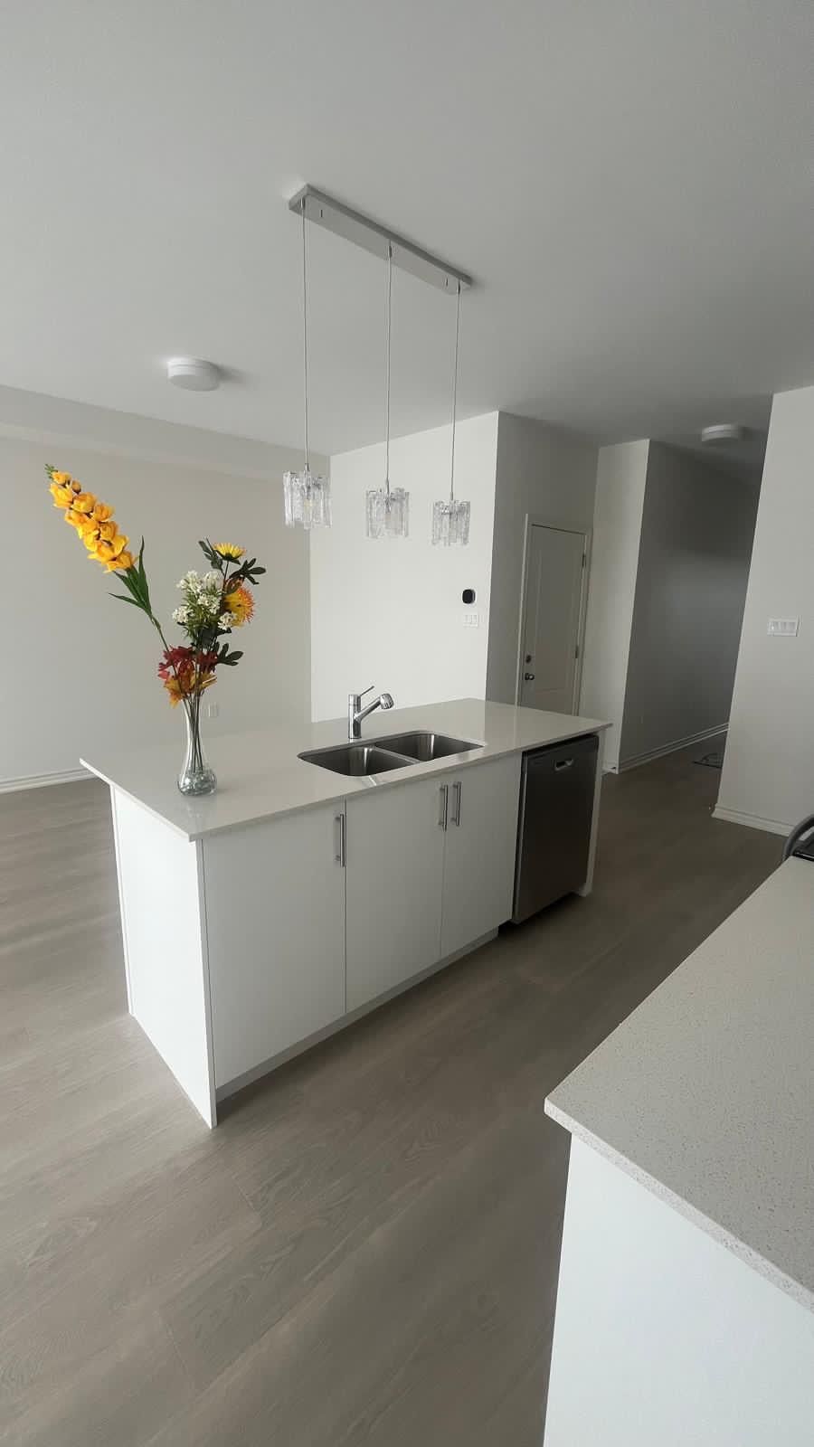 • Stunning kitchen with quartz countertops and stainless steel appliances.