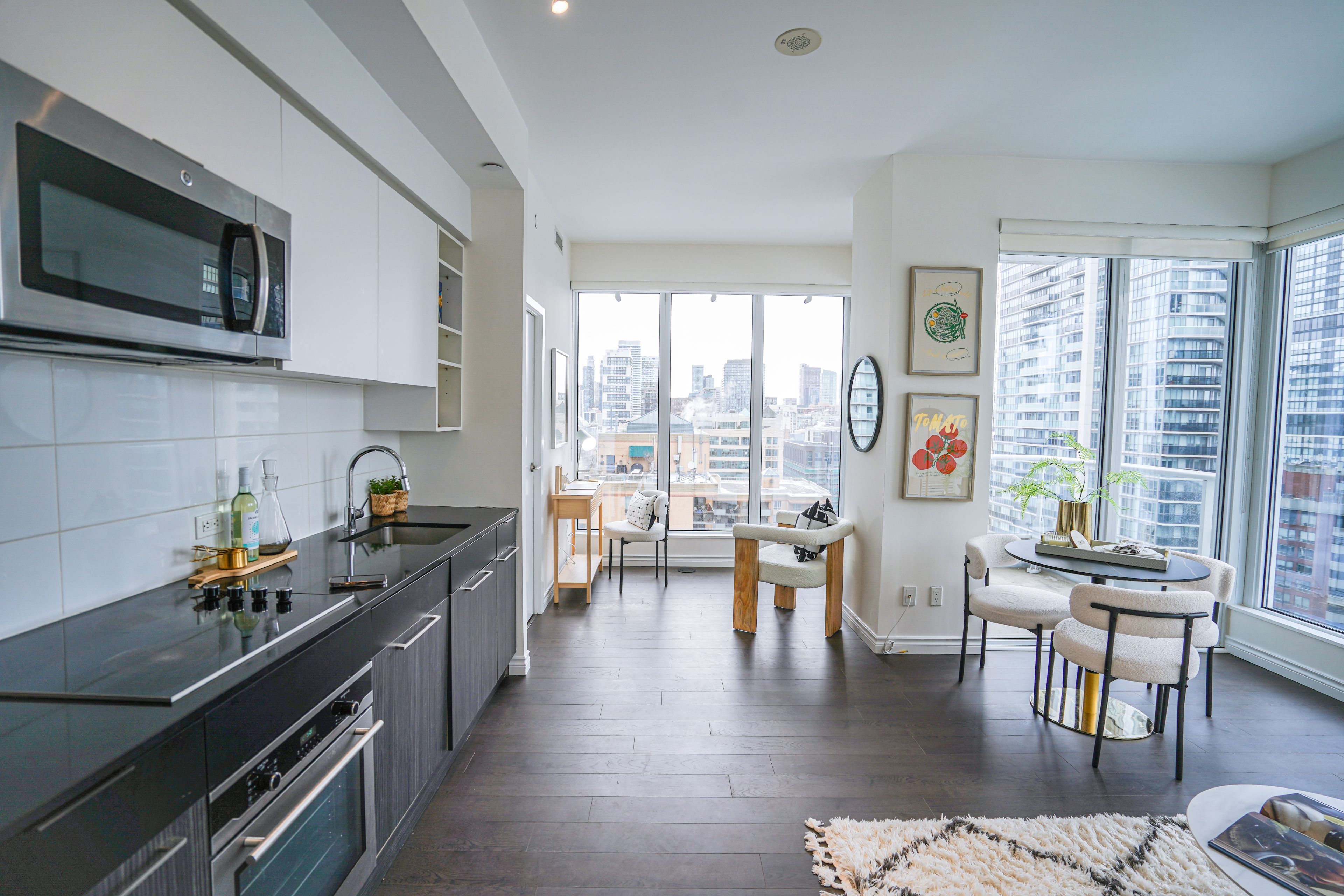 Freshly renovated 2+1 suite offering 775 sqft of bright, functional living in the heart of downtown. Open-concept layout with a spacious den-ideal for a home office-plus well-designed living and bedroom areas. Great natural light and practical living and bedroom space. Enjoy top-tier amenities: gym, rec room, games room, 24-hour concierge, and rooftop terrace with bbq. Steps to ttc, eaton centre, tmu, st. Michael's hospital, and more. Move-in ready in a prime location.