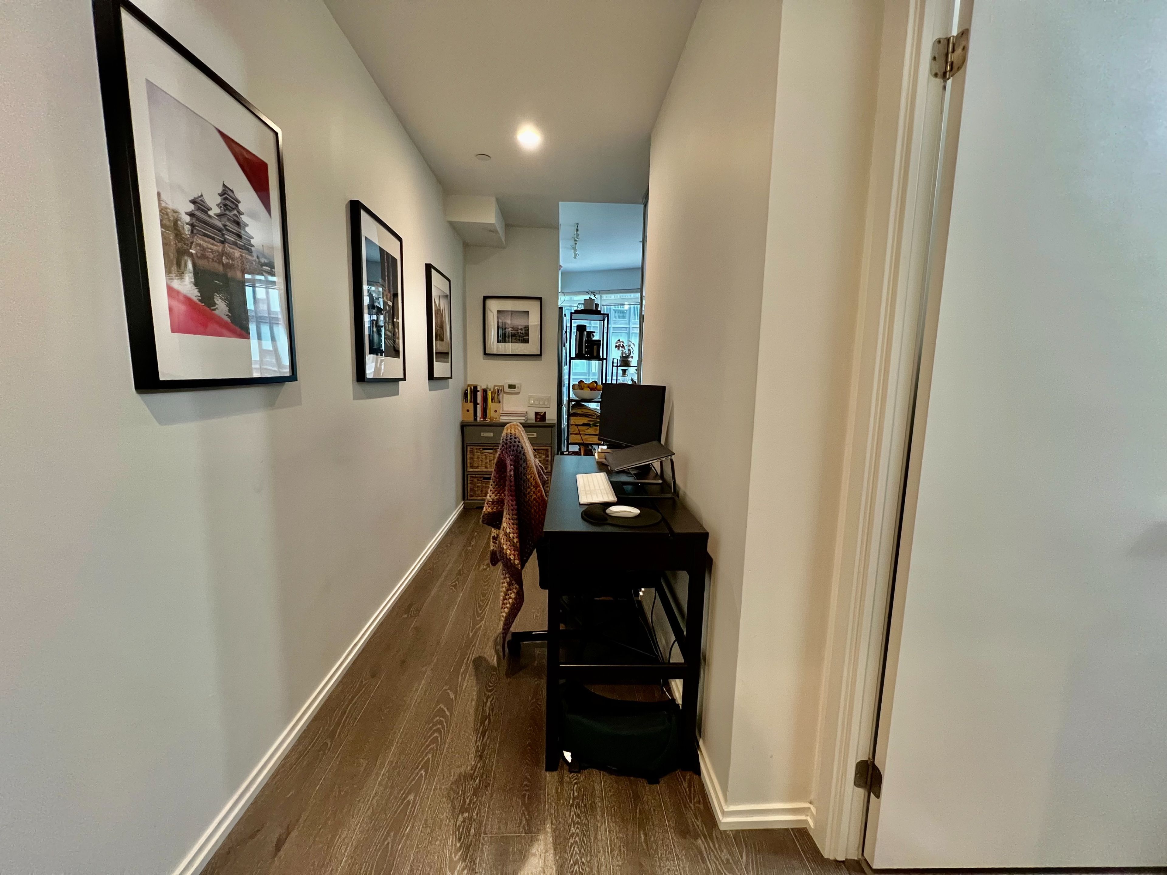 Stylish 1 bedroom + enclosed den at core condos by centrecourt, perfectly positioned in the heart of downtown toronto. This highly functional suite offers a smart, efficient layout with no wasted space, featuring west-facing exposure and an open balcony ideal for enjoying city sunsets. The interior is finished with sleek laminate flooring throughout, floor-to-ceiling windows, and smooth ceilings, creating a bright and modern living environment. The contemporary kitchen boasts built-in appliances, stone countertops, and luxury finishes, while the enclosed den provides the perfect setup for a home office, study, or guest space. Residents enjoy excellent amenities, including a fully equipped fitness centre, 24-hour concierge, outdoor terrace with bbqs, and more - all designed for comfort, security, and convenience. Located just minutes to queen and dundas subway stations, eaton centre, tmu, st. Michael's hospital, and toronto's extensive hospital network, this unbeatable location puts everything at your doorstep - from dining and shopping to work, school, and entertainment. Live where it all happens. A perfect opportunity for professionals and urban dwellers seeking modern design, smart space, and a prime downtown lifestyle.