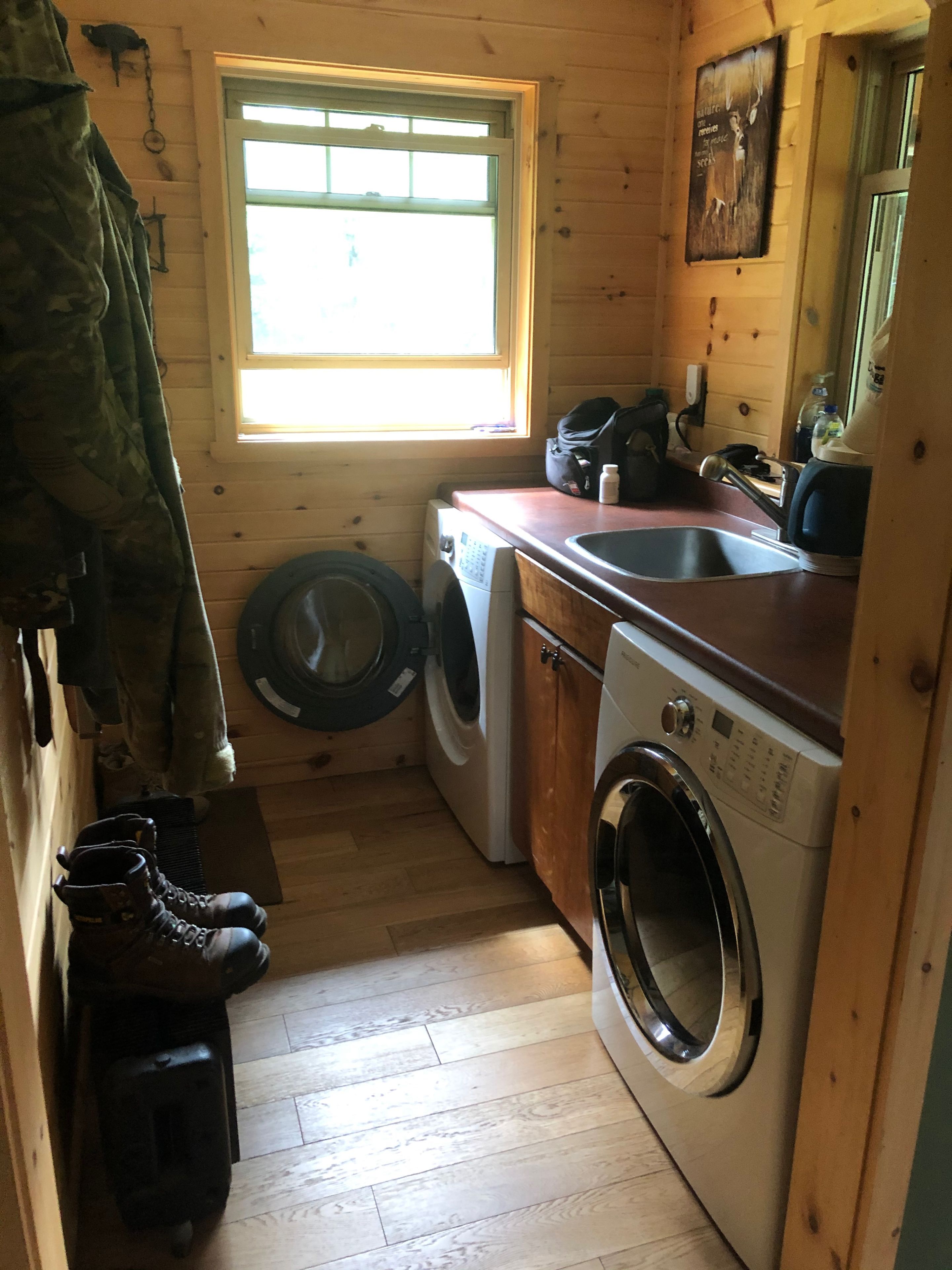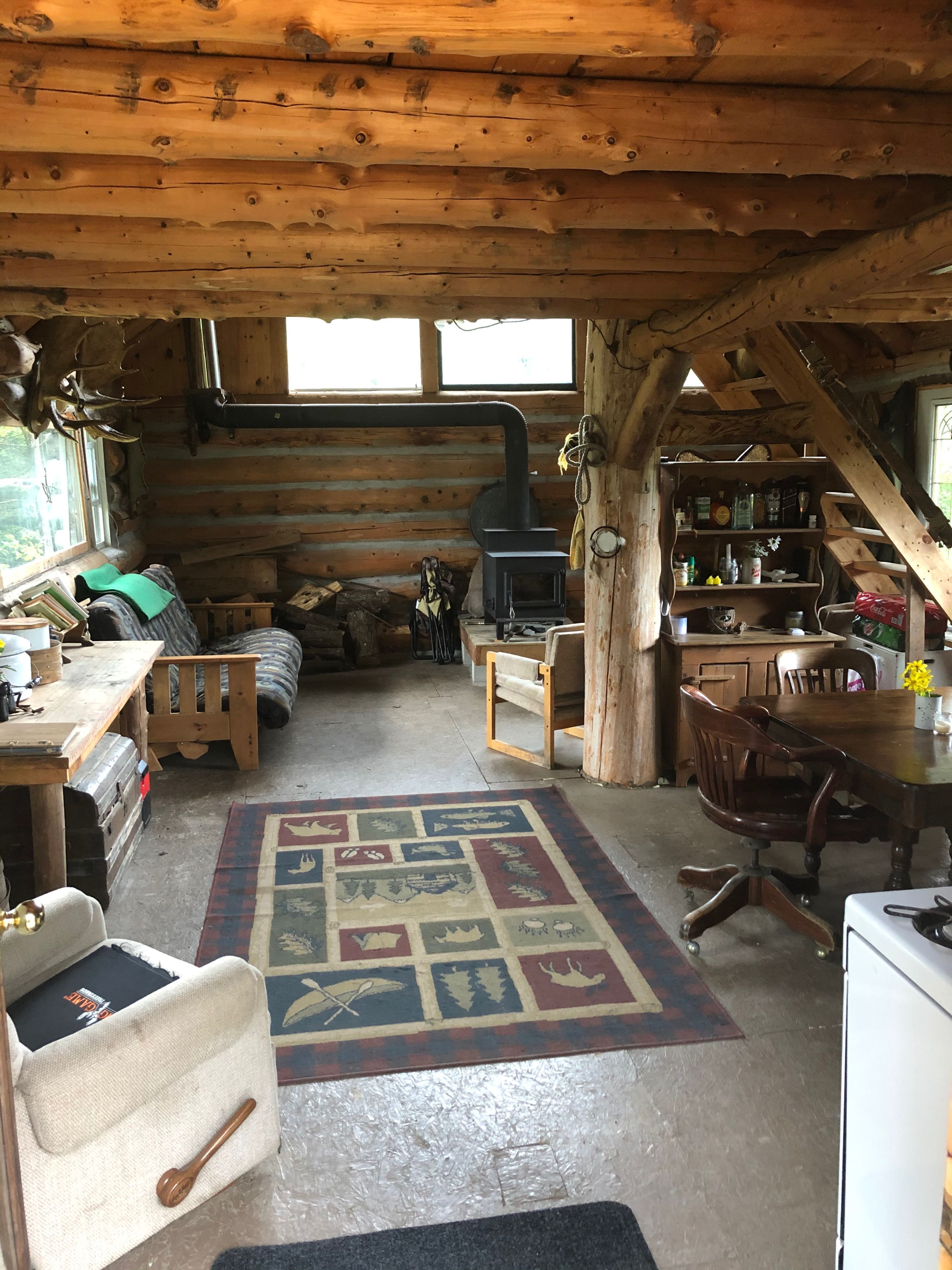 • Charming log A-Frame cabin with river views, great for a getaway.