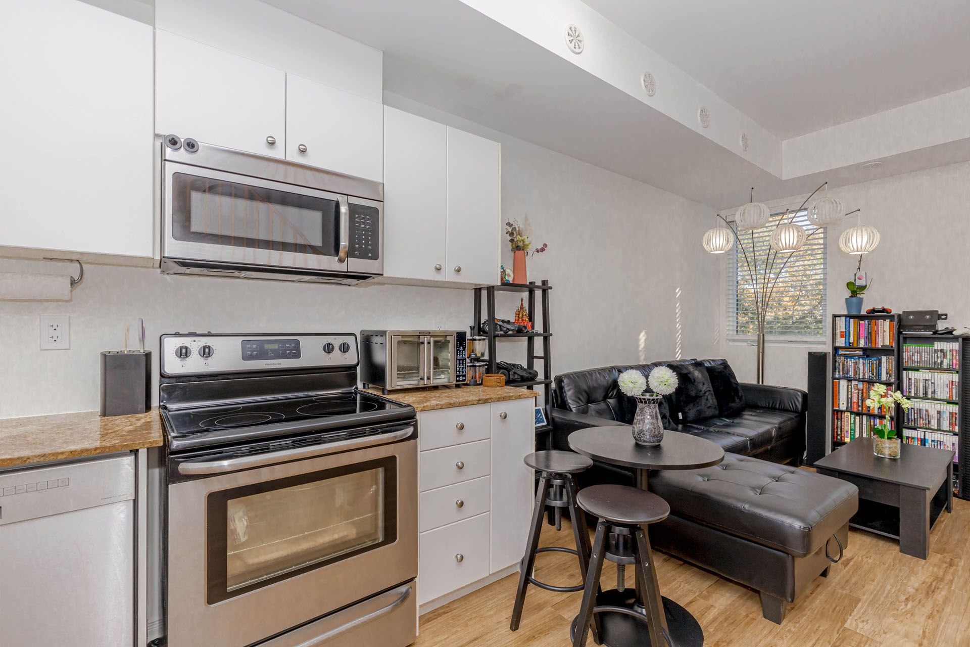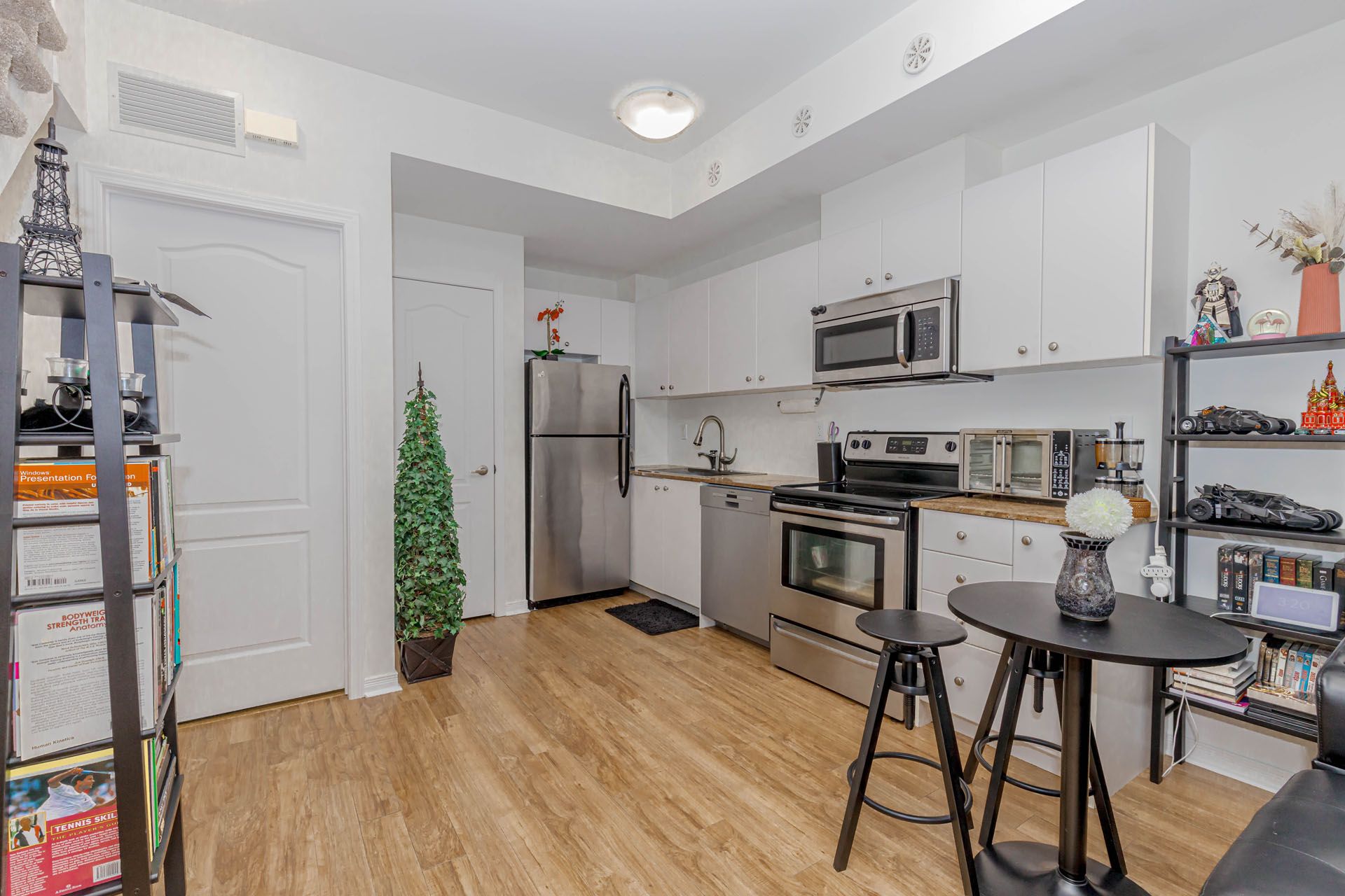 Welcome to 68 winston park! This sun-filled stacked townhouse is conveniently located close to the 401, wilson subway station, yorkdale shopping center, costco and more. The highlight of the property is its private, south-facing roof terrace (over 200 square feet), which offers panoramic, uninterrupted views including the cn tower and a gas barbecue hookup, making it the perfect spot for entertaining or relaxing. This bright, open concept layout is perfect for young professionals or couples who want all the conveniences of city life with easy access to downtown. This 1+1 bedroom suite has a large living/dining area, spacious enclosed office/den for working from home or used as a secondbedroom if needed.