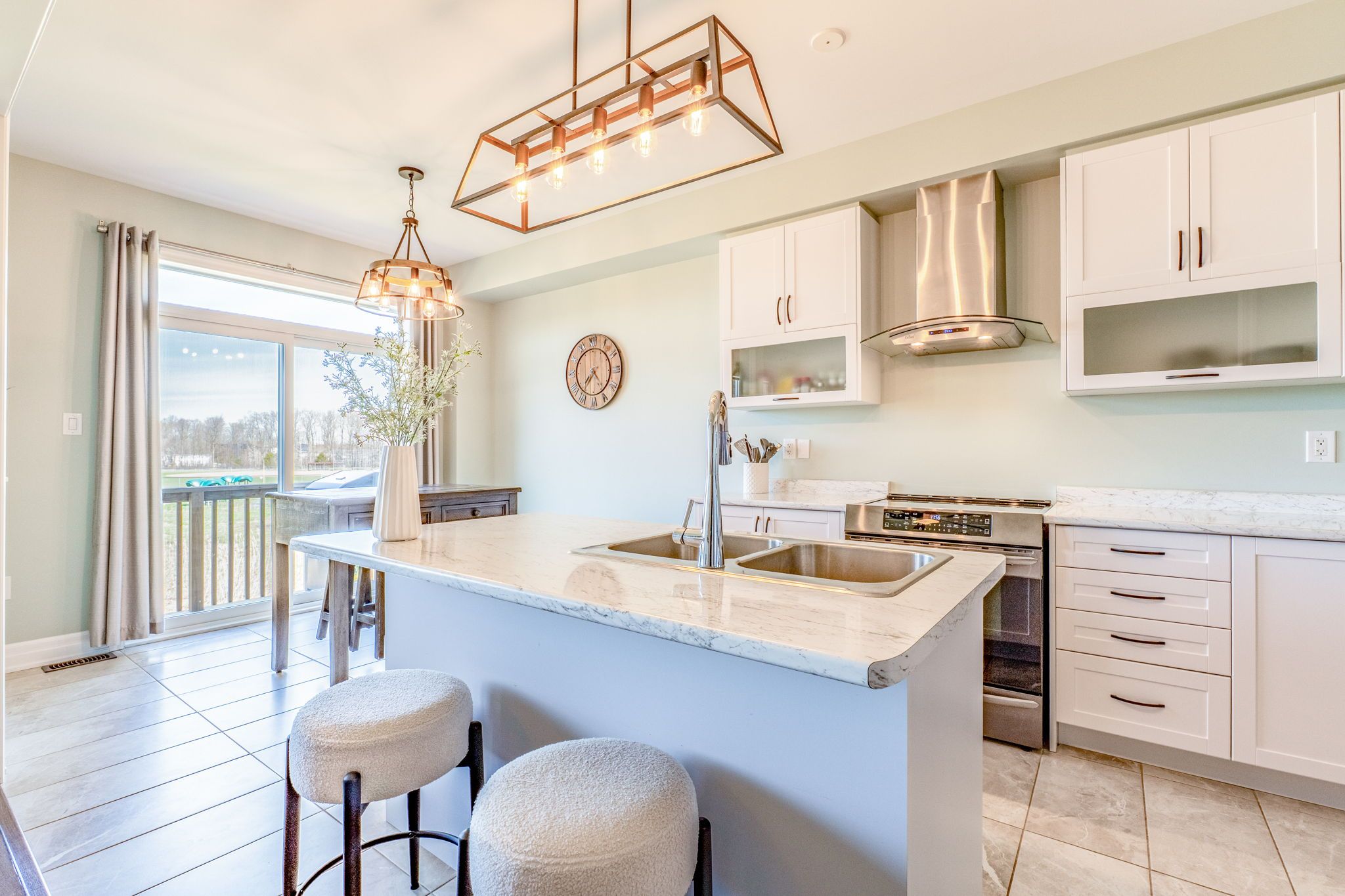 • Bright kitchen with modern appliances and a breakfast area leading to a deck.