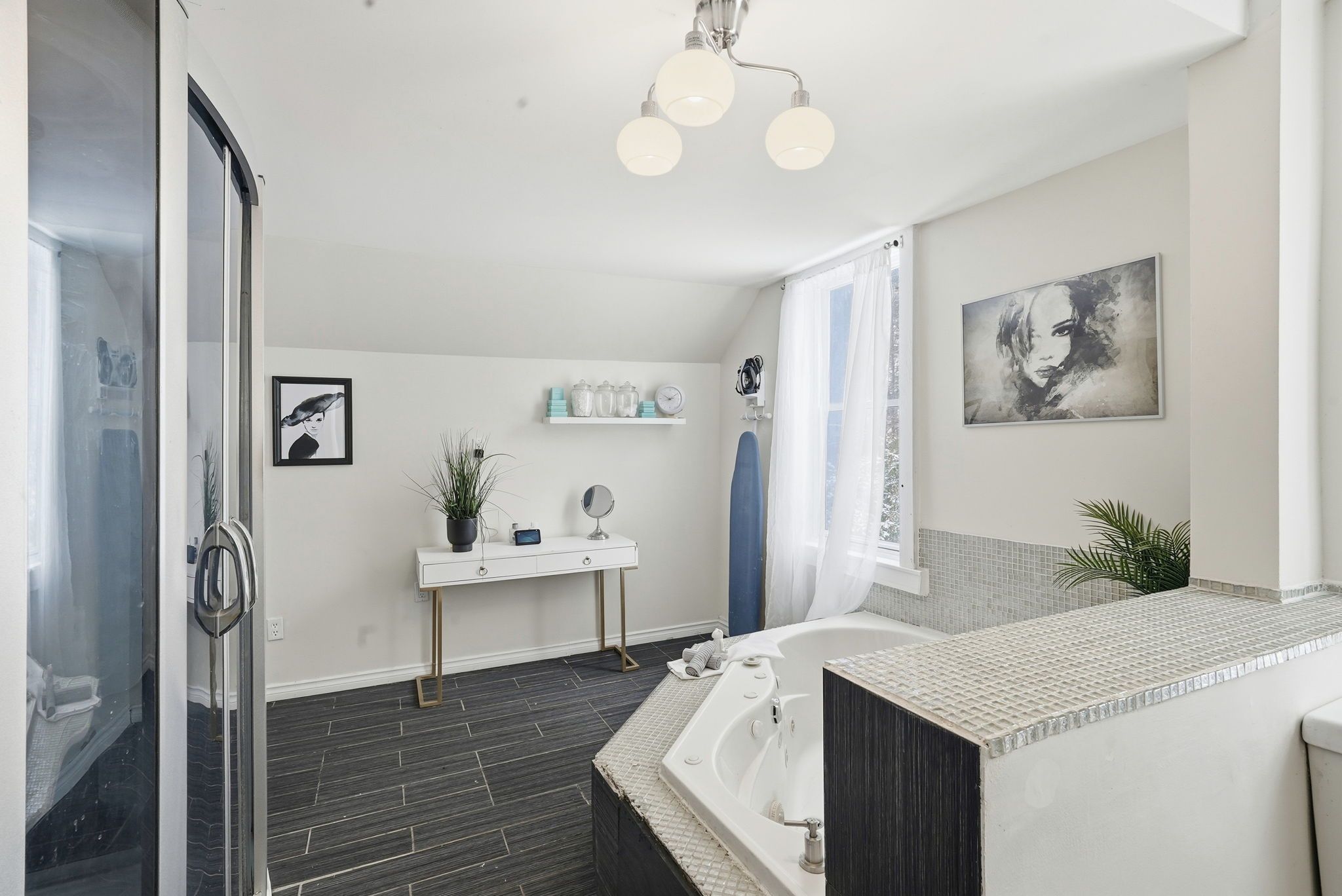 Beautifully updated home with secondary suite nestled on a quiet residential street on owen sound's desirable west side, this beautifully updated storey & a half home offers the perfect blend of city convenience & peaceful nature-infused living. Just a short walk to shopping, & west-side amenities, the property features a spacious two-bedroom primary home plus a large secondary suite-ideal for families, multigenerational living, or offsetting housing costs with reliable rental income. Stepping outside, you'll fall in love with the extra-deep ravine lot, lined with mature trees for exceptional privacy. The backyard feels like a country retreat, complete with established gardens, a tranquil pond, & a covered back deck perfect for year-round enjoyment. Inside the primary living space, the modern, fully updated kitchen shines with new countertops, tiled backsplash, & added counter space, with stylish finishes (2024/25). The bright living room, spacious dining room with walkout to the deck, and secondary bedroom have all been freshly painted and thoughtfully refreshed. A handy main-floor powder room adds convenience. Upstairs, the luxurious 5-piece bathroom offers double sinks, a stand-alone shower, and a jetted corner tub. The primary bedroom is bright and generous, featuring a walk-in closet. The basement includes a fully insulated bonus room, with additional insulation throughout (2023) enhancing energy efficiency. The secondary suite provides exceptional flexibility, featuring a large kitchen, spacious bedroom, four-piece bathroom, and cozy den-perfect for tenants, in-laws, or extended family. Significant updates include a new roof (2017), new furnace (2023), new hot water heater (2018), and energy-efficient appliances, offering comfort and peace of mind. This welcoming, move-in-ready home combines modern upgrades with the charm of a private, nature-rich property-an exceptional find on owen sound's west side.