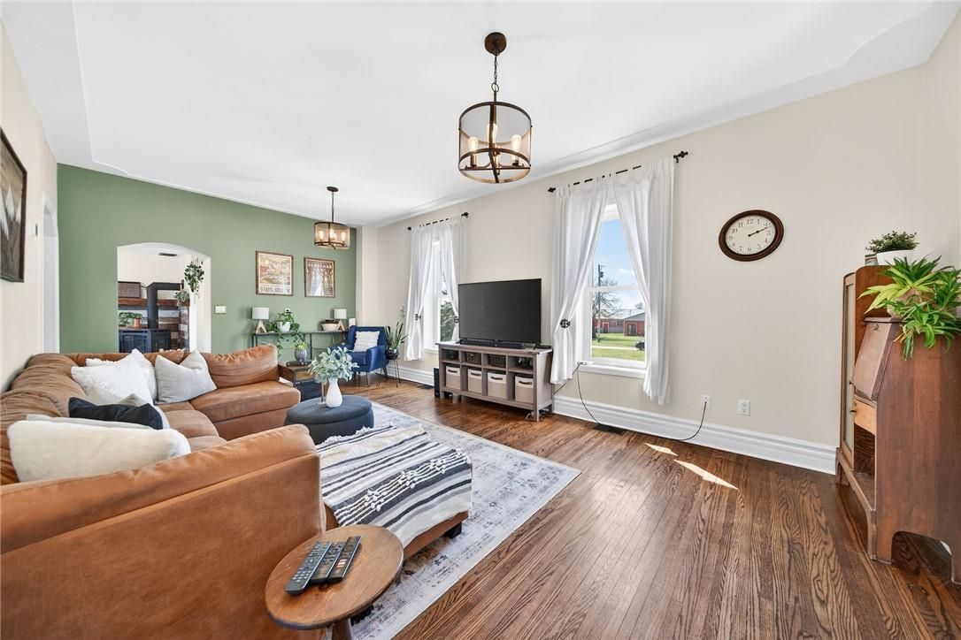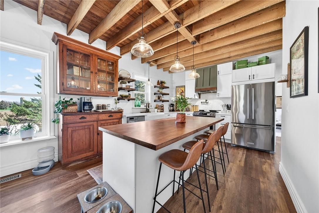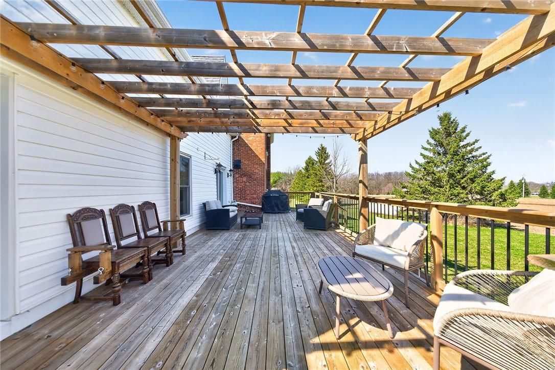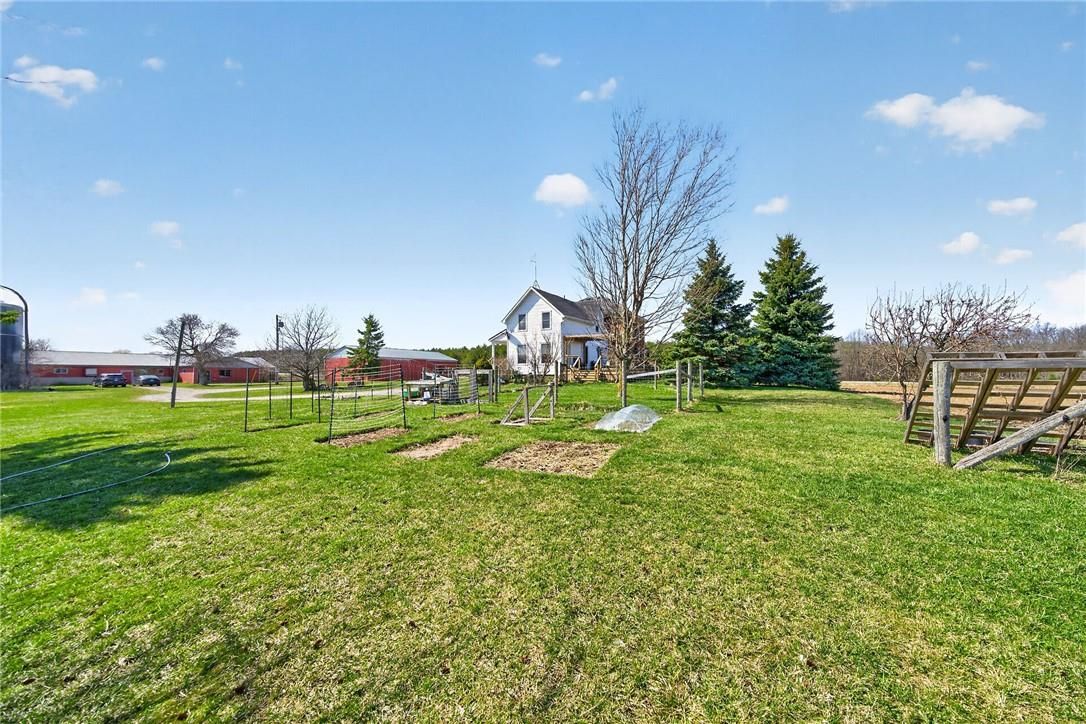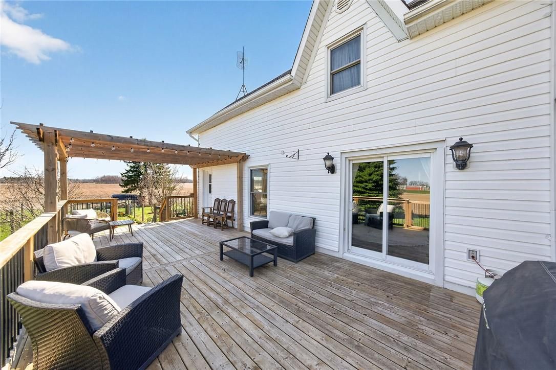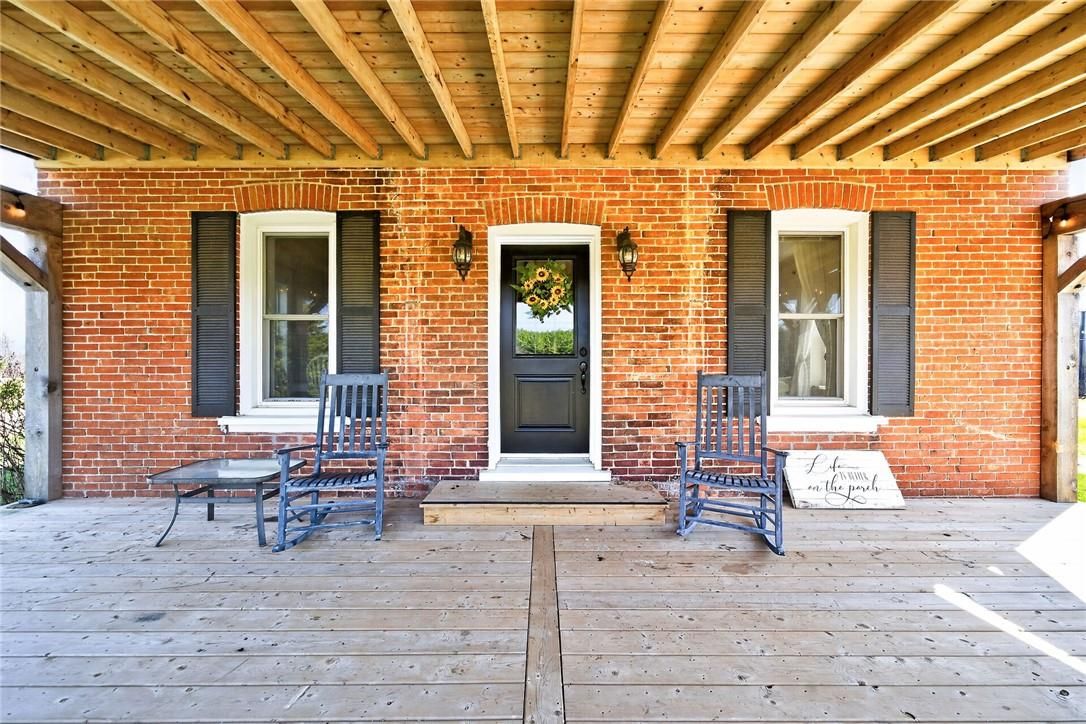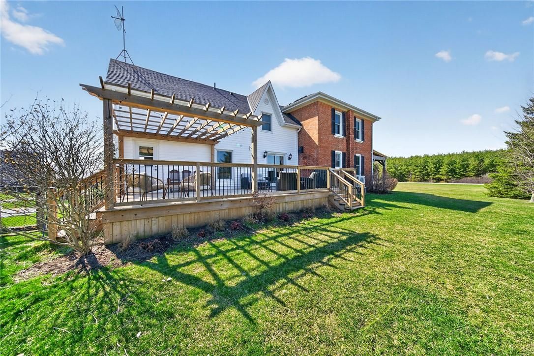 Character & charm resonate throughout this exquisitely updated 4 bedroom, 3 bathroom - circa 1895 brick century home perfectly positioned well back from the road on desired 188' x 425' lot. Incredible curb appeal with front covered porch, brick exterior, covered side porch, & extensive side deck with pergola for entertaining. The beautifully presented interior showcases a traditional, yet flowing layout and close to 2500 sq ft of distinguished living space highlighted by period specific trim, hardwood floors, chef inspired custom kitchen with granite counters, backsplash, & custom island with gorgeous exposed wood beam ceiling, dining area, living room with hardwood, family room with fireplace, rec room / office area, 2 pc bathroom, mf laundry, & welcoming foyer. The upper level features 4 pc main bathroom, and 4 bedrooms including luxurious primary bedroom with fireplace, walk in closet, & spa inspired ensuite with soaker tub & walk in shower. The unfinished basement provides ample storage and houses the mechanicals. Updates include windows - 15, wiring, insulation, flooring, kitchen cabinetry, decor, new decks & landscaping - 20, lighting, fixtures, & more. Conveniently located minutes to hagersville, caledonia, & cayuga. Complete with chicken coop, raised garden beds, & shed for your own "mini farm" if desired. Ideal family home or for multi generational set up. Experience hagersville country living at its finest!