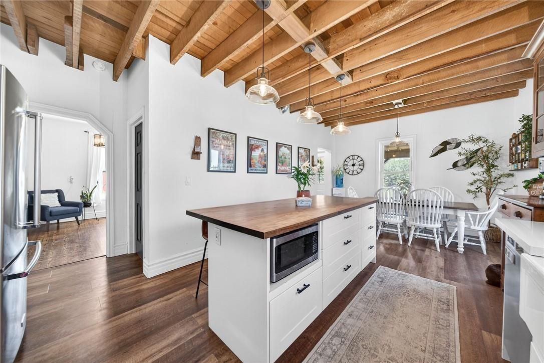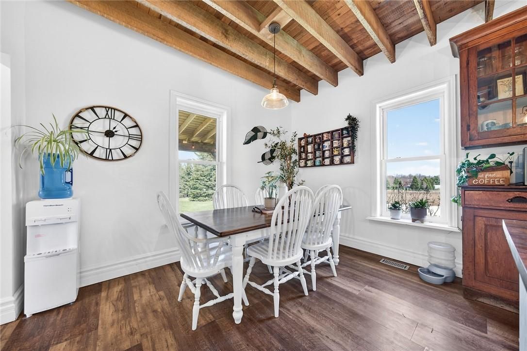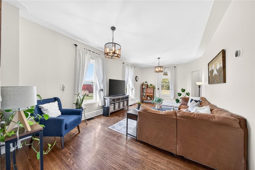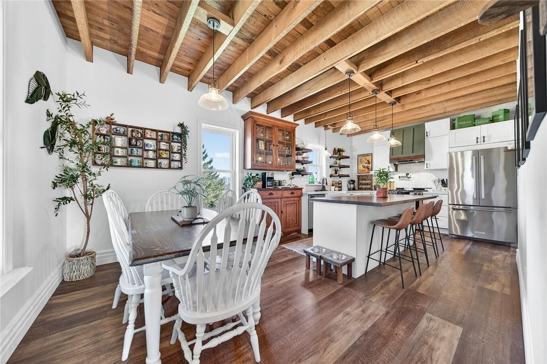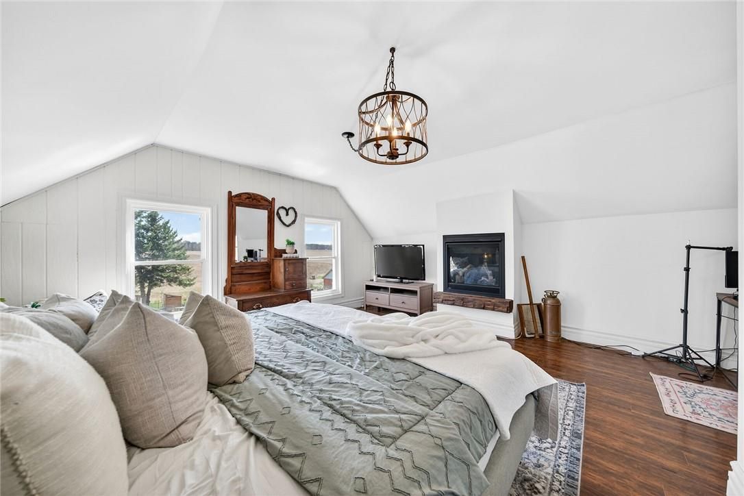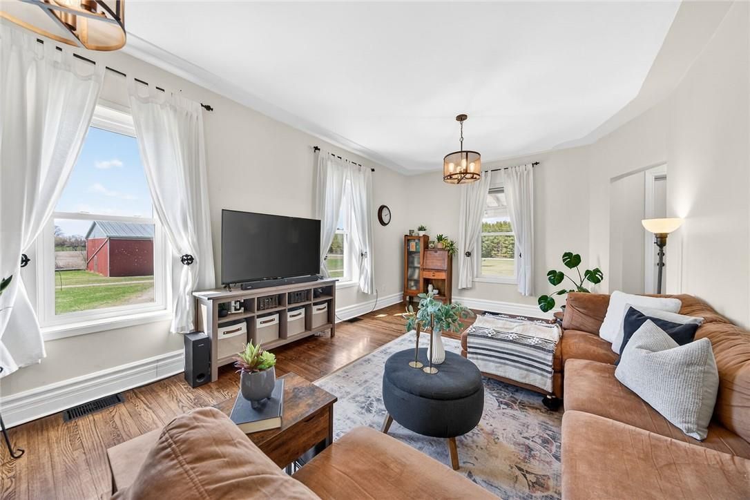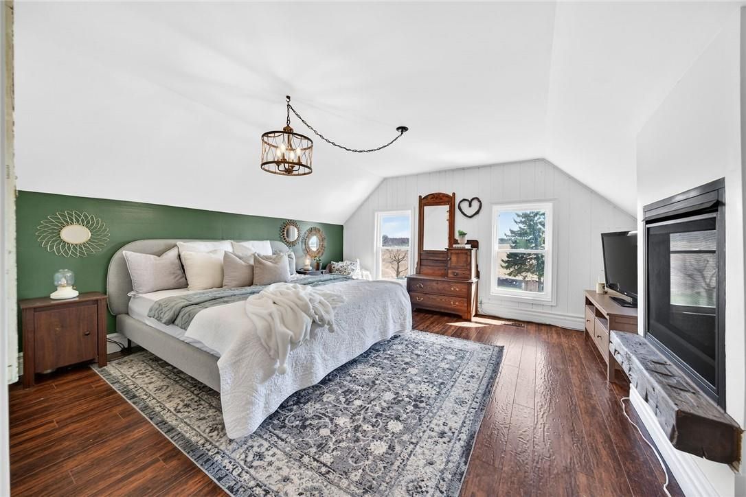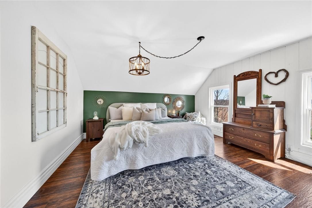 Character & charm resonate throughout this exquisitely updated 4 bedroom, 3 bathroom - circa 1895 brick century home perfectly positioned well back from the road on desired 188' x 425' lot. Incredible curb appeal with front covered porch, brick exterior, covered side porch, & extensive side deck with pergola for entertaining. The beautifully presented interior showcases a traditional, yet flowing layout and close to 2500 sq ft of distinguished living space highlighted by period specific trim, hardwood floors, chef inspired custom kitchen with granite counters, backsplash, & custom island with gorgeous exposed wood beam ceiling, dining area, living room with hardwood, family room with fireplace, rec room / office area, 2 pc bathroom, mf laundry, & welcoming foyer. The upper level features 4 pc main bathroom, and 4 bedrooms including luxurious primary bedroom with fireplace, walk in closet, & spa inspired ensuite with soaker tub & walk in shower. The unfinished basement provides ample storage and houses the mechanicals. Updates include windows - 15, wiring, insulation, flooring, kitchen cabinetry, decor, new decks & landscaping - 20, lighting, fixtures, & more. Conveniently located minutes to hagersville, caledonia, & cayuga. Complete with chicken coop, raised garden beds, & shed for your own "mini farm" if desired. Ideal family home or for multi generational set up. Experience hagersville country living at its finest!