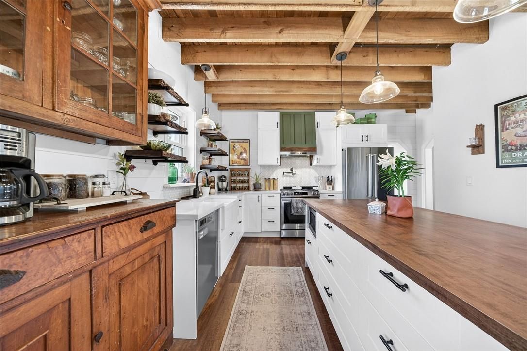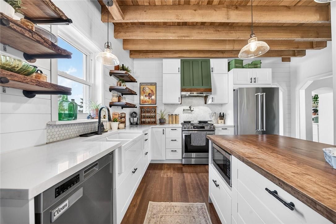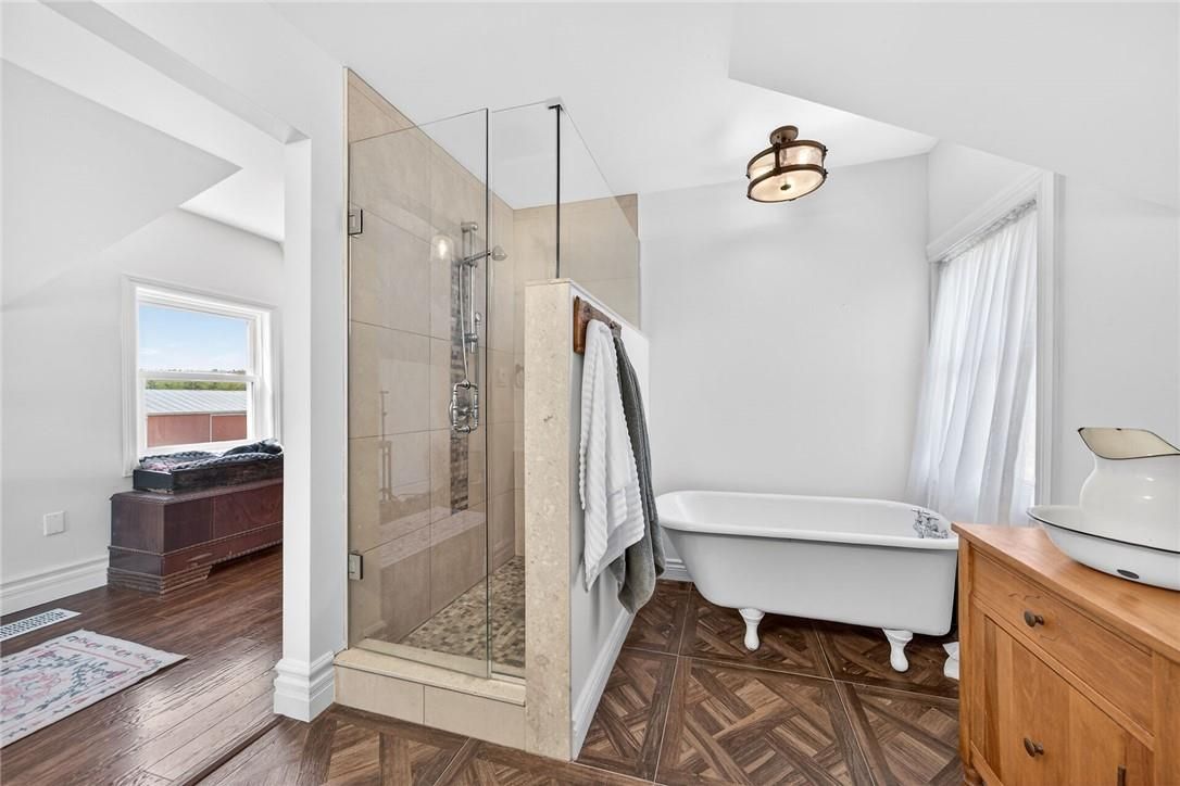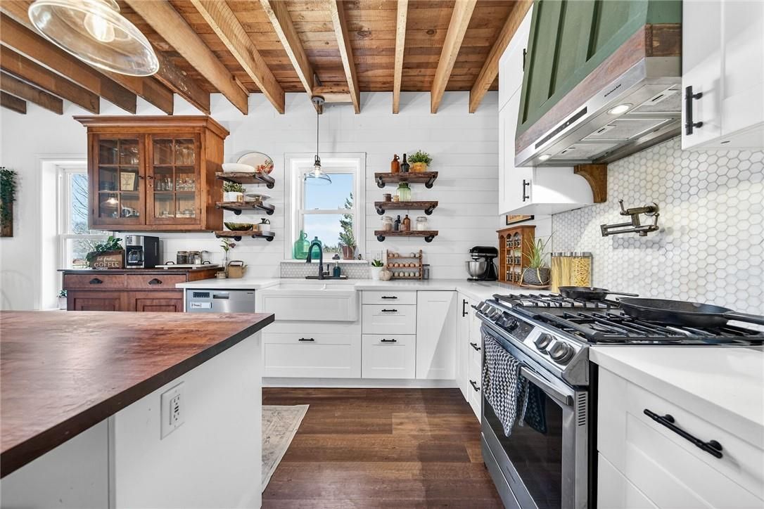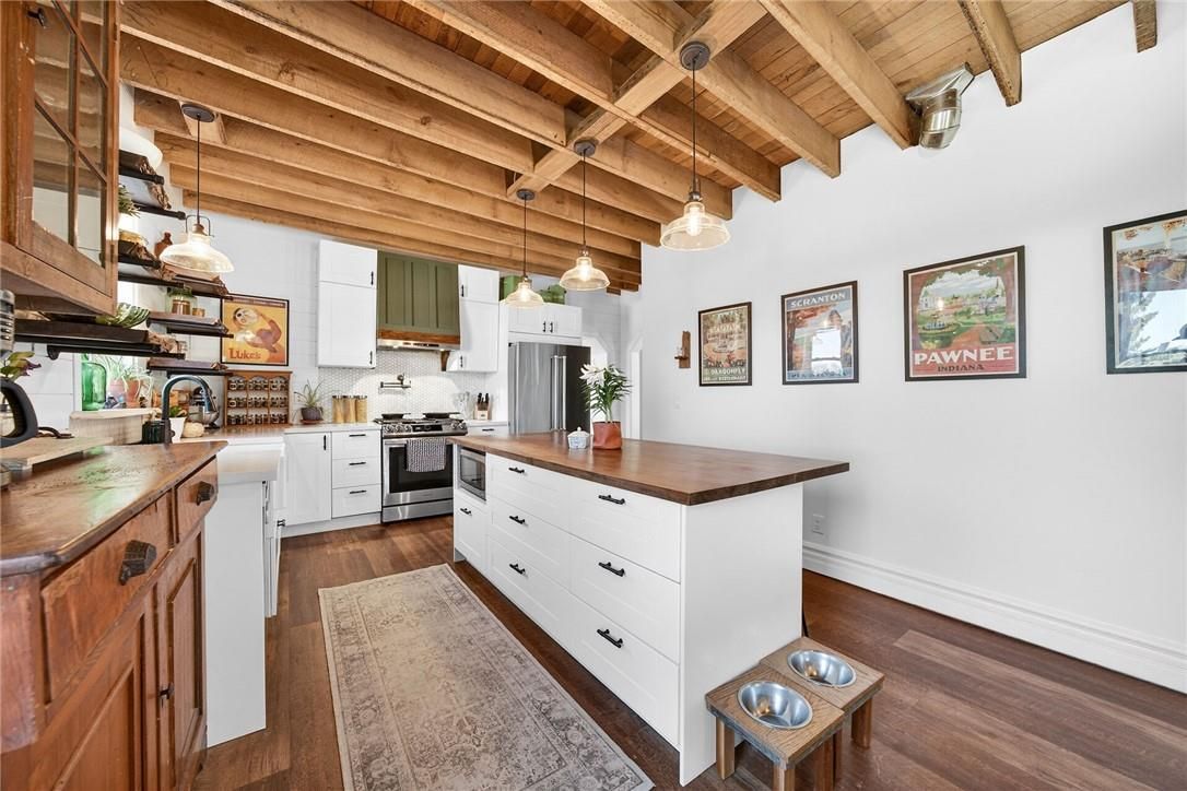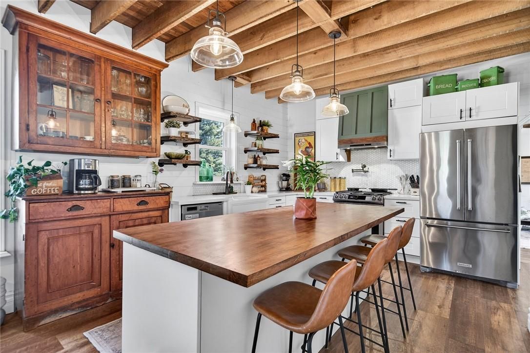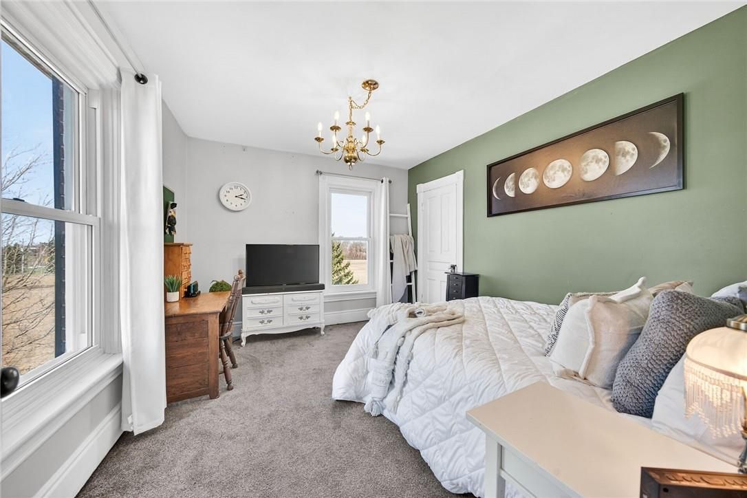 Character & charm resonate throughout this exquisitely updated 4 bedroom, 3 bathroom - circa 1895 brick century home perfectly positioned well back from the road on desired 188' x 425' lot. Incredible curb appeal with front covered porch, brick exterior, covered side porch, & extensive side deck with pergola for entertaining. The beautifully presented interior showcases a traditional, yet flowing layout and close to 2500 sq ft of distinguished living space highlighted by period specific trim, hardwood floors, chef inspired custom kitchen with granite counters, backsplash, & custom island with gorgeous exposed wood beam ceiling, dining area, living room with hardwood, family room with fireplace, rec room / office area, 2 pc bathroom, mf laundry, & welcoming foyer. The upper level features 4 pc main bathroom, and 4 bedrooms including luxurious primary bedroom with fireplace, walk in closet, & spa inspired ensuite with soaker tub & walk in shower. The unfinished basement provides ample storage and houses the mechanicals. Updates include windows - 15, wiring, insulation, flooring, kitchen cabinetry, decor, new decks & landscaping - 20, lighting, fixtures, & more. Conveniently located minutes to hagersville, caledonia, & cayuga. Complete with chicken coop, raised garden beds, & shed for your own "mini farm" if desired. Ideal family home or for multi generational set up. Experience hagersville country living at its finest!