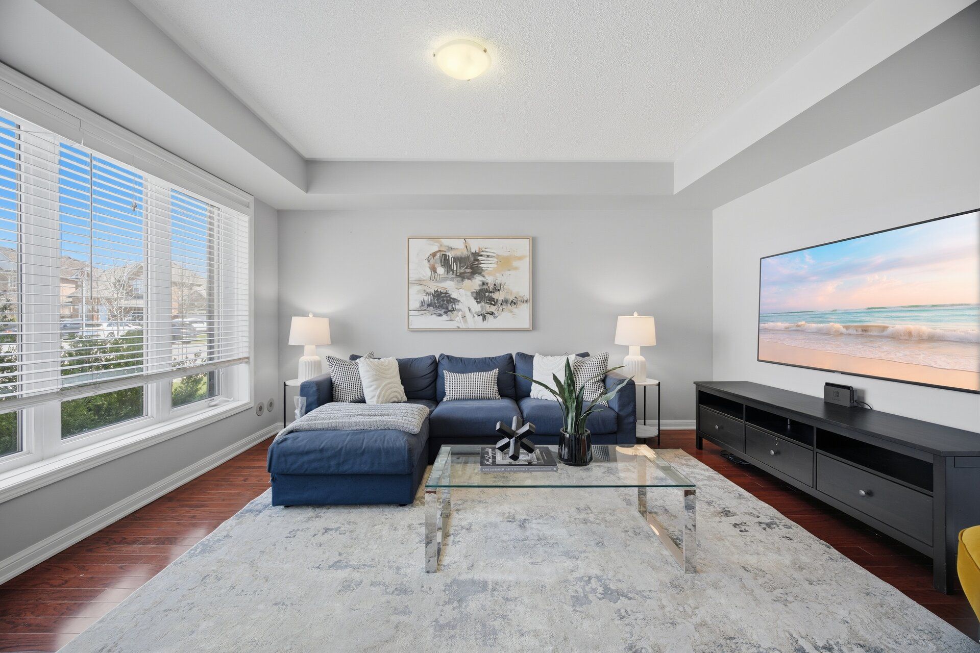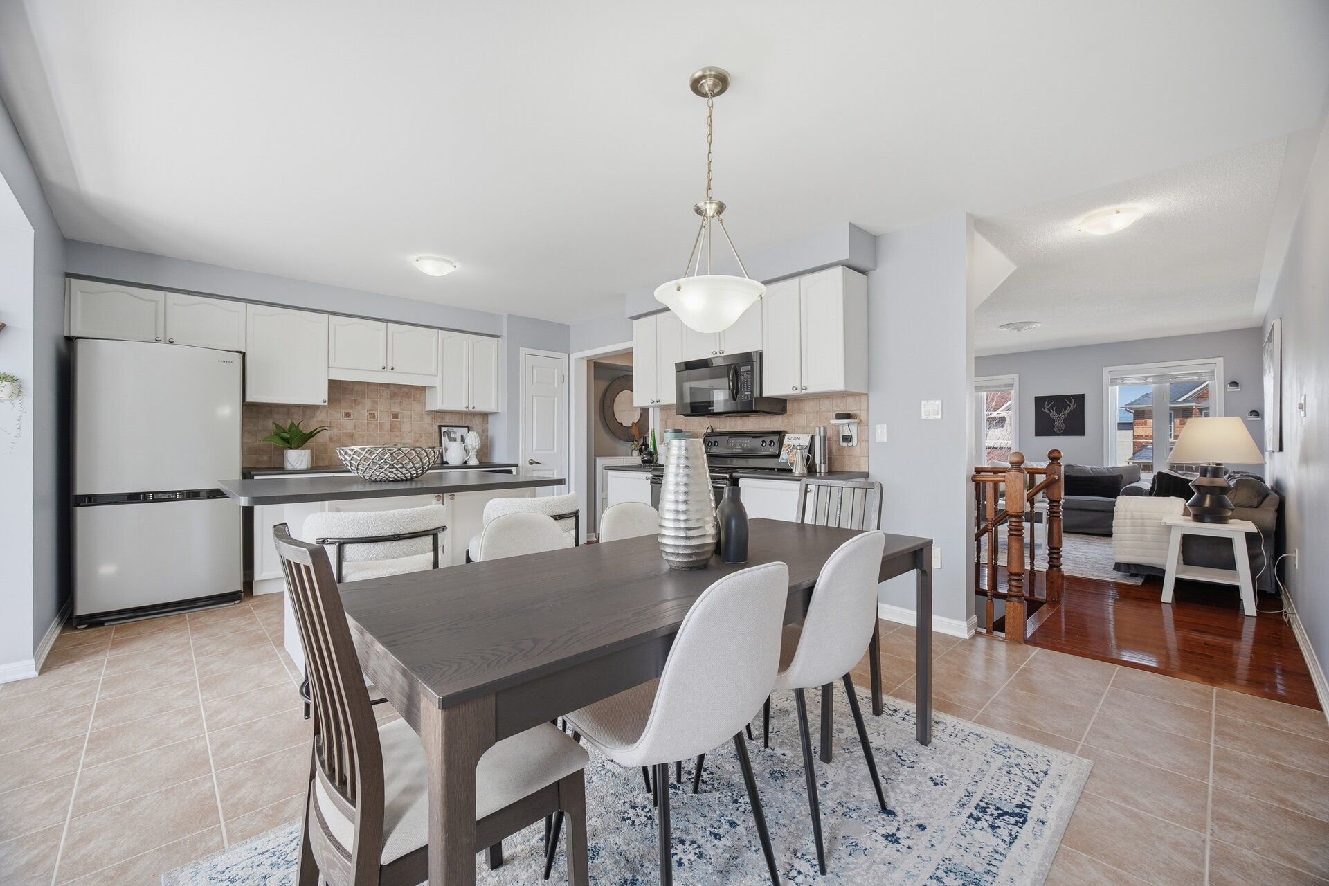 • Spacious open-concept living and dining area with natural light.