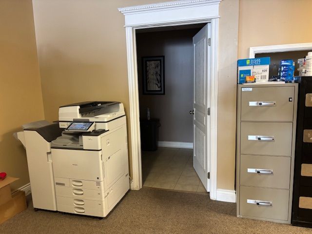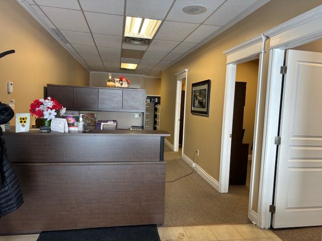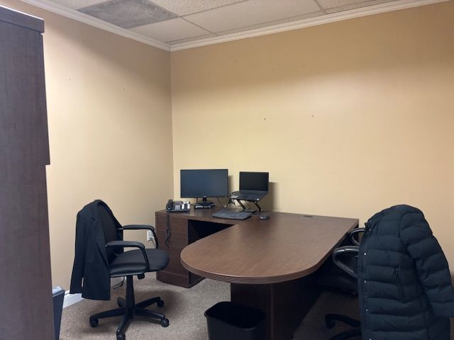 • Features a waiting area, reception, 3 offices, and storage.