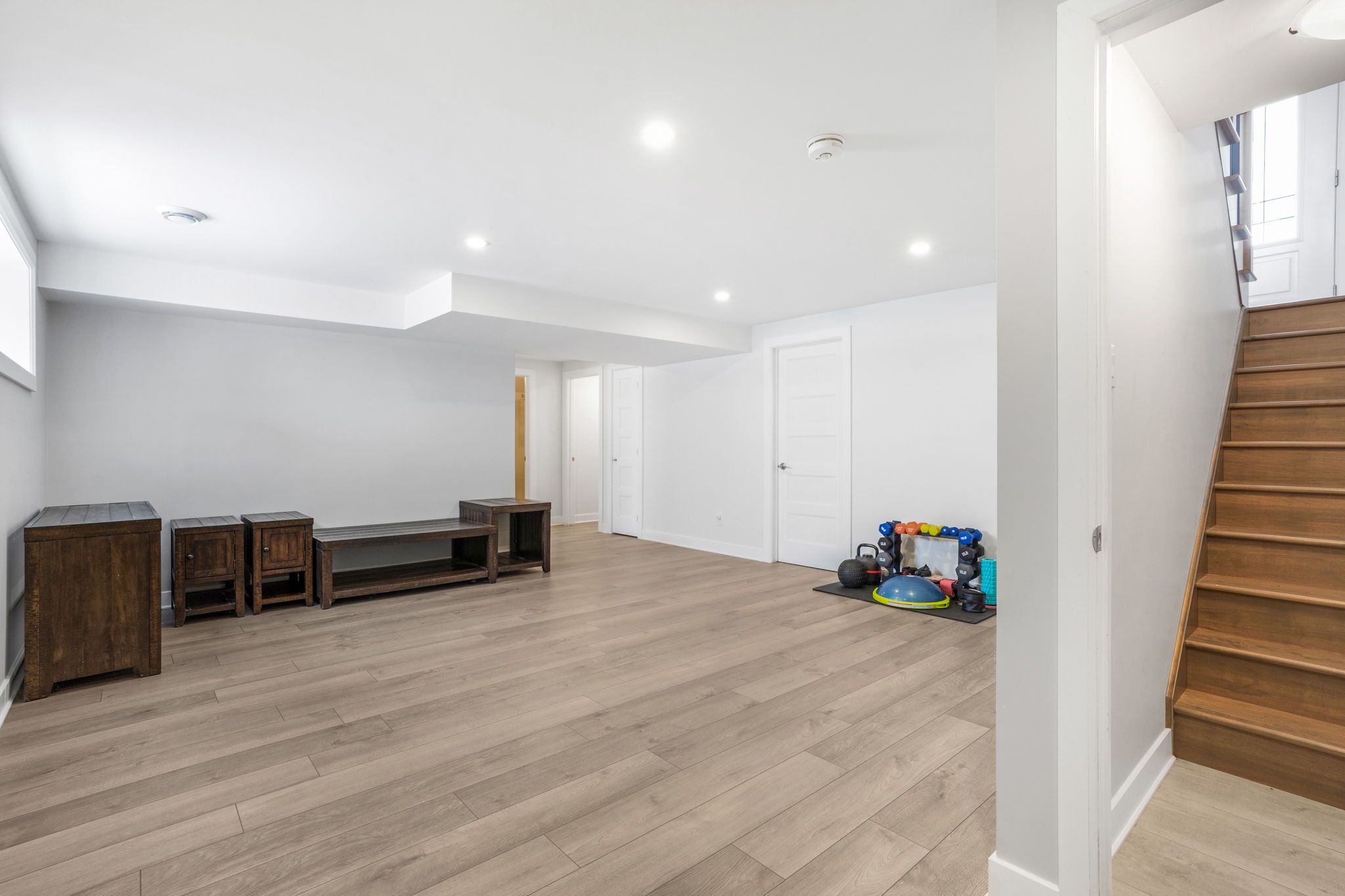 • Finished basement adds space with extra bedrooms and family room.