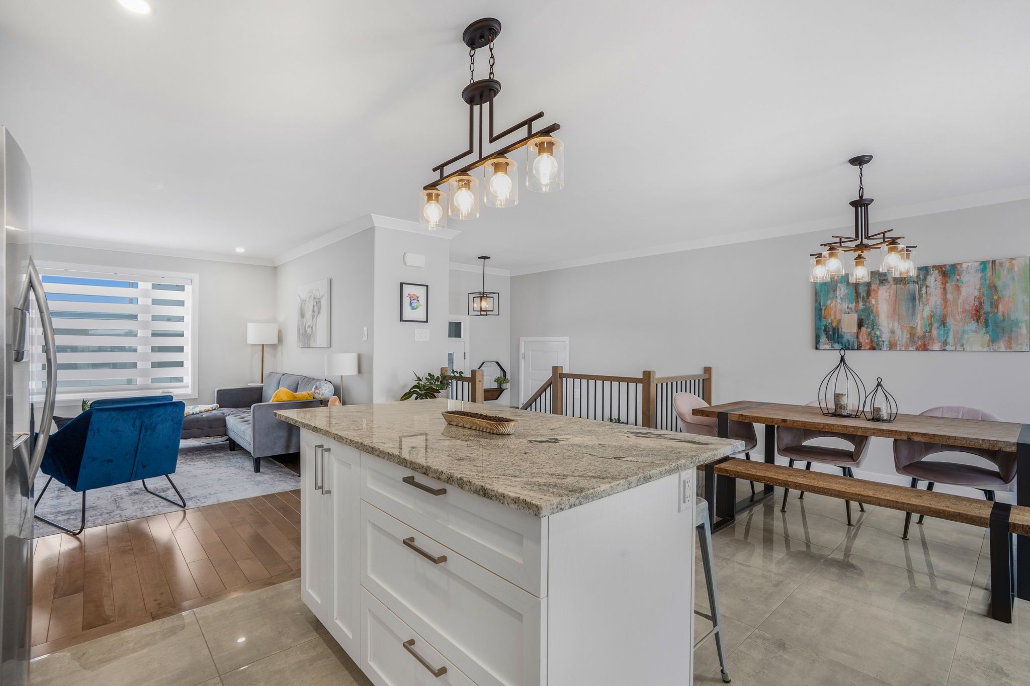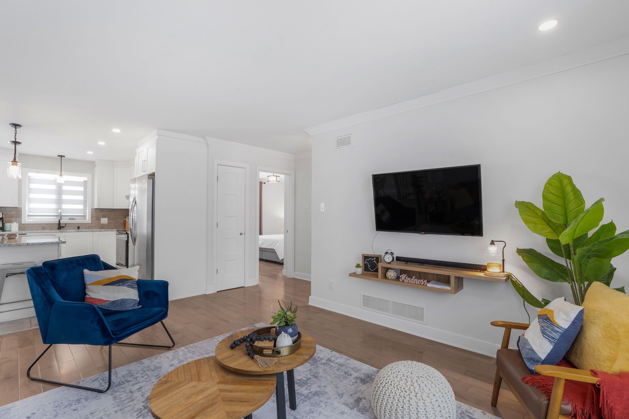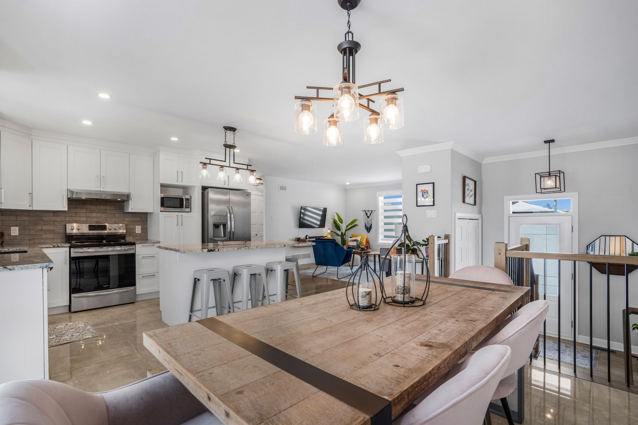 • Bright open-concept living area with modern kitchen and included appliances.