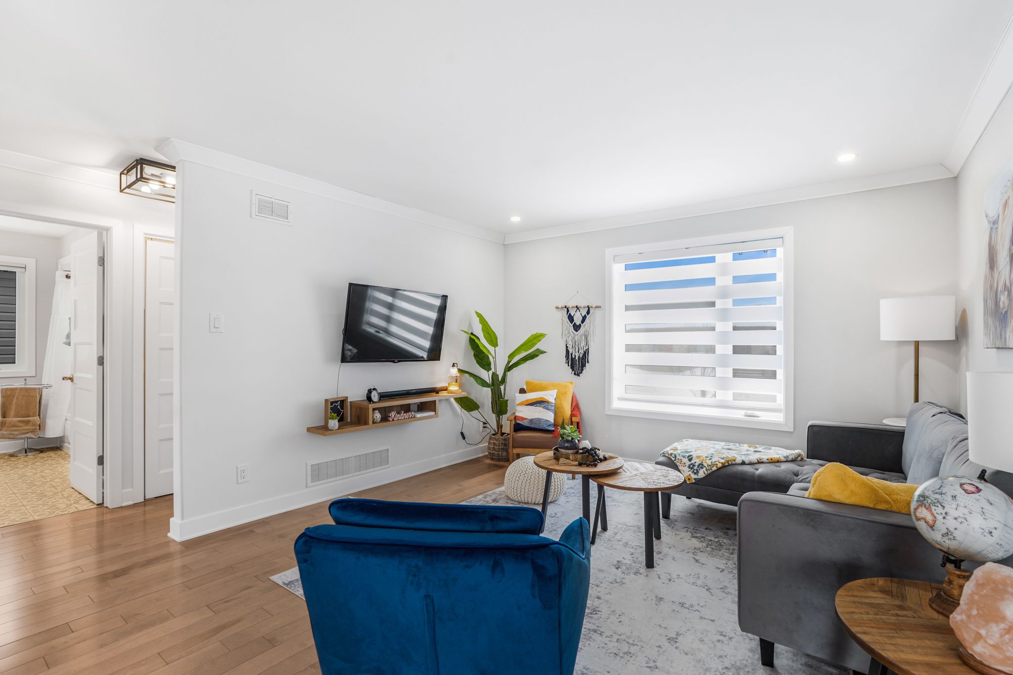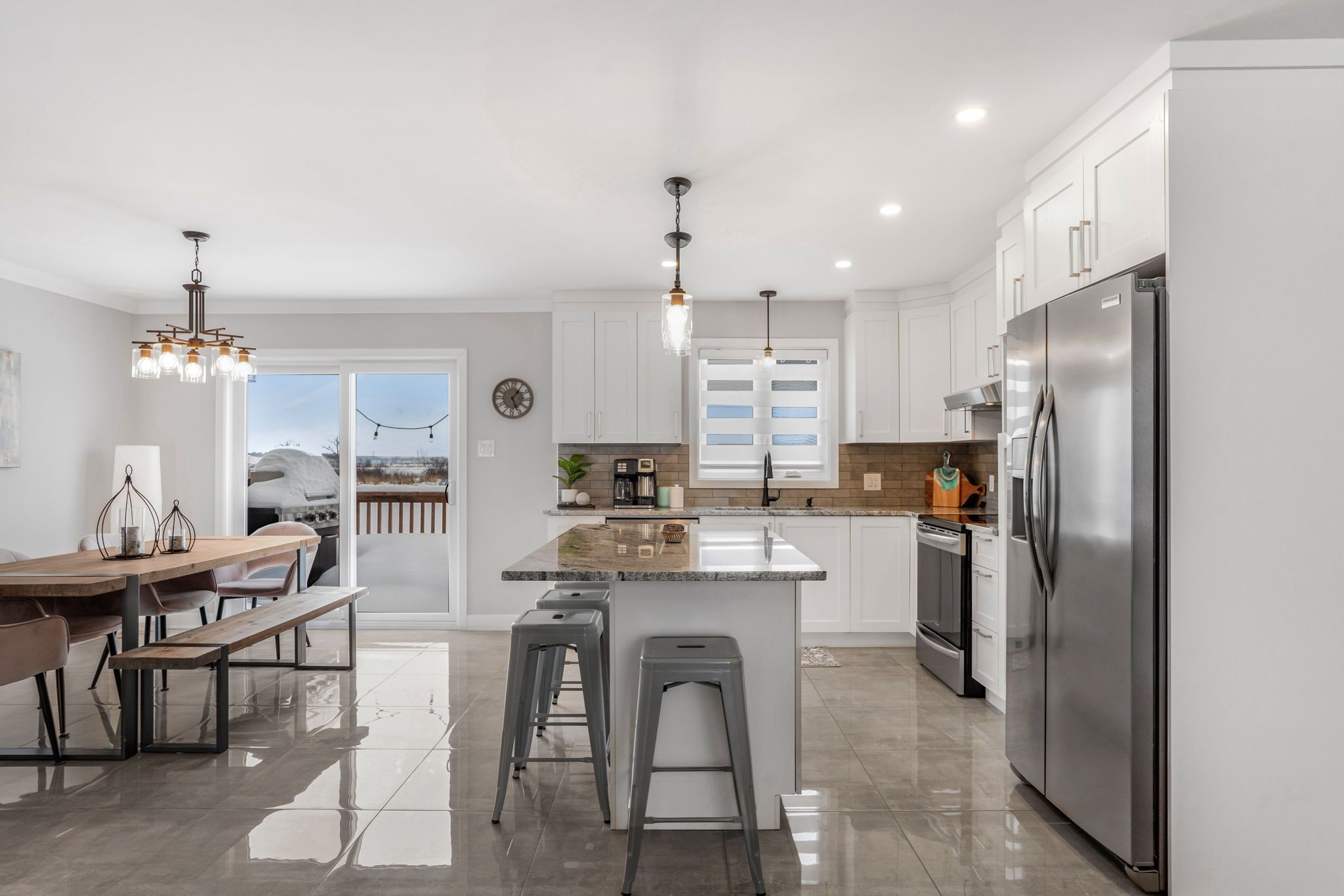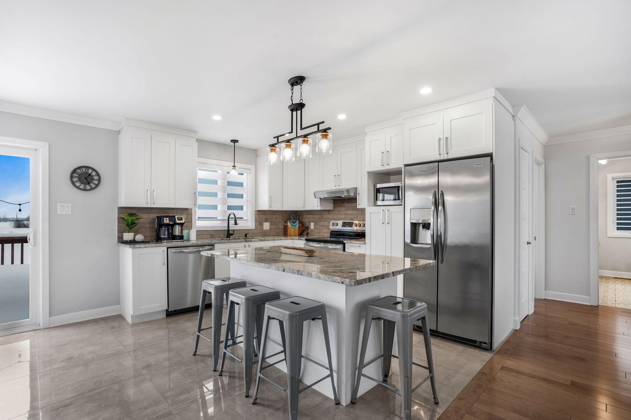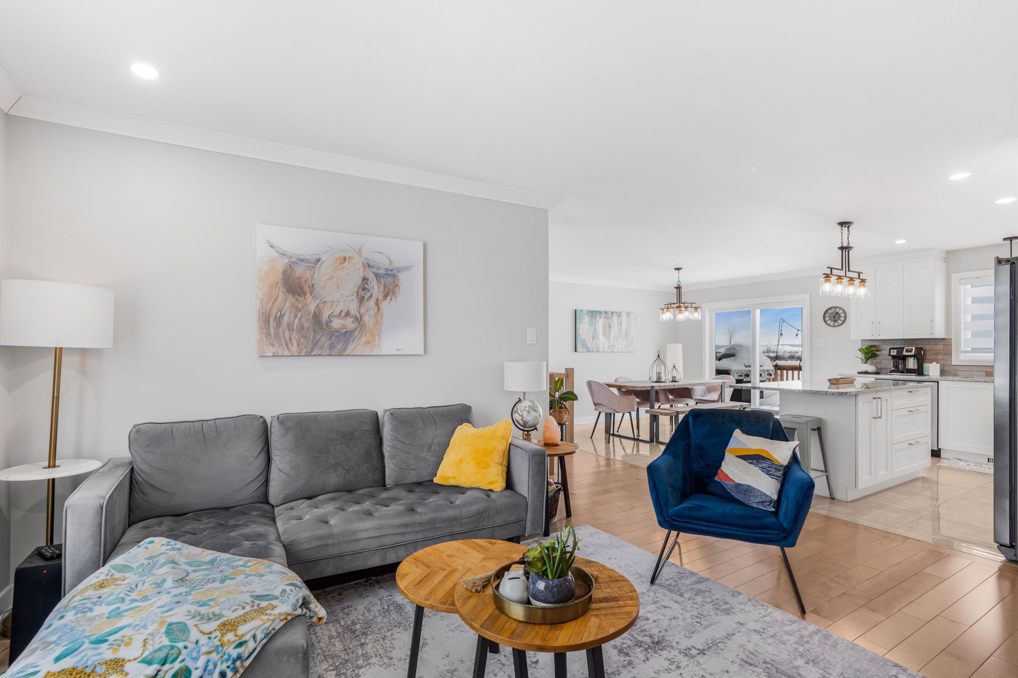 • Bright open-concept living area with modern kitchen and included appliances.