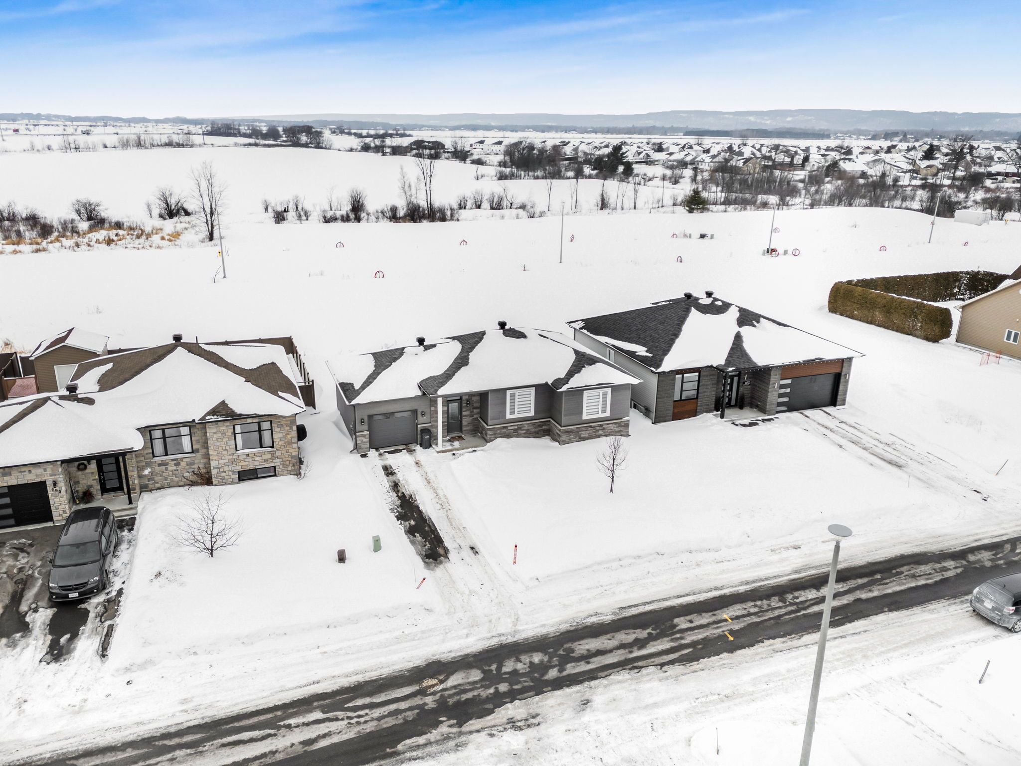 Welcome to this beautifully maintained 2019-built bungalow located in the highly desirable domain henri neighborhood of hawkesbury. Nestled on a quiet crescent with no through traffic, this family-friendly home is ideally situated near a municipal park and high school. The main floor features a bright open-concept living area enhanced by elegant crown molding and a modern kitchen with included appliances. Two spacious bedrooms and a full bathroom are conveniently located on the main level, along with main-floor laundry for everyday practicality. The fully finished basement expands your living space with a large family room, a second full bathroom, and two additional bedrooms, making it perfect for a growing family, guests, or a home office setup. Additional features include an attached, insulated garage, paved driveway, and a peaceful setting in a dead-end crescent, offering both comfort and privacy. A move-in-ready home in a sought-after neighborhood-this one is not to be missed.