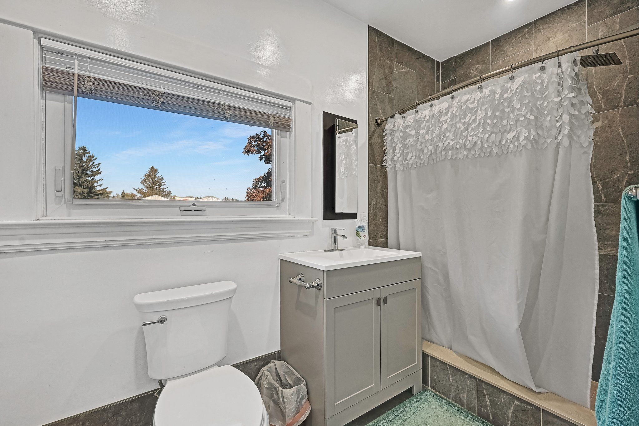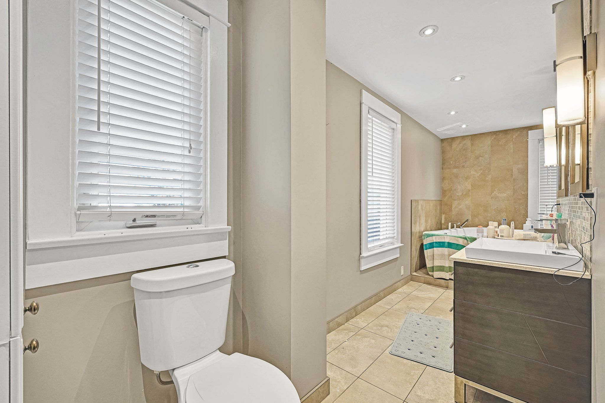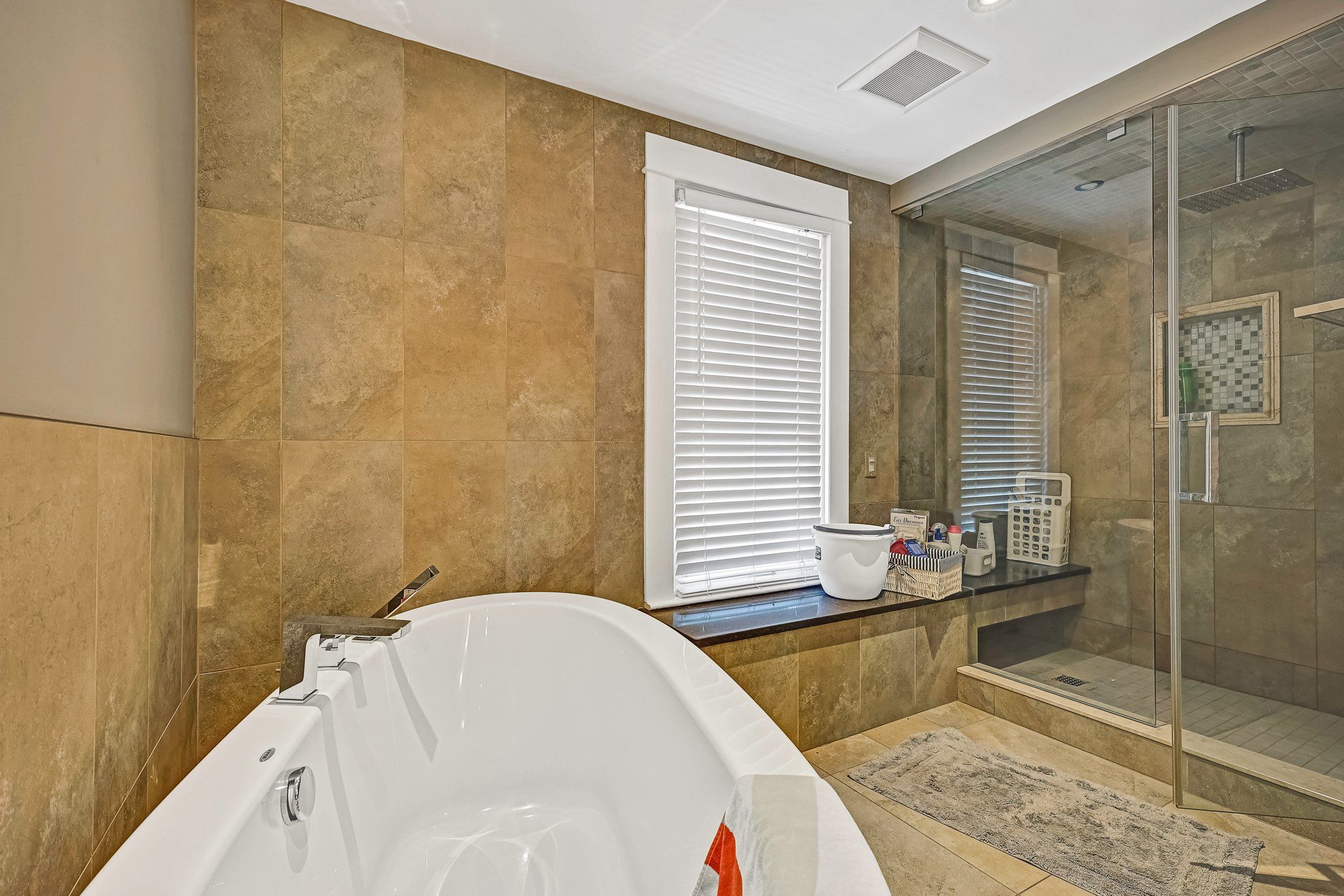 • Luxurious upstairs bathroom with deep soak tub and generous shower.