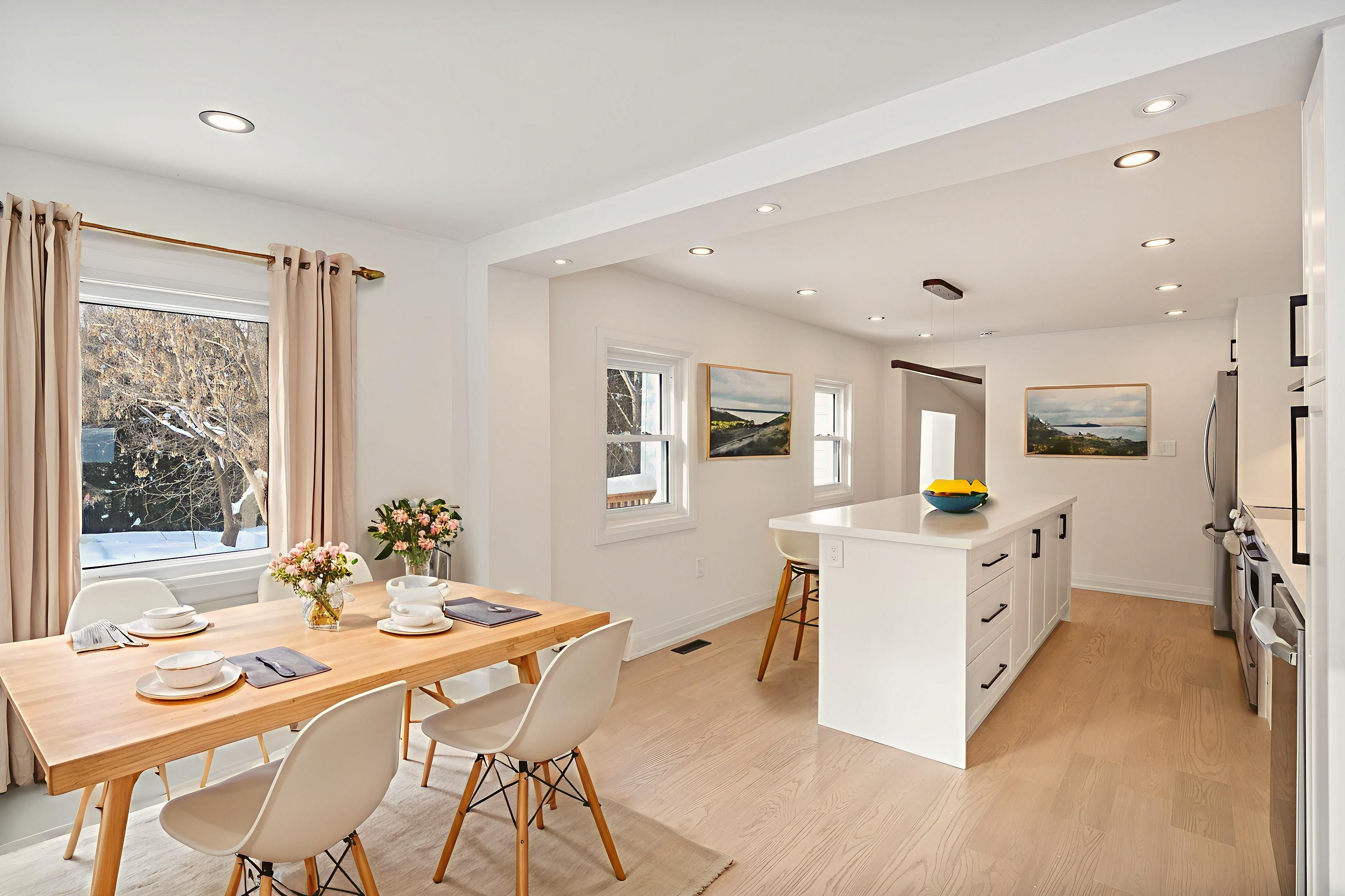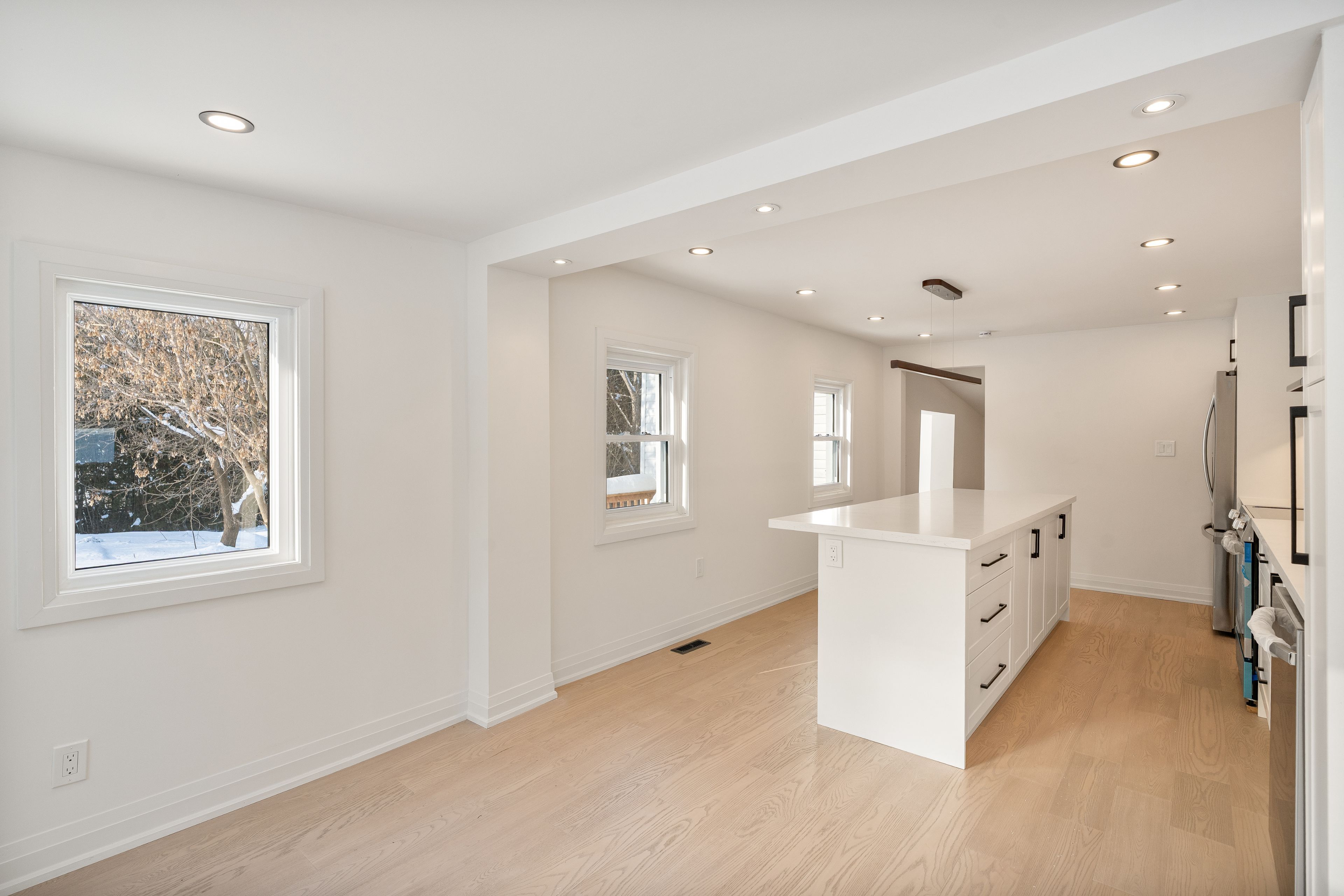 • Open concept kitchen with island for easy meal prep and gatherings.