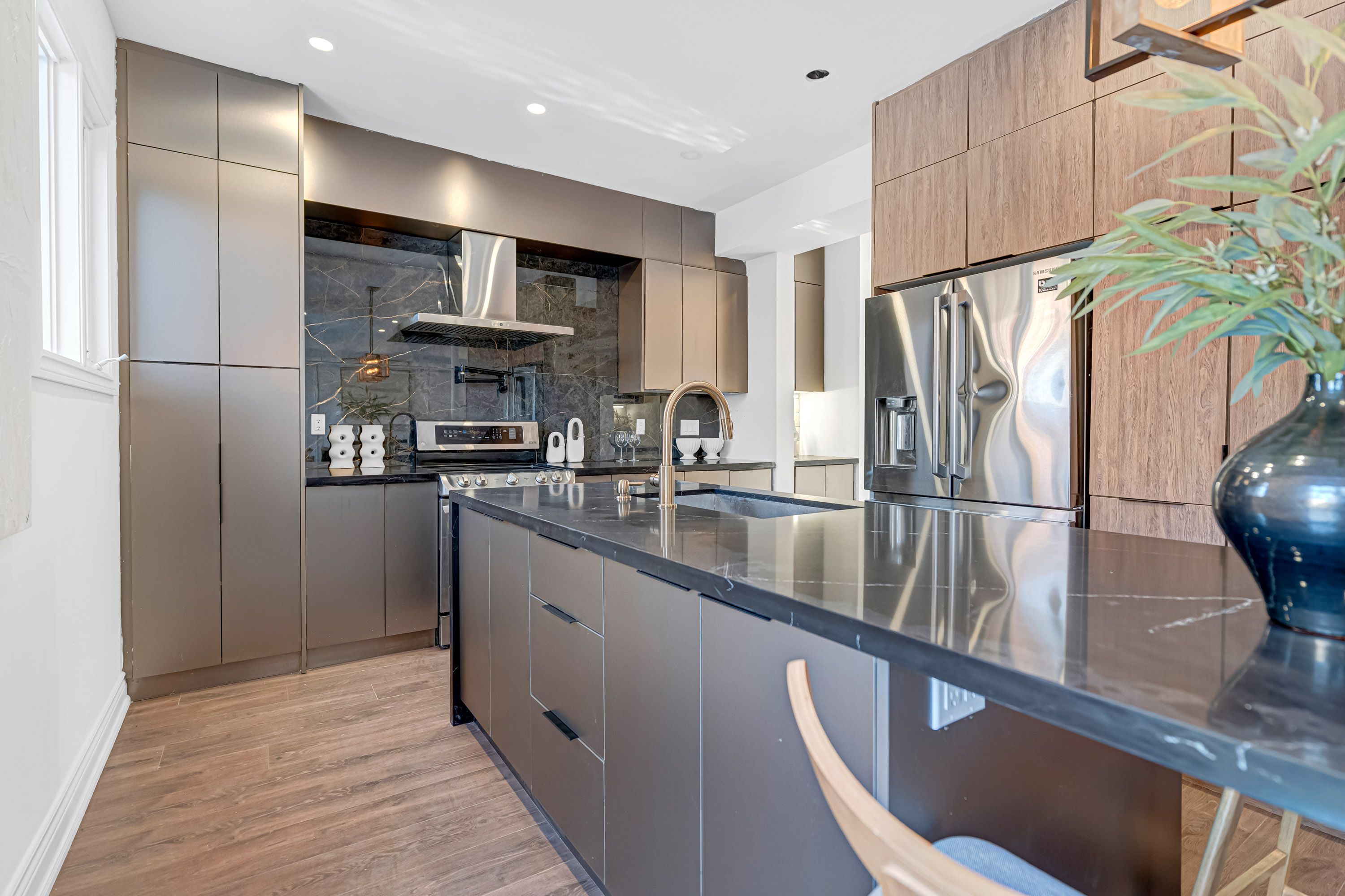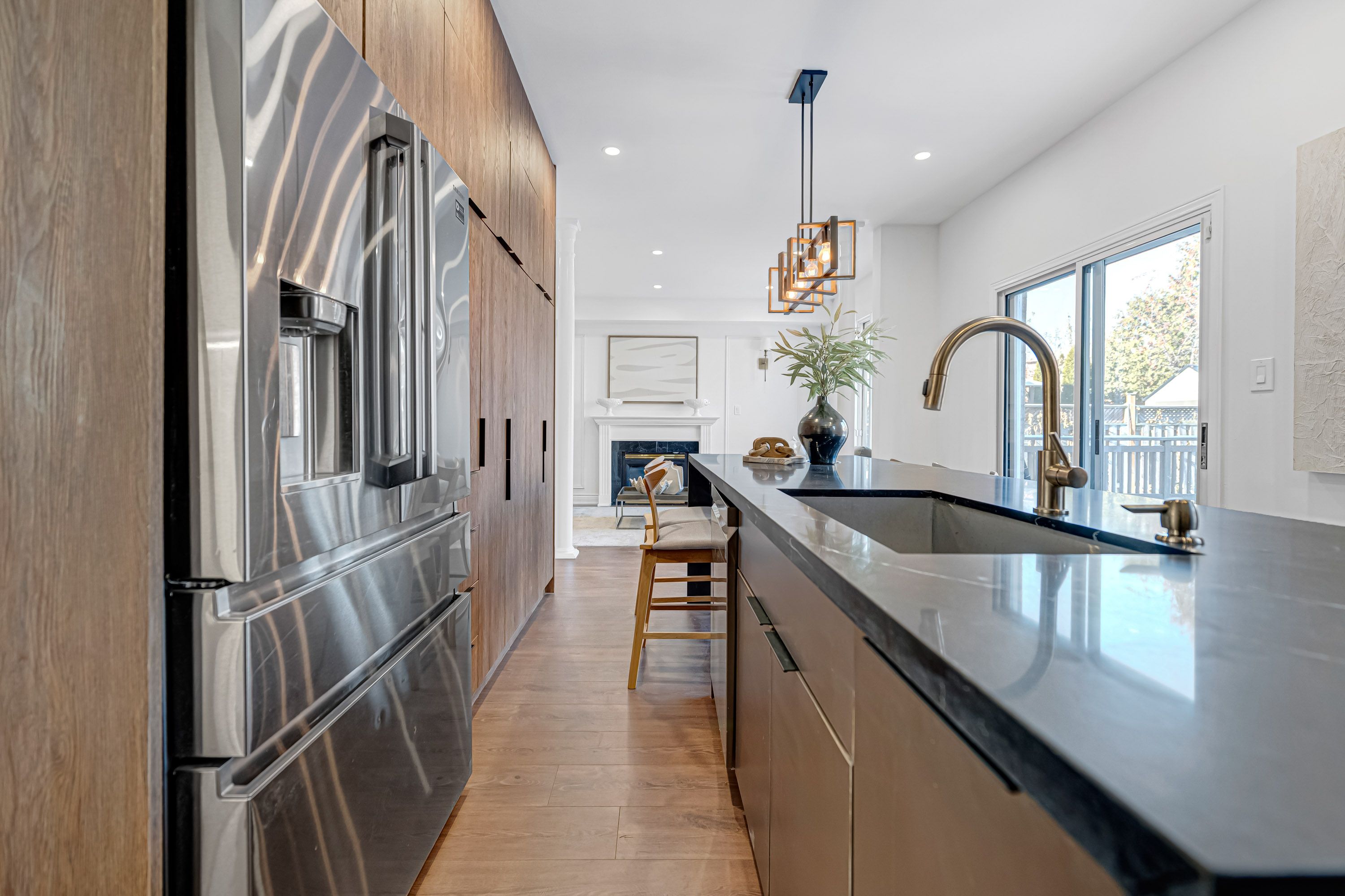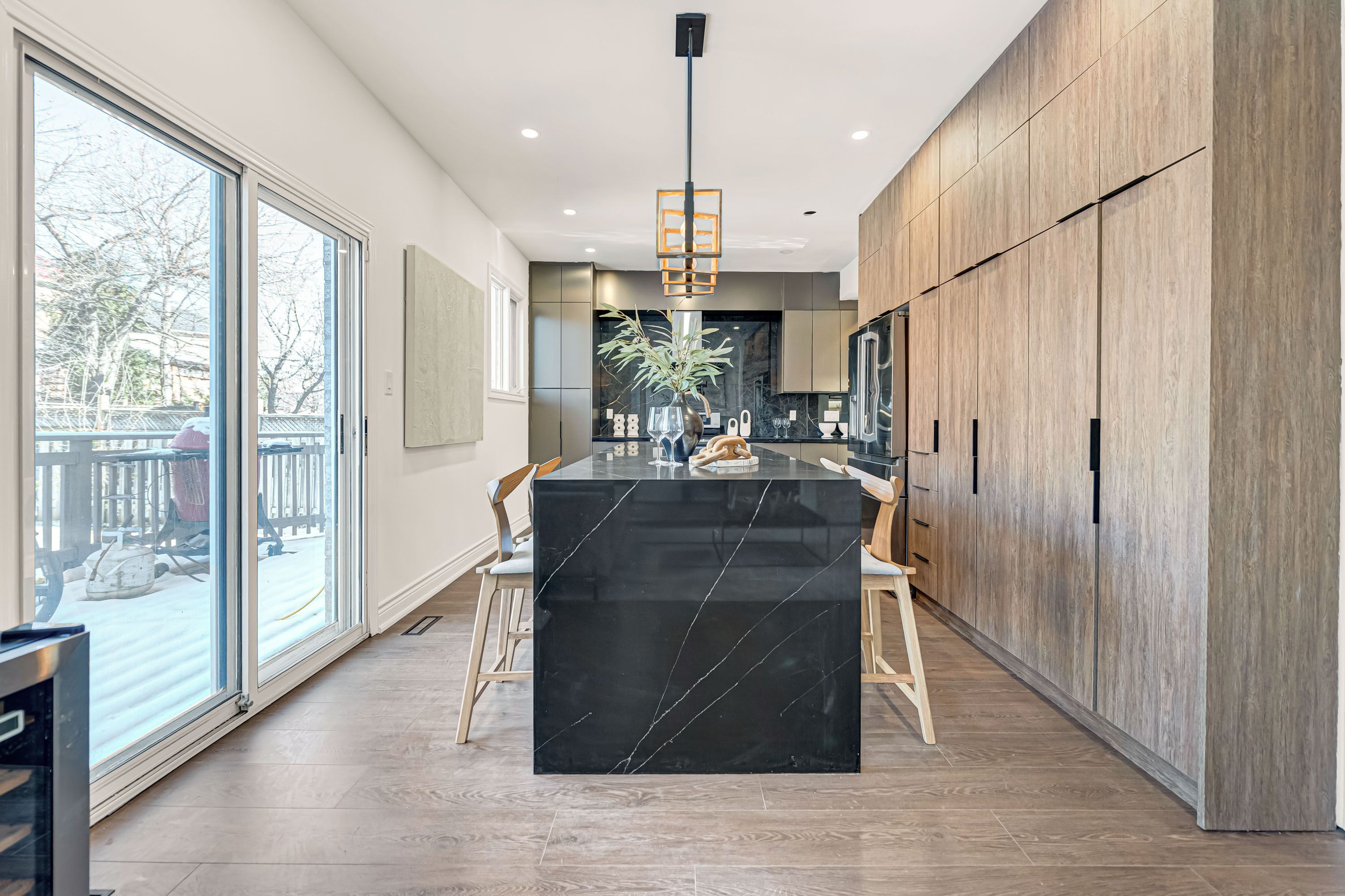 • Large eat-in kitchen with access to a deck for outdoor dining.