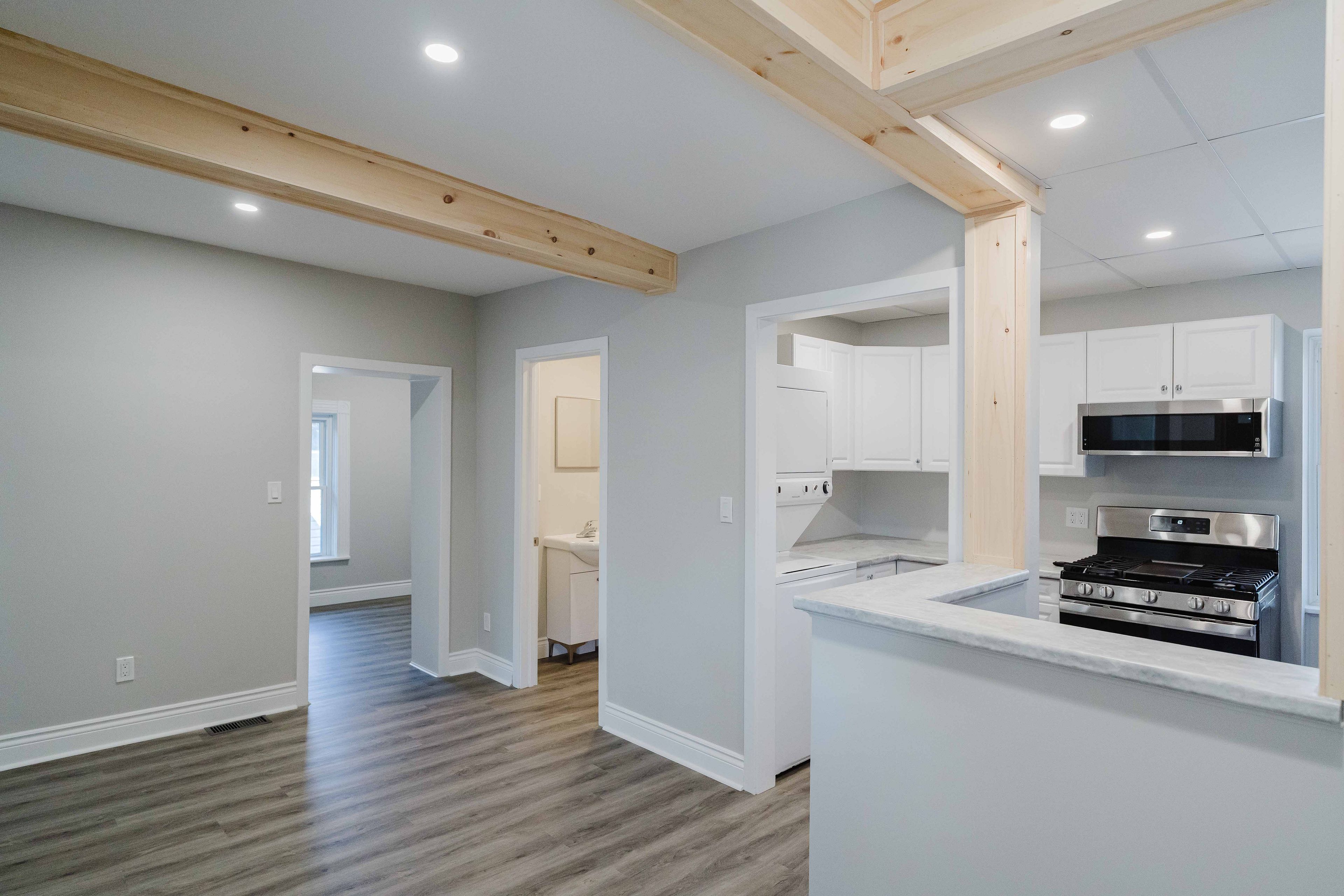 • Fresh flooring and paint throughout create a modern feel.