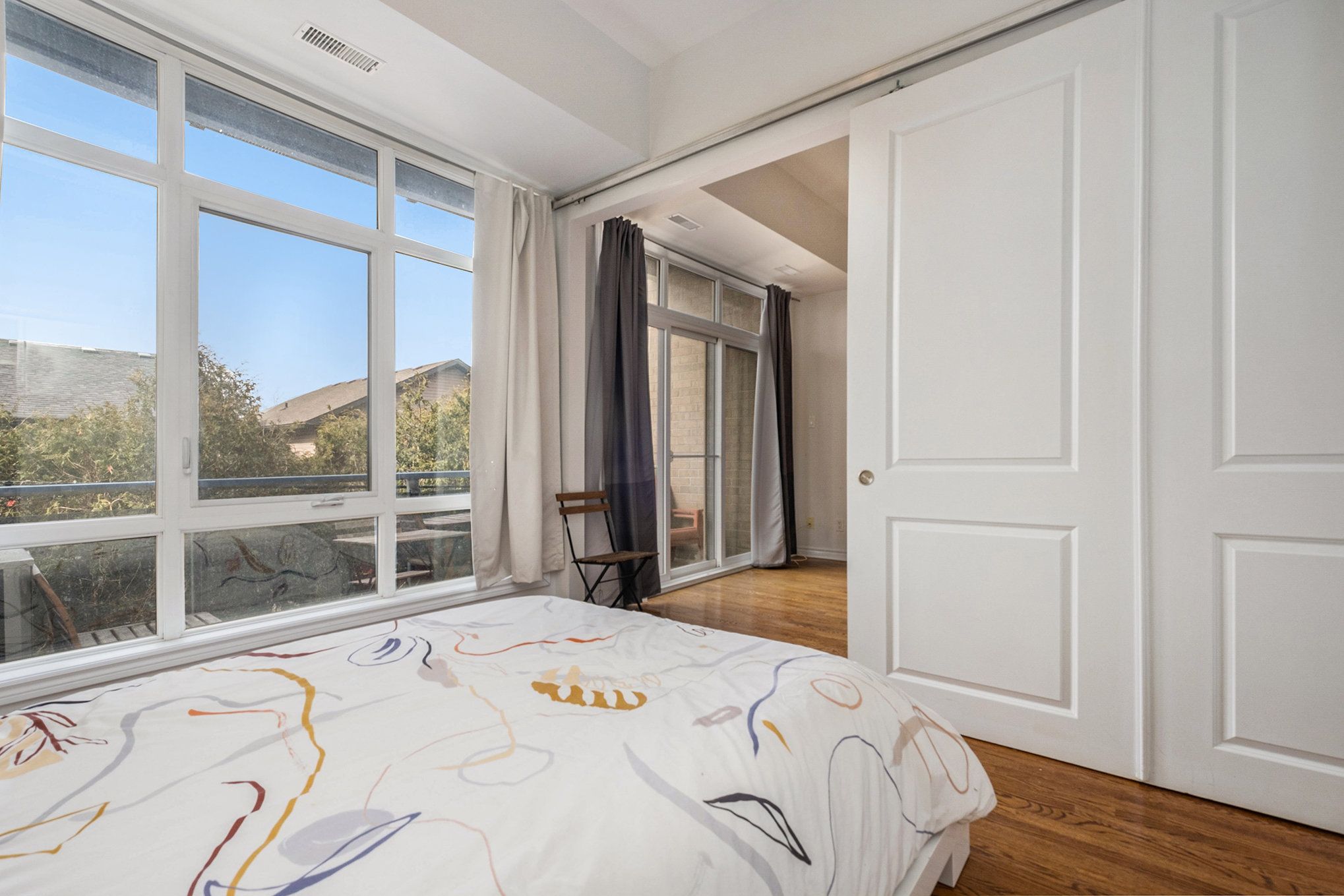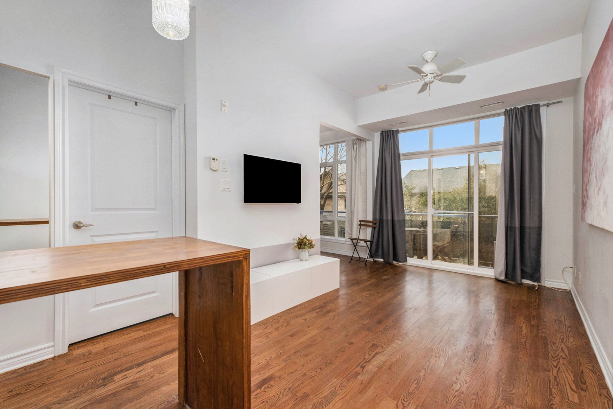 • Floor-to-ceiling windows provide ample natural light throughout the space.