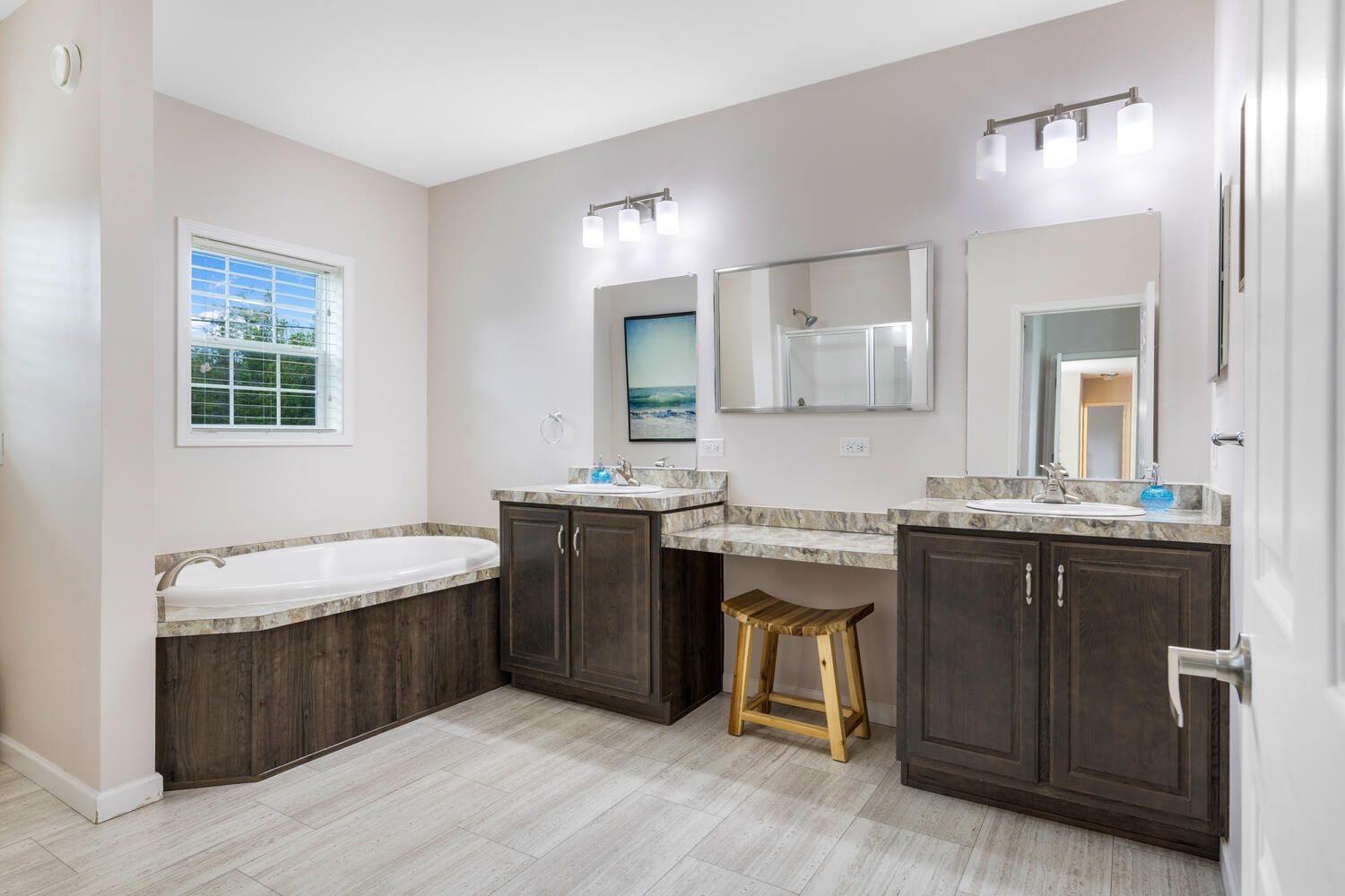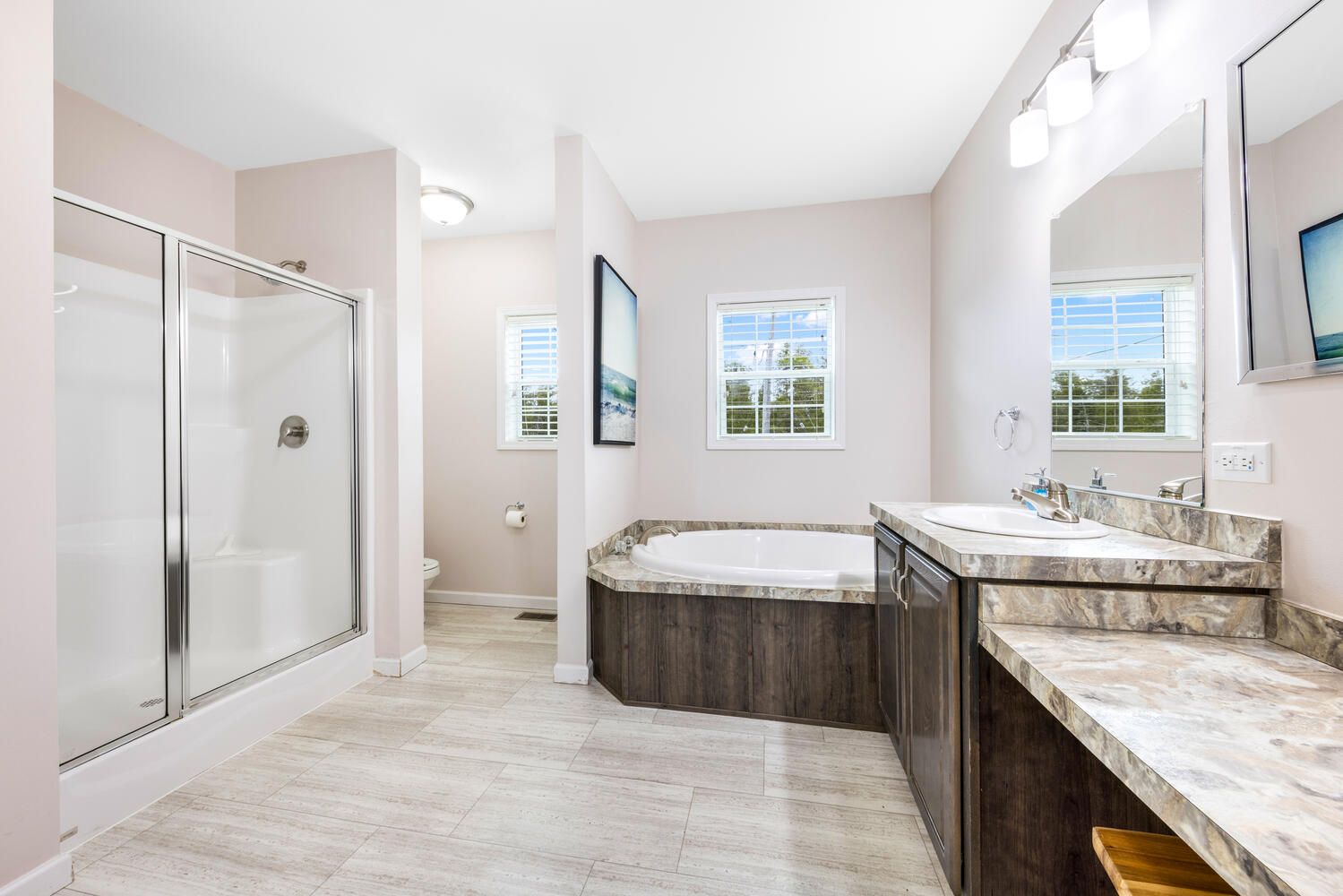 • Spacious primary bedroom with private en-suite and large bathtub.