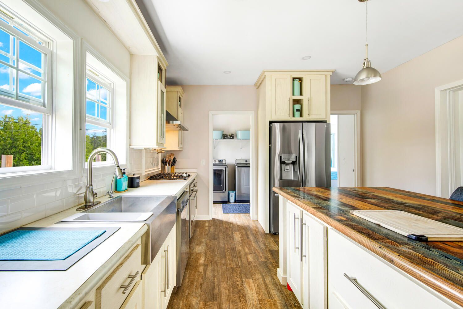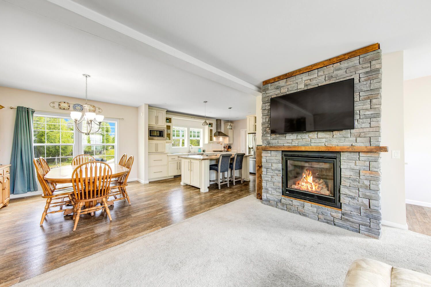 • Open living space with a charming fireplace for gatherings.