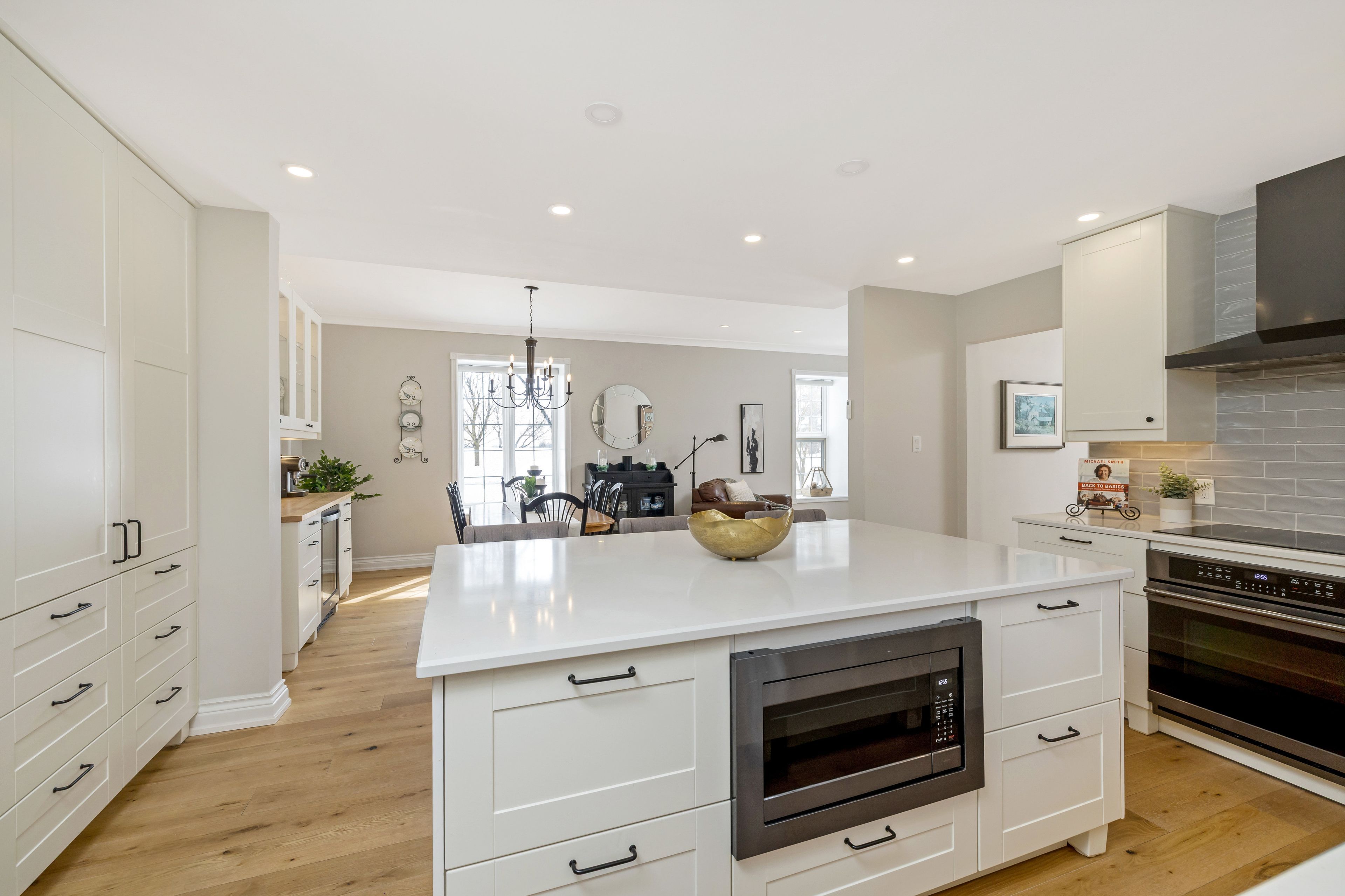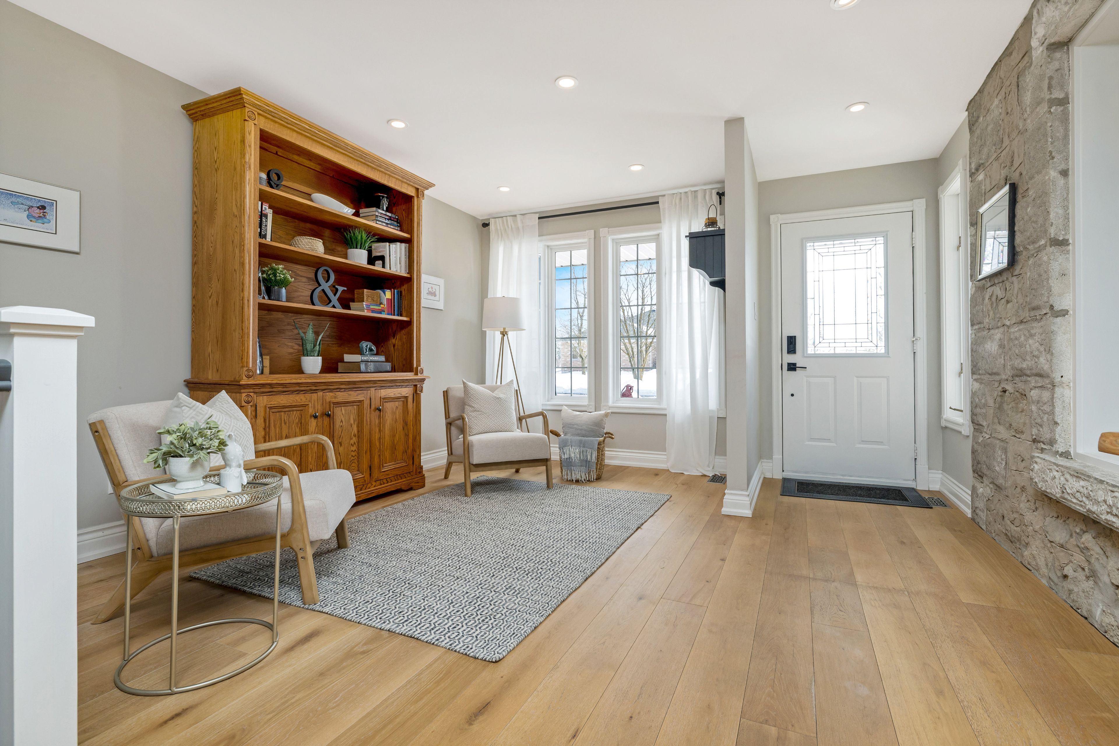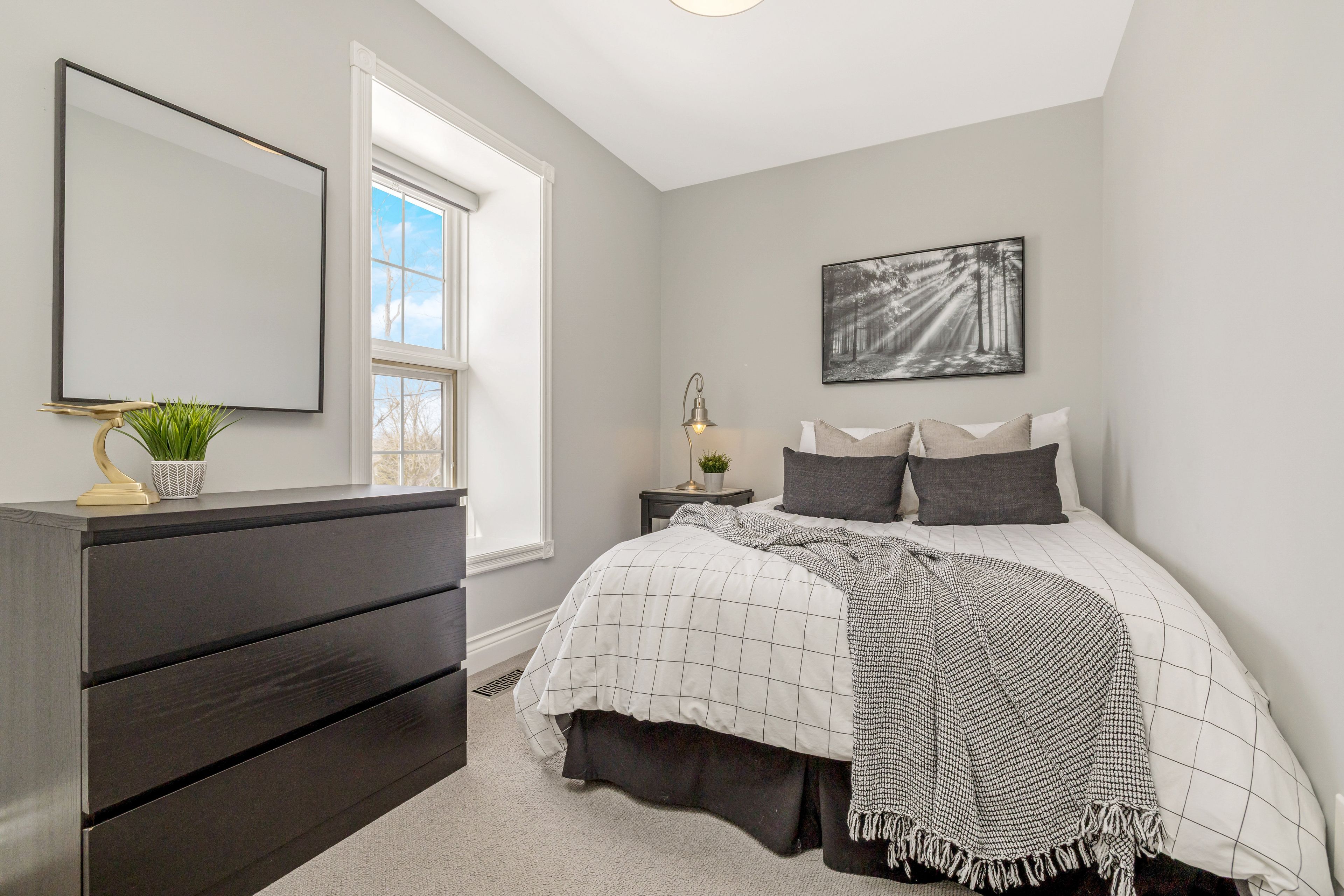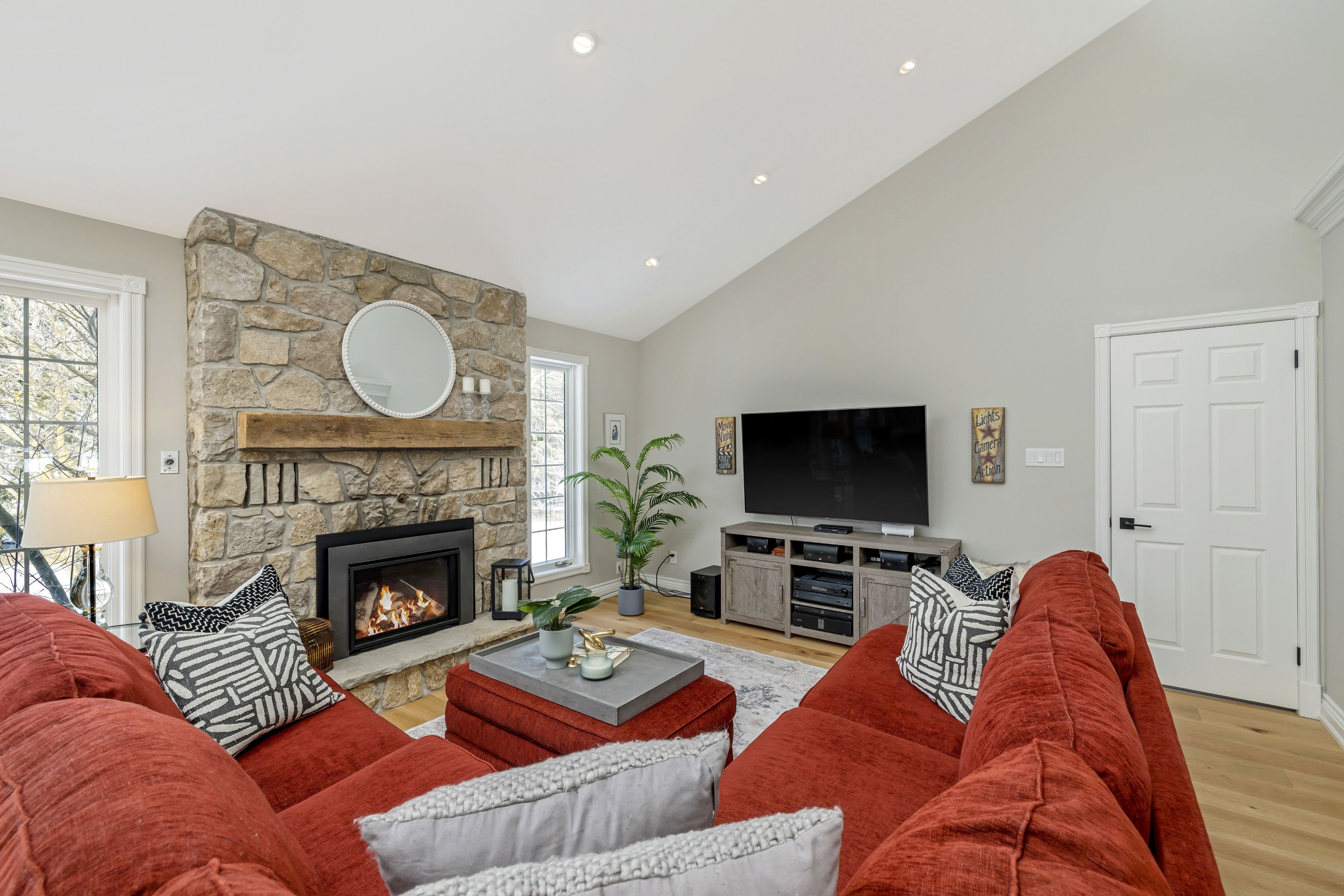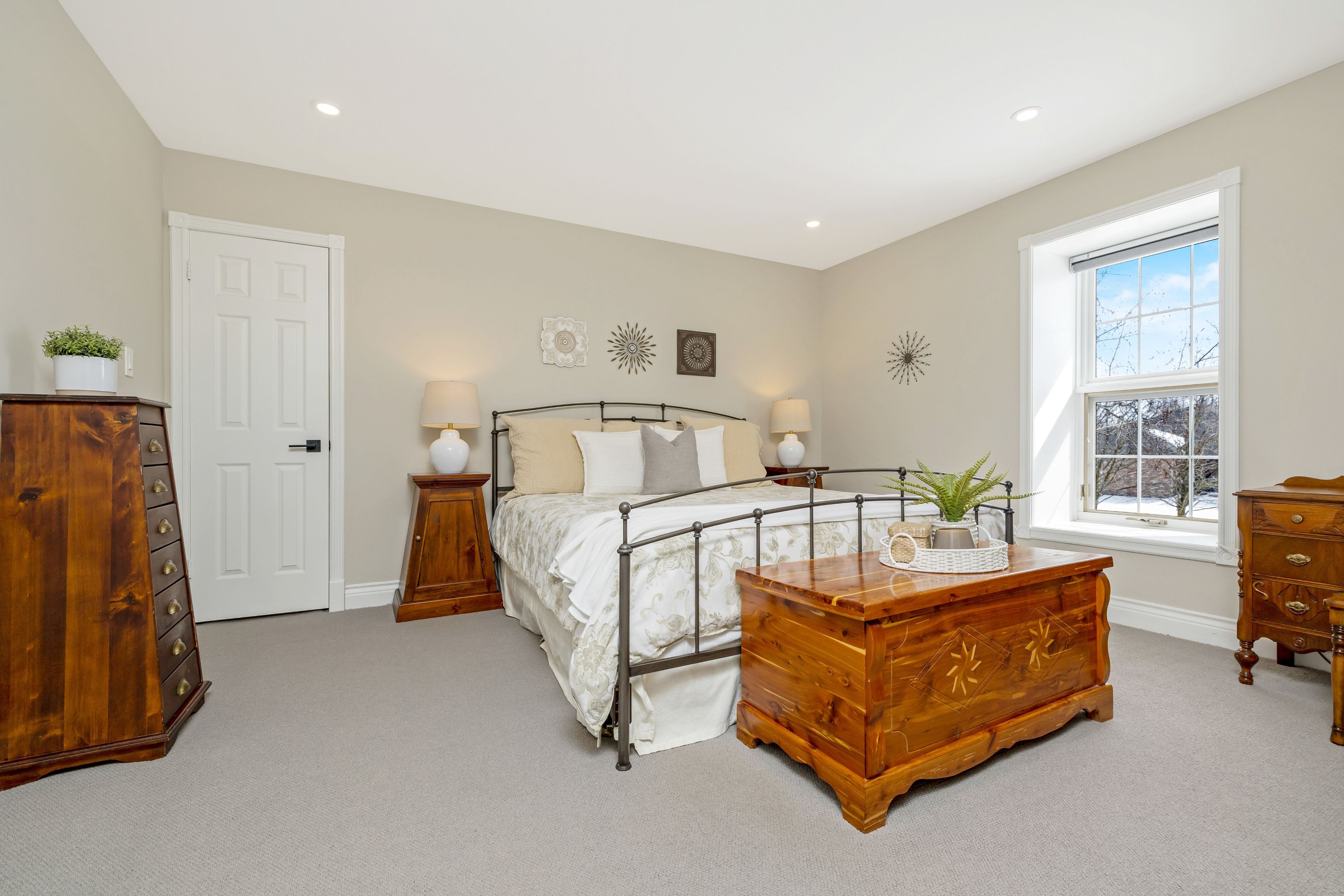 This enchanting stone home on a meticulously landscaped 1. 98-acre lot, originally built in 1906, beautifully blends timeless history with contemporary living. The original stone craftsmanship stands as a testament to its heritage, while thoughtful renovations provide the perfect balance of old-world charm and modern comfort. This home features three spacious bedrooms, including a luxurious primary suite with a large walk-in closet, custom built-ins, and a striking shiplap ceiling. The spa-inspired 5-piece ensuite includes a deep soaking tub and a glass-enclosed rain shower, offering a serene retreat. The additional bedrooms share a stylishly updated 3-piece bathroom. At the heart of the home is a beautifully renovated gourmet kitchen, complete with stainless steel appliances, a classic farmhouse sink, and a spacious center island, ideal for both cooking and entertaining. The dining room, which features a built-in coffee bar, flows seamlessly into the cozy living room, creating a warm and inviting ambiance. Natural light pours into the charming breakfast nook, which opens onto a low-maintenance trex deck with sleek glass railings. This outdoor space leads to a 15' x 14' cedar-shake gazebo, an ideal setting for enjoying a morning coffee or hosting evening gatherings. The family room, with its vaulted ceiling, recessed lighting, and inviting gas fireplace, provides the perfect spot to unwind. A den at the front of the home, showcasing exposed stone walls, offers a quiet retreat for reading or reflection. Completing the main floor is a convenient mudroom with garage access, main-floor laundry, and a stylish powder room. The finished lower level includes a bright recreation room with a gas fireplace, a kitchenette with a separate entrance, and a 4-piece bath. The original basement, with exposed stone walls and concrete floors, offers versatile space for storage or imagination.