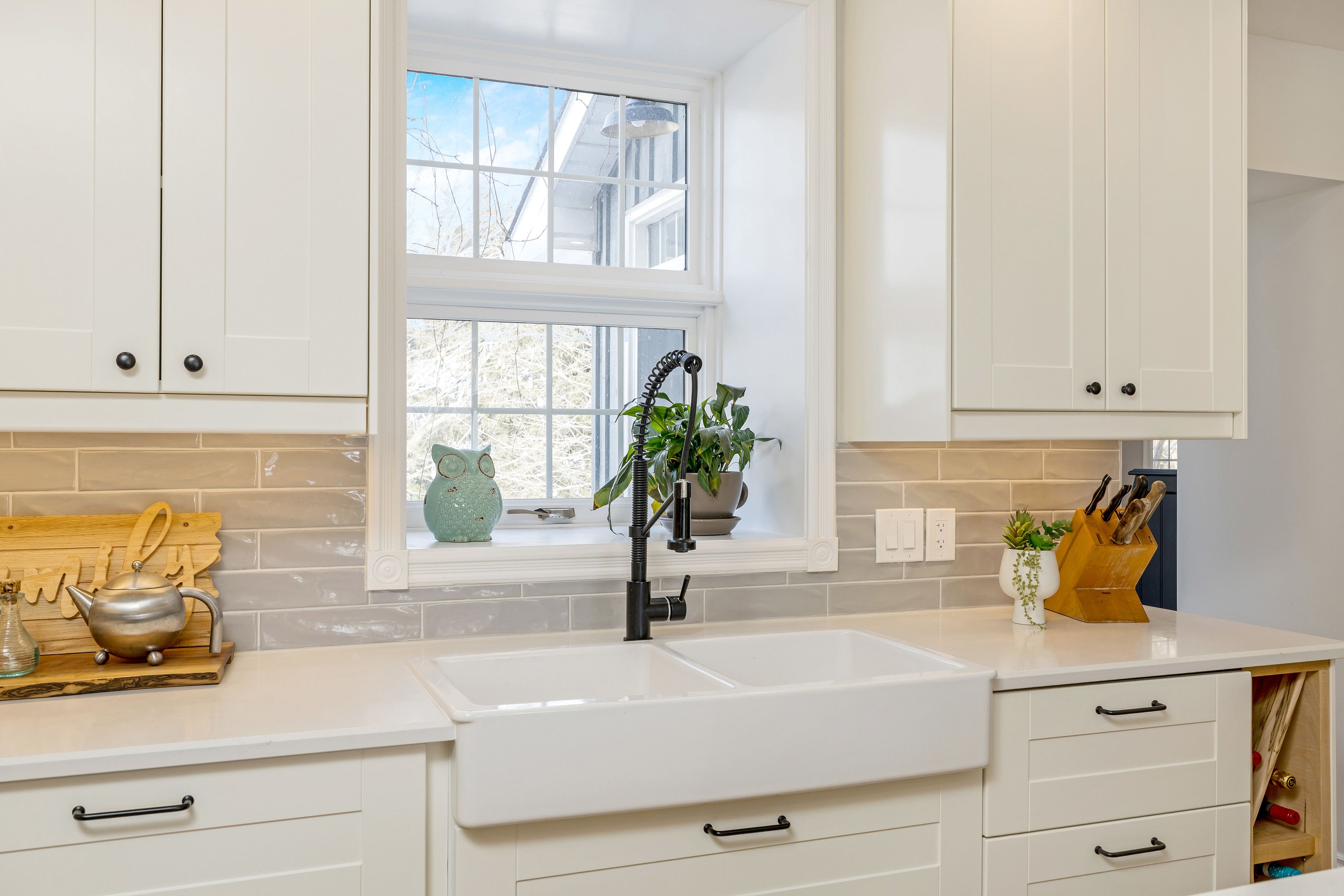 • Gourmet kitchen with stainless steel appliances and a classic farmhouse sink.