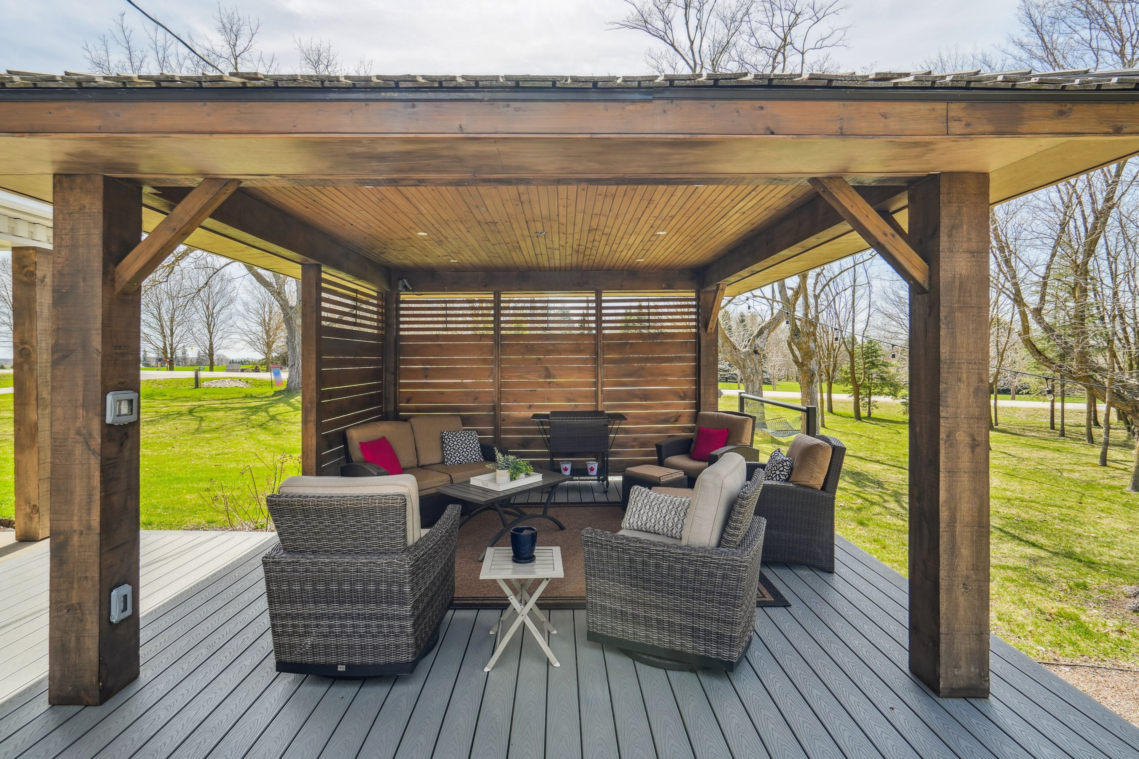 • Outdoor Trex deck leads to a cozy gazebo for gatherings or relaxation.