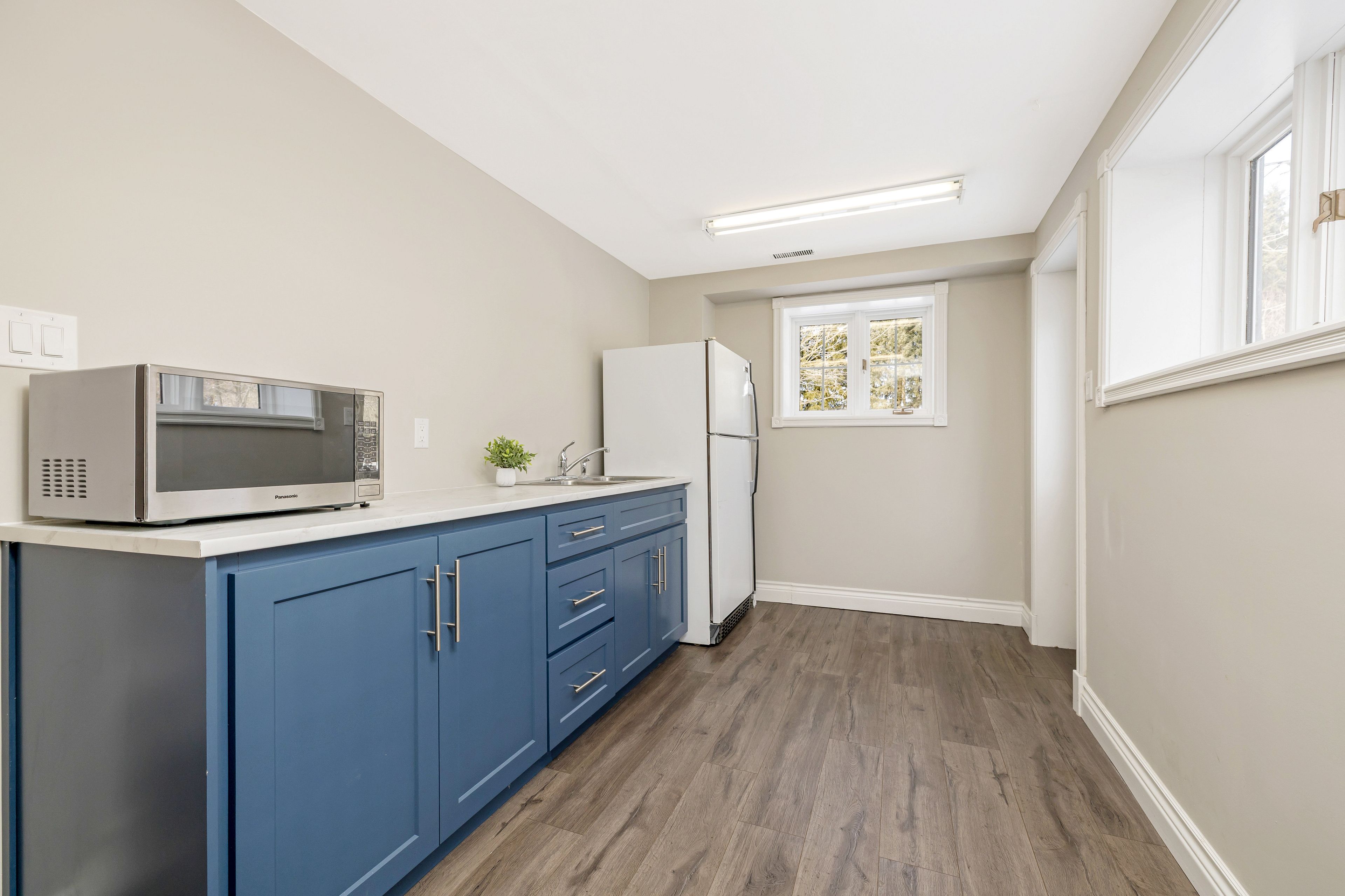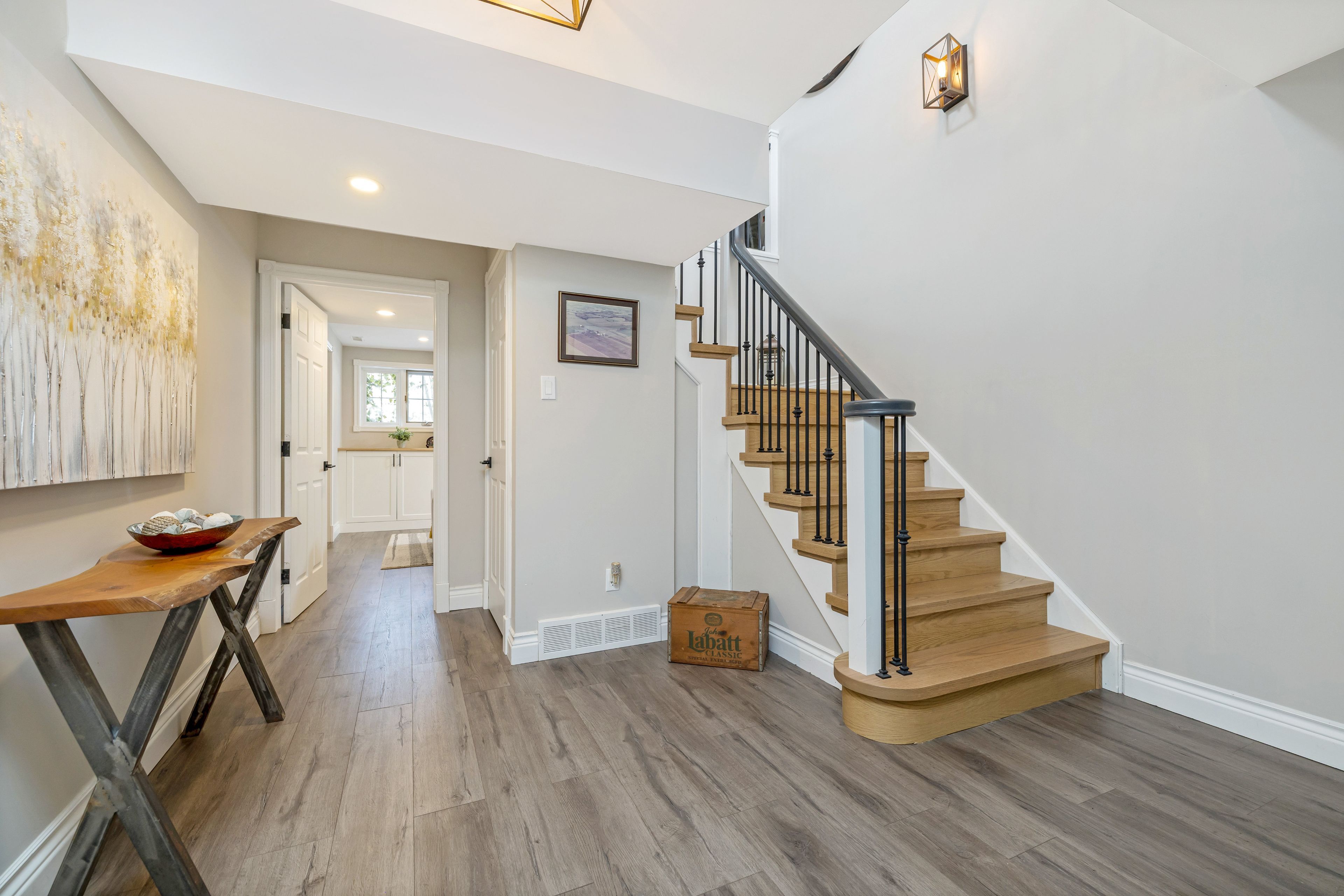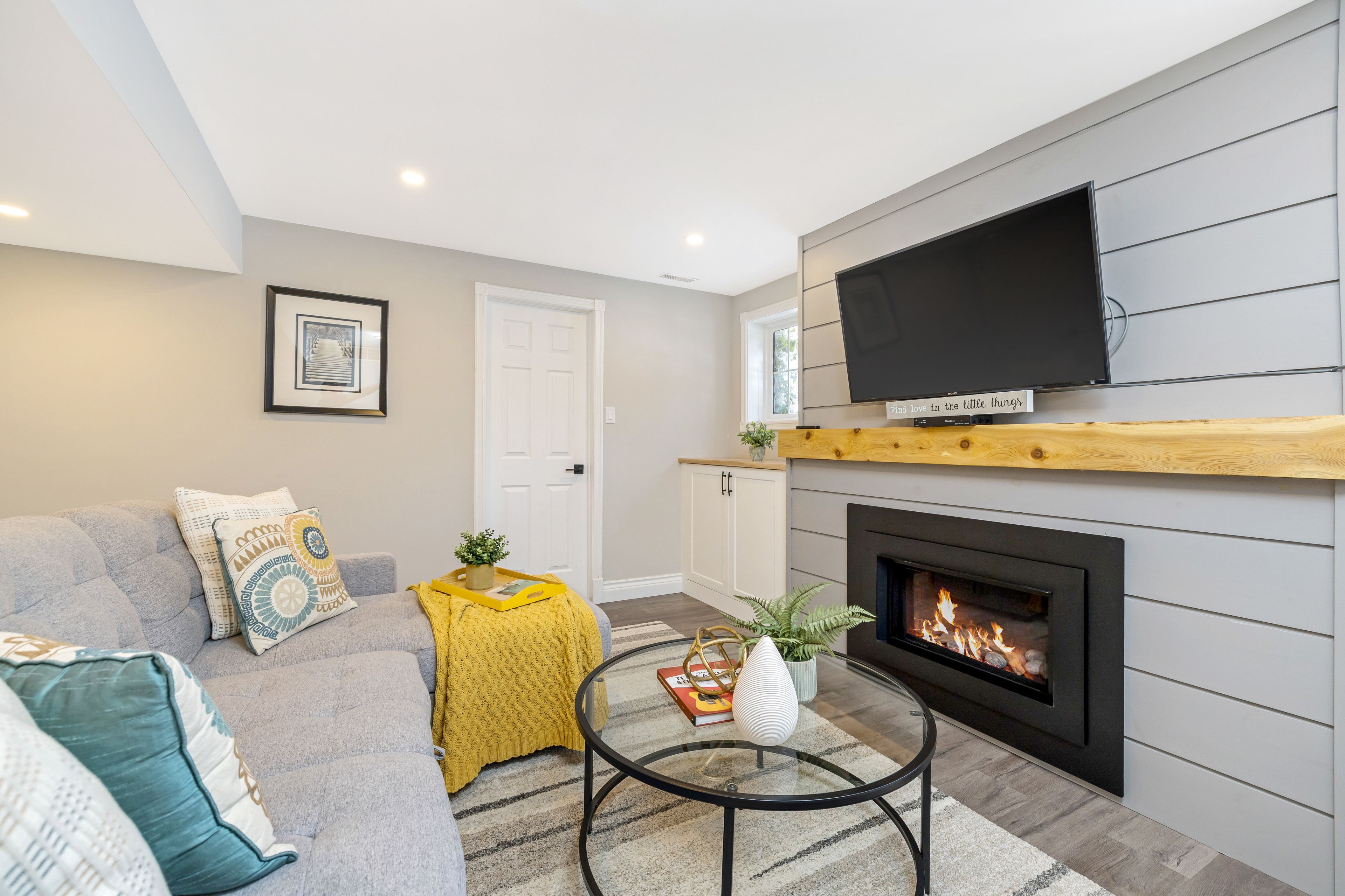• Finished lower level with a recreation room, kitchenette, and additional bathroom.