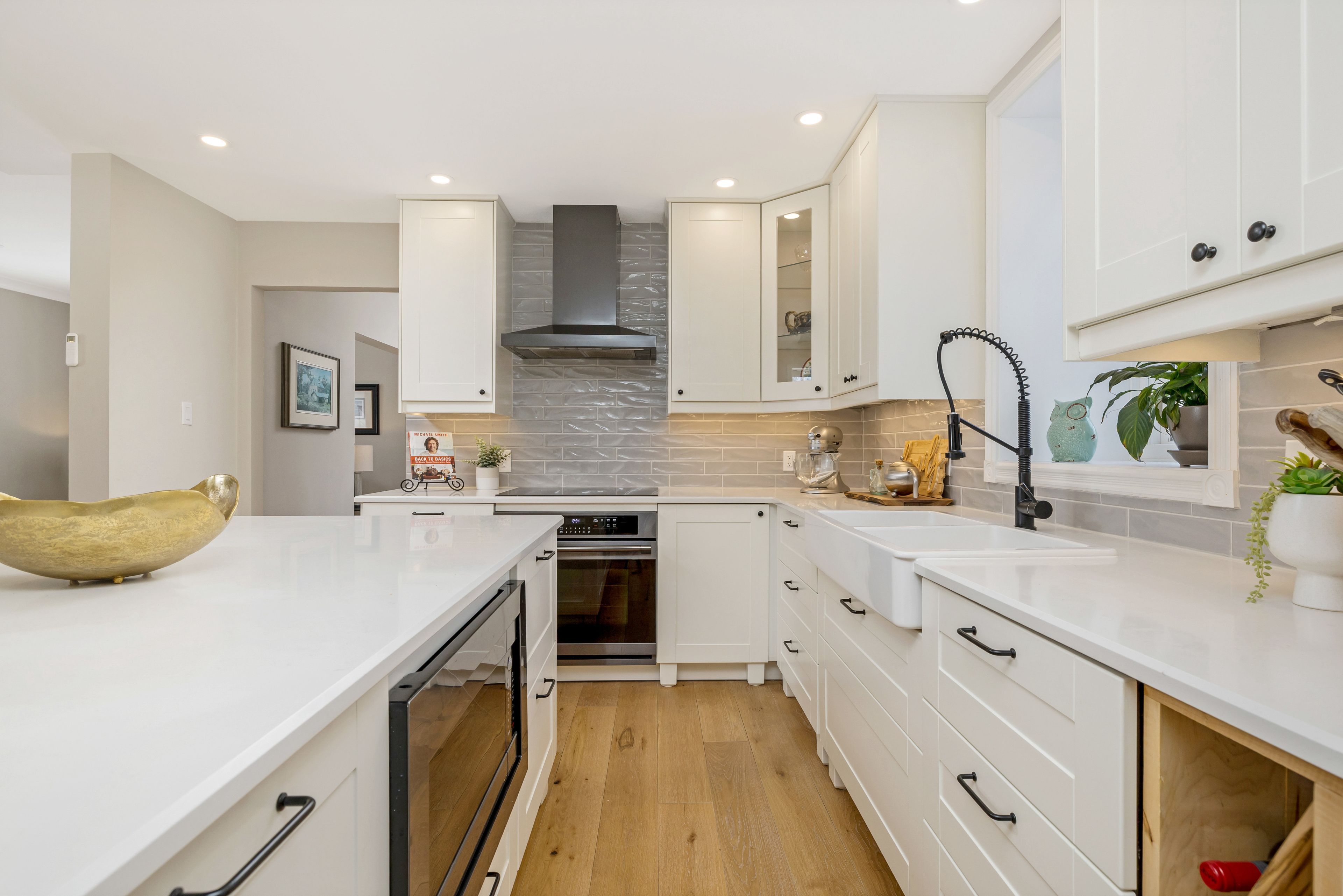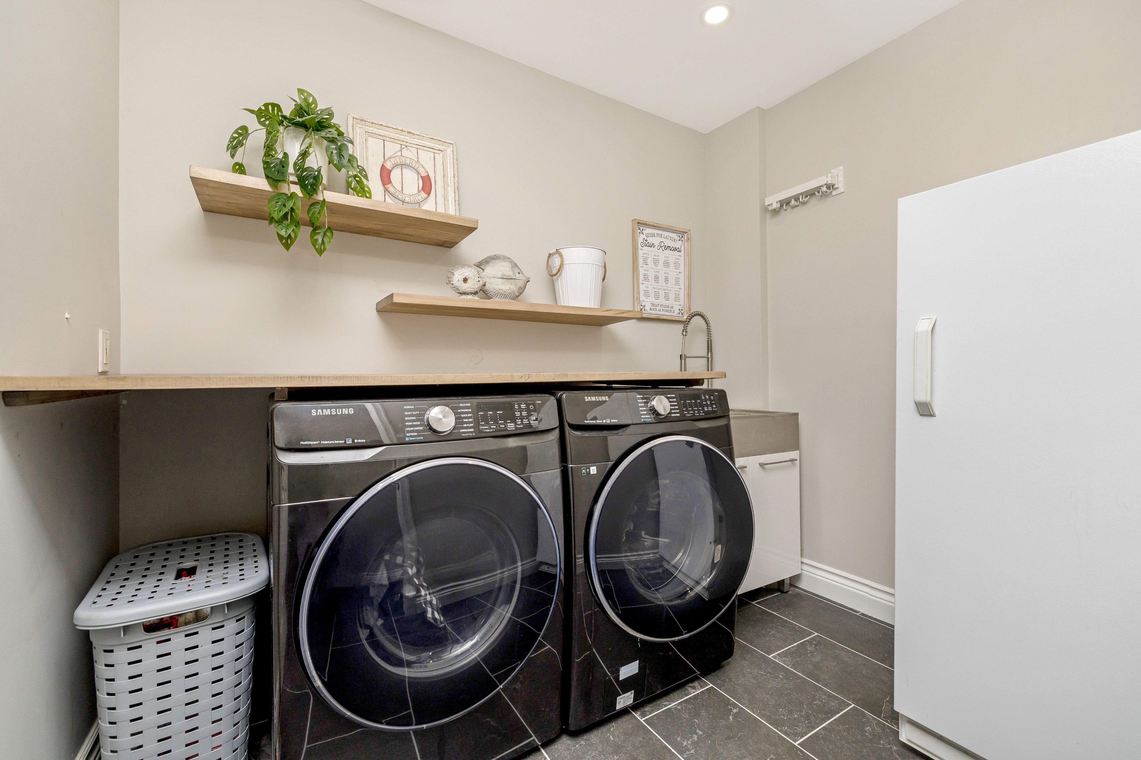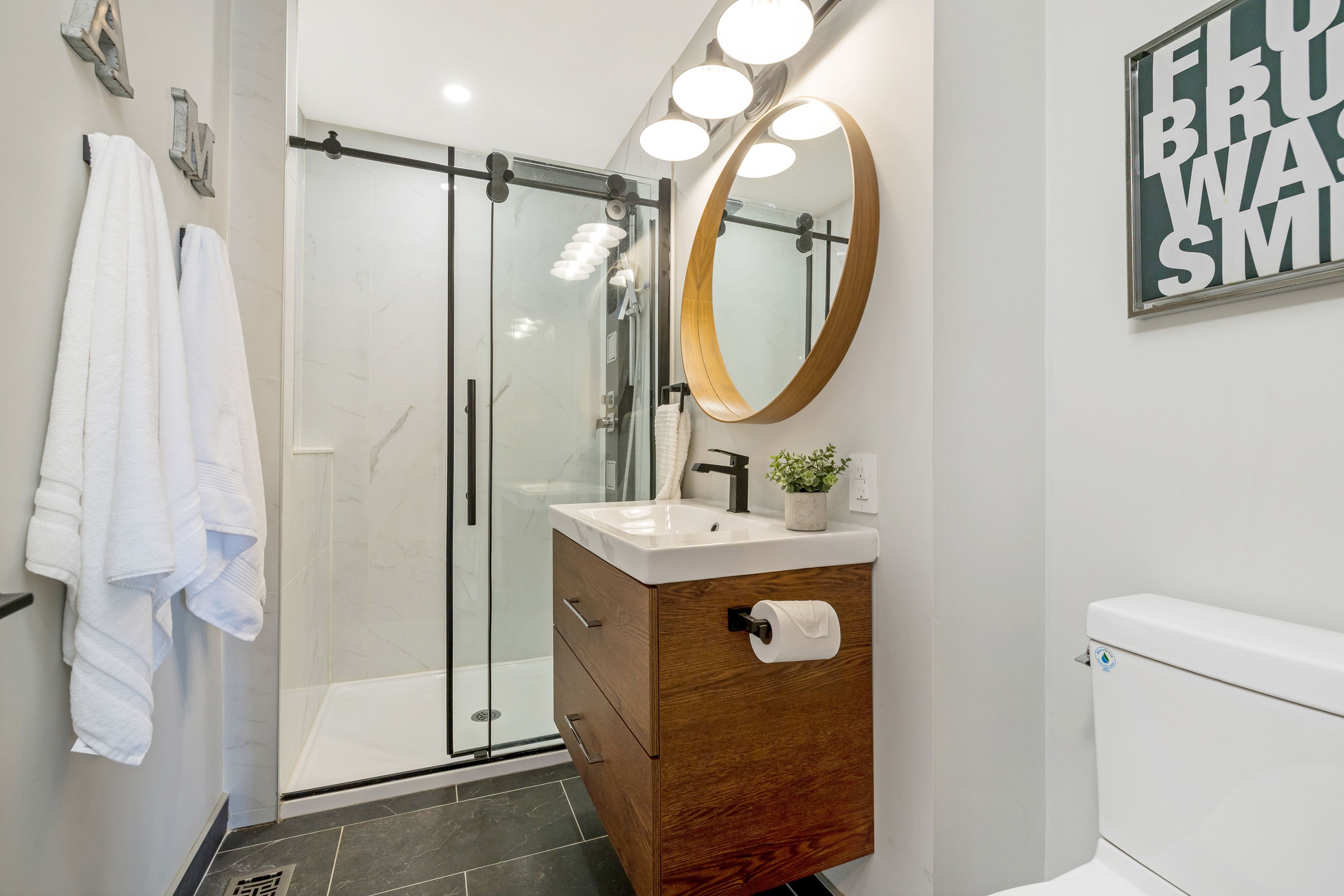 • Finished lower level with a recreation room, kitchenette, and additional bathroom.